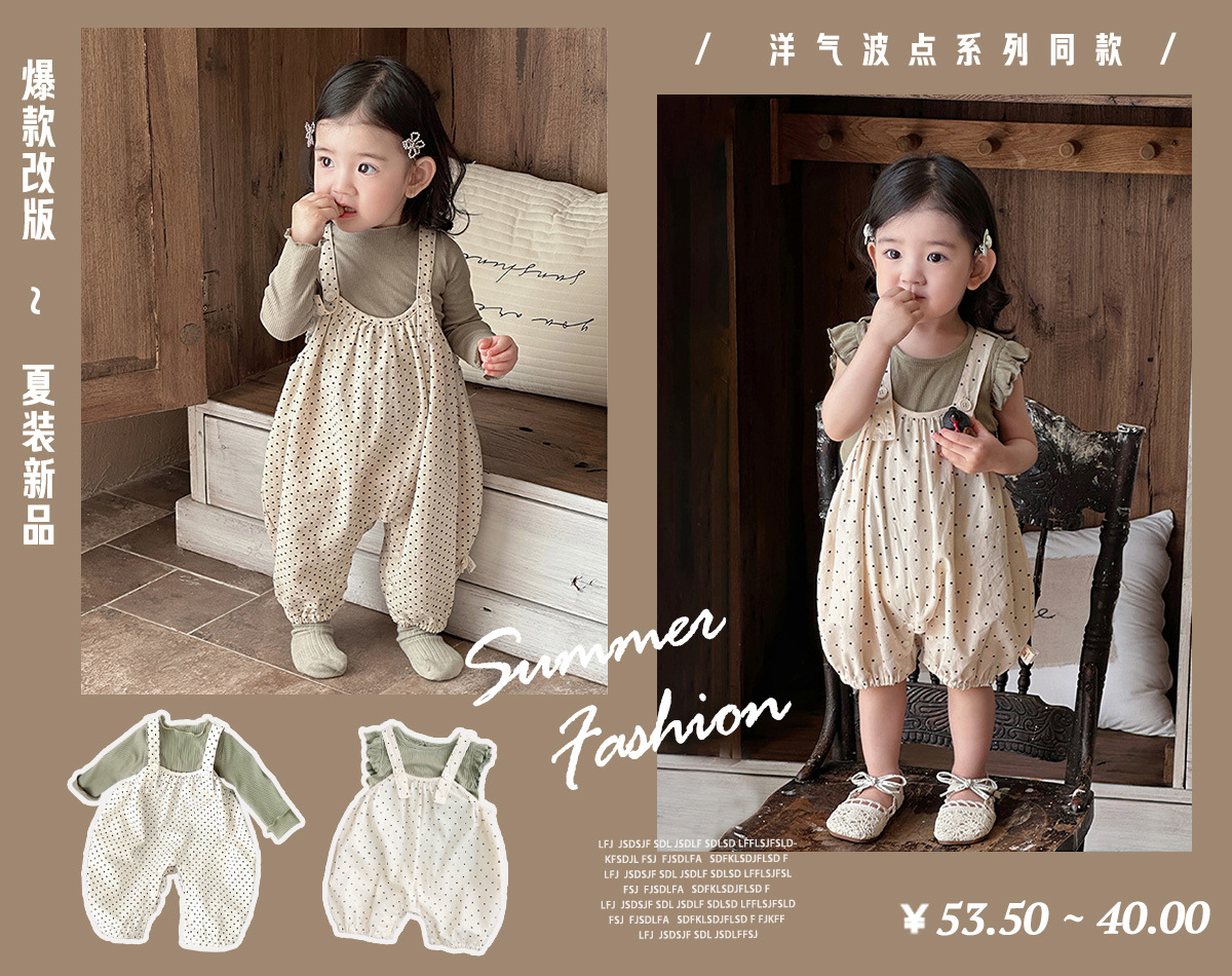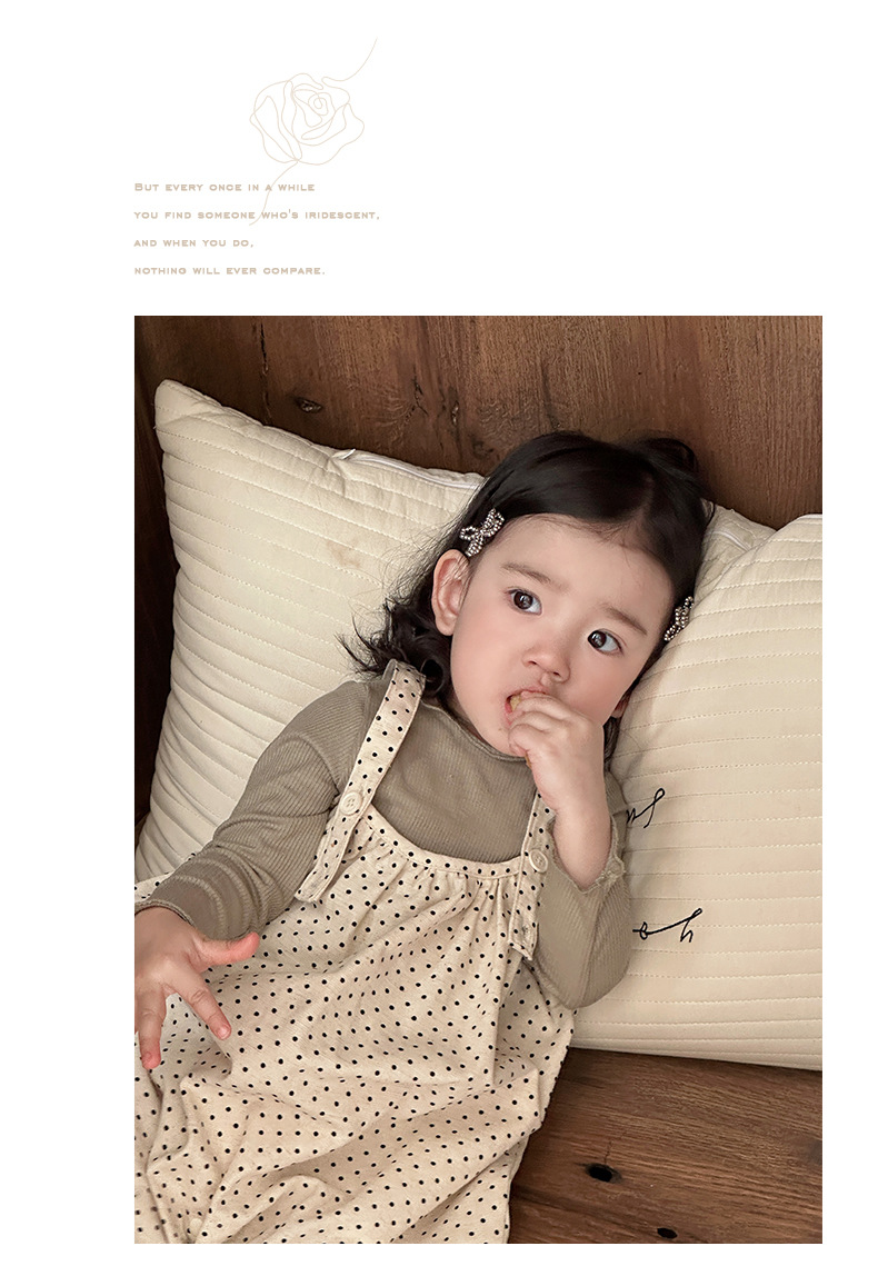 한국 아동복 여아옷 투피스 세트, 세련된 물방울 무늬 A급 멜빵바지 세트, 긴팔 외출복, 0-2세스토어 가기