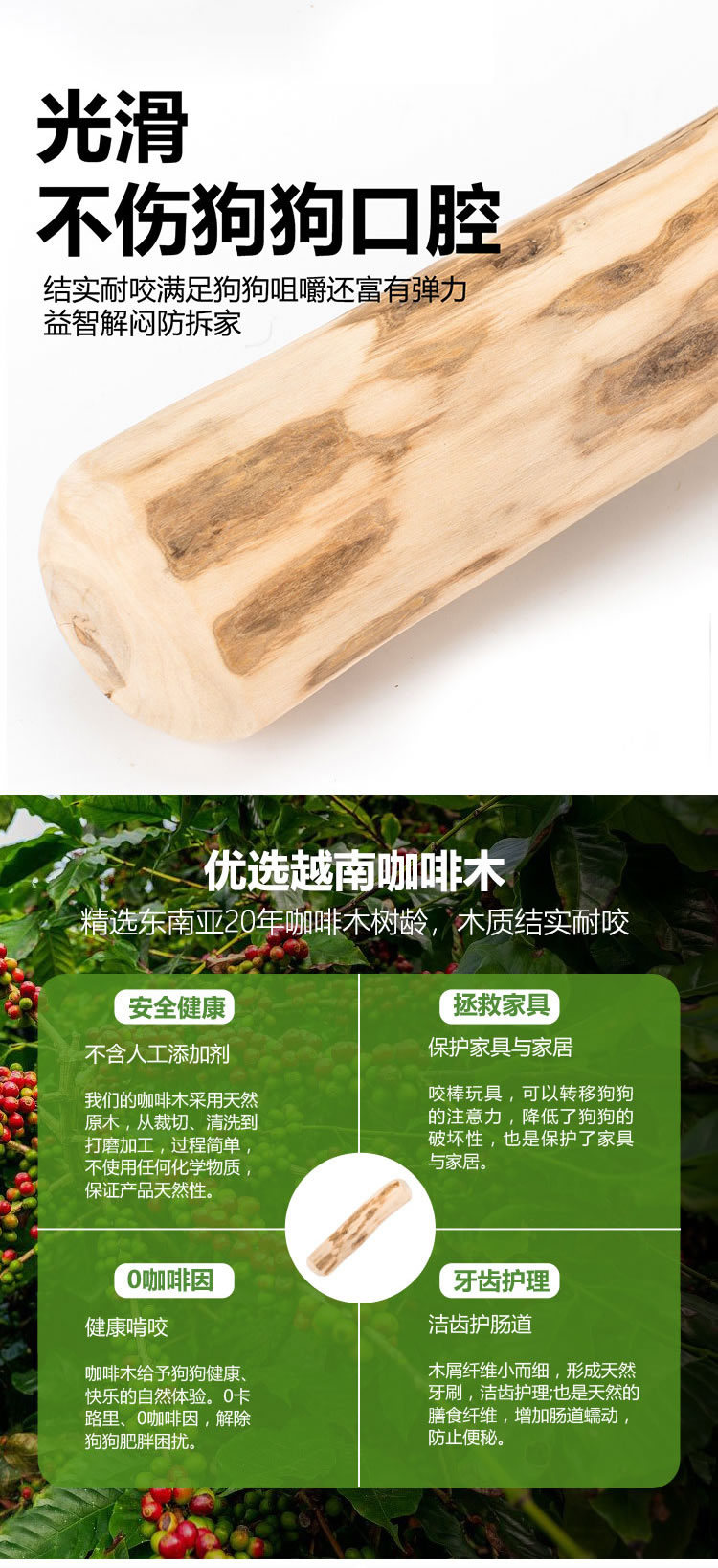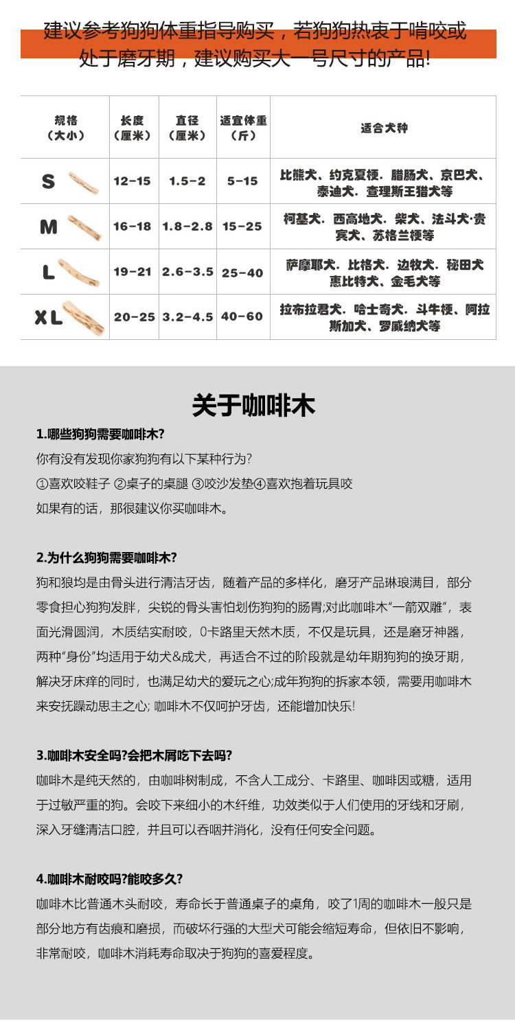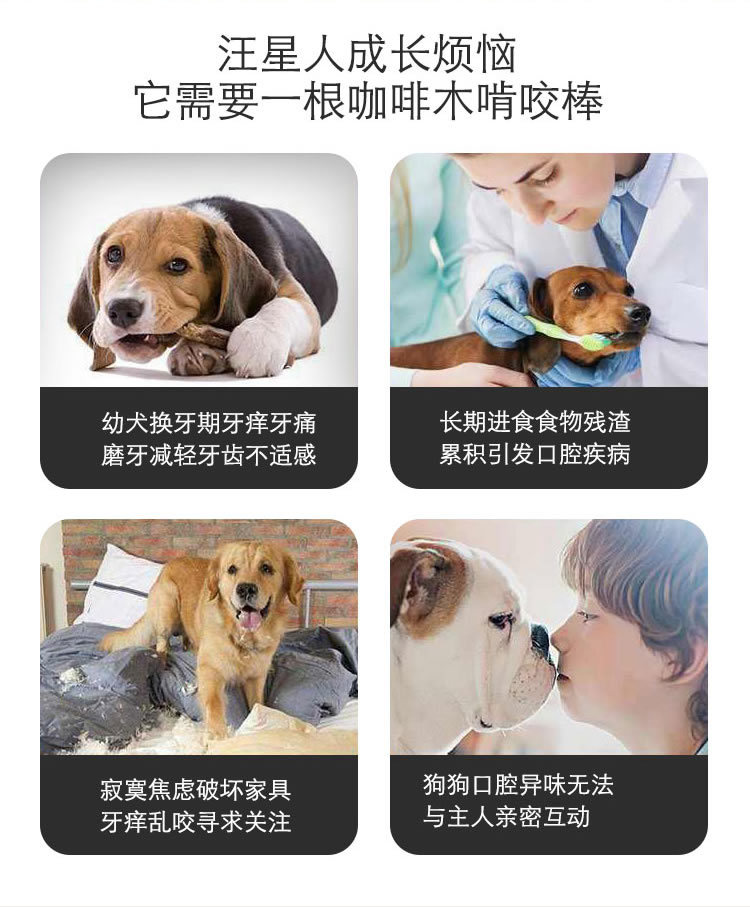 강아지 이갈이 막대, 내구성 강하고 심심함 해소, 구취 제거, 치아 청소, 파손 방지, 천연 커피나무, 도매 애완견 장난감스토어 가기