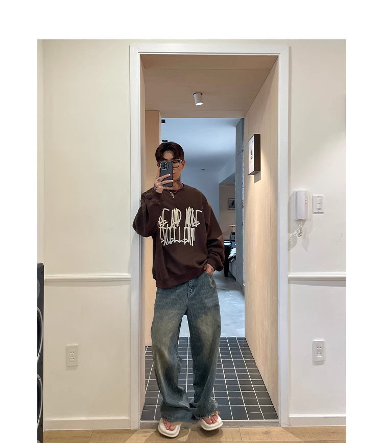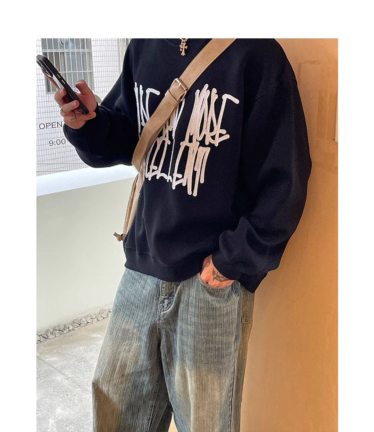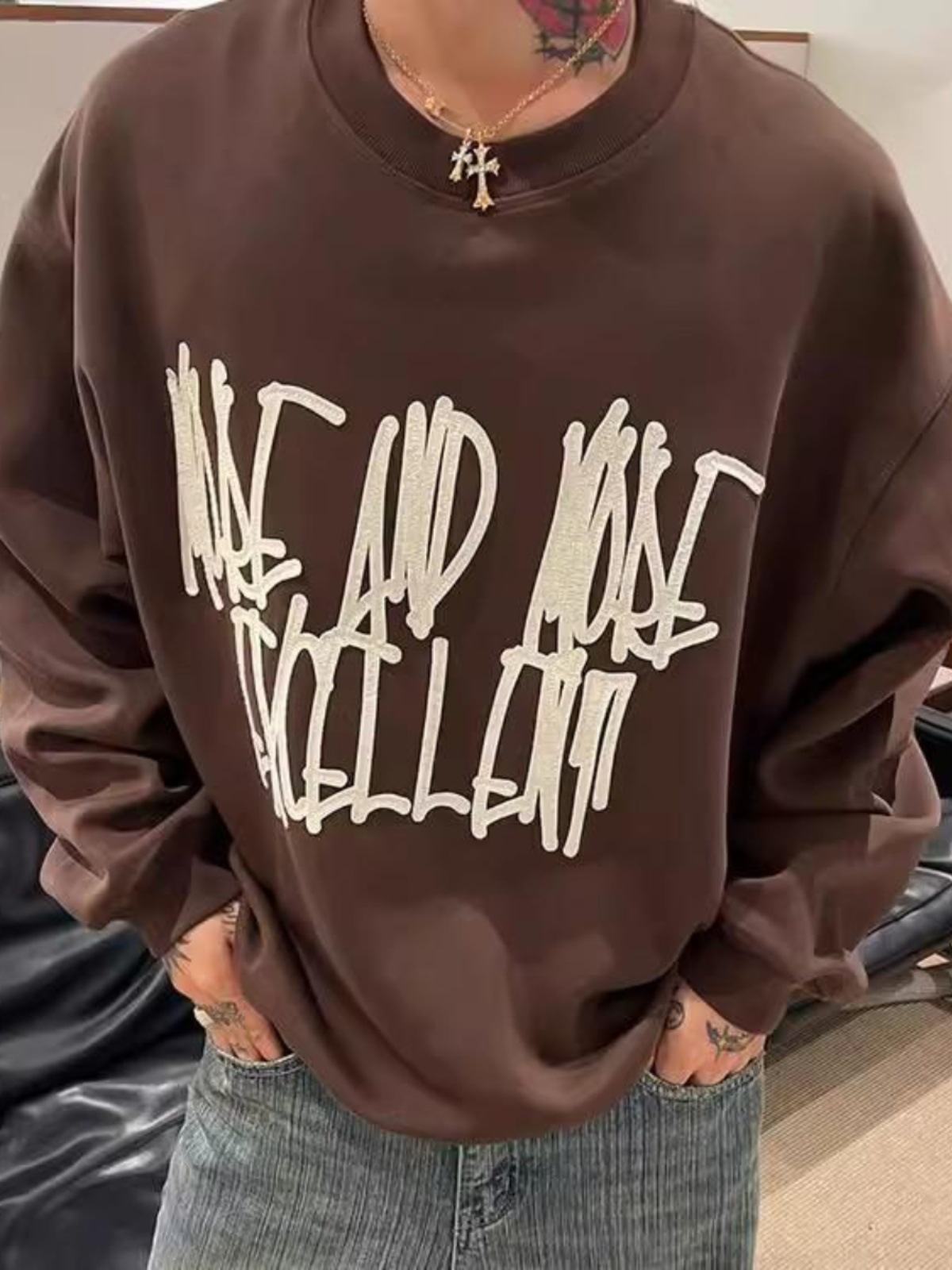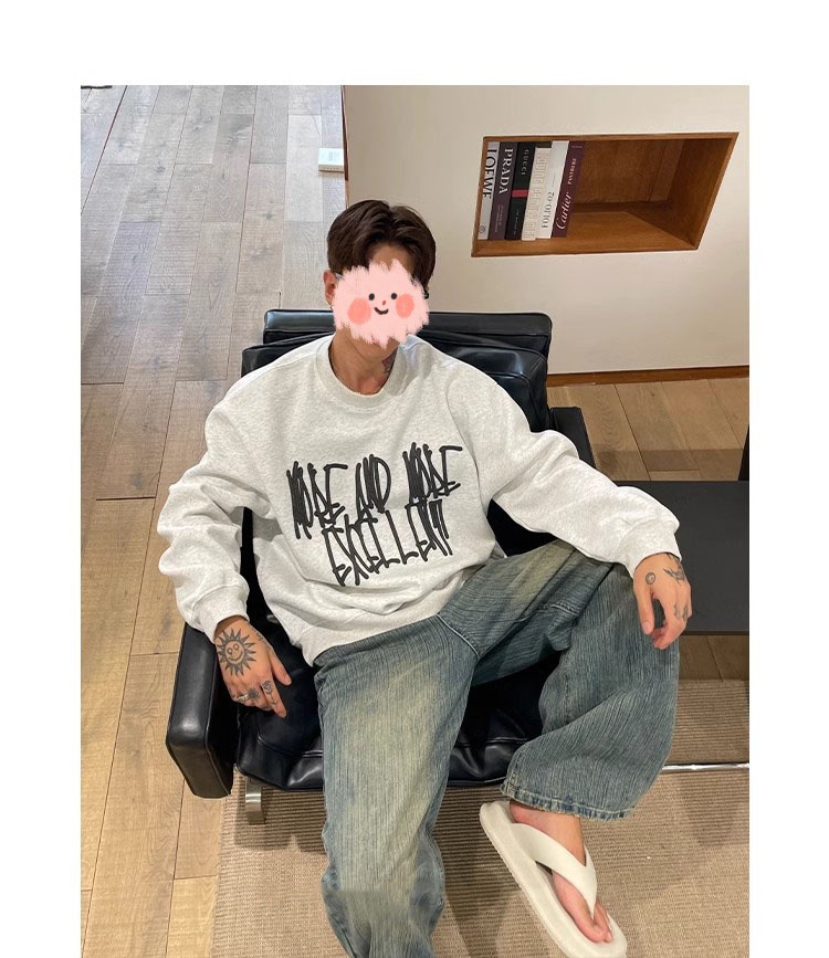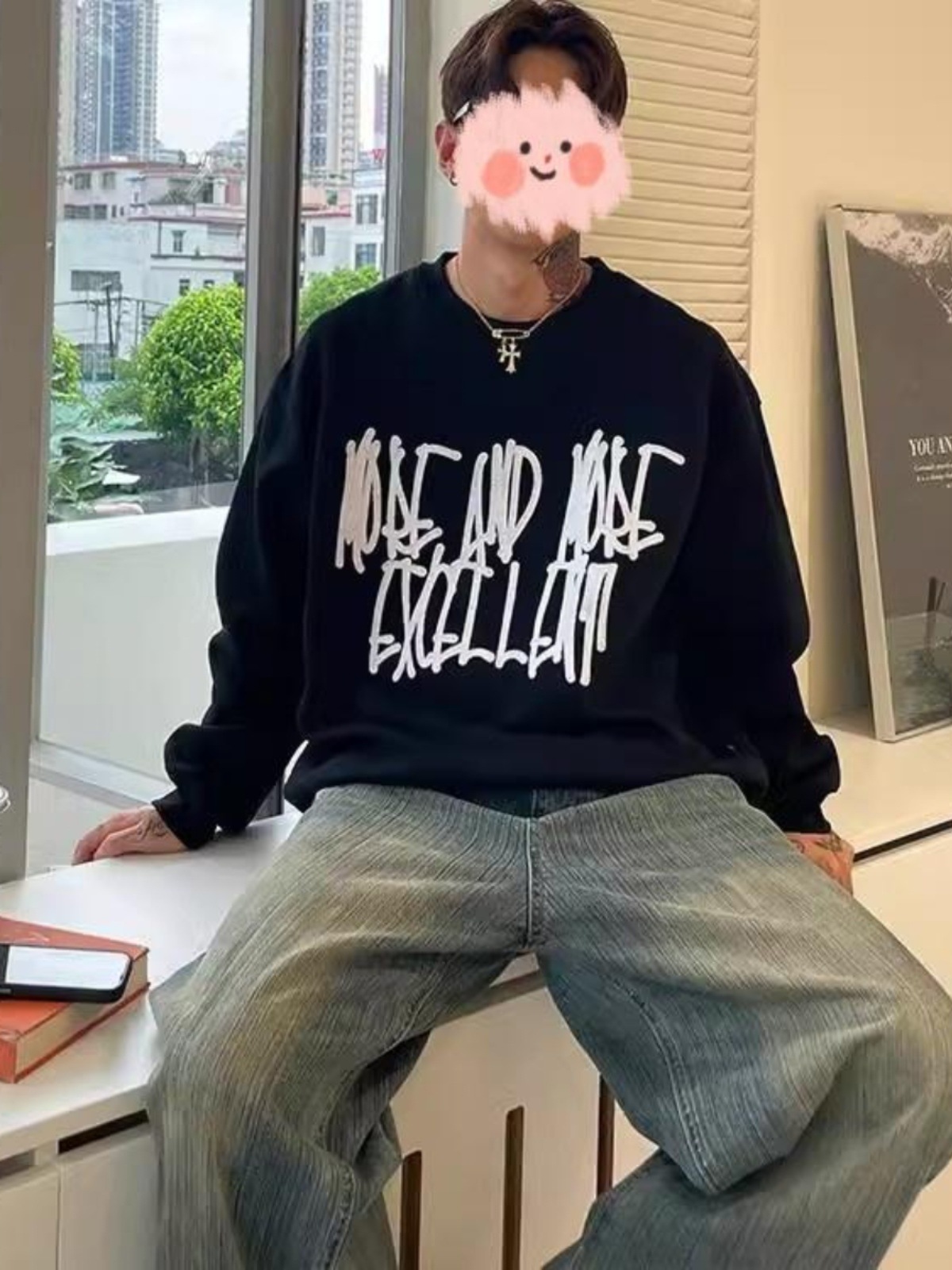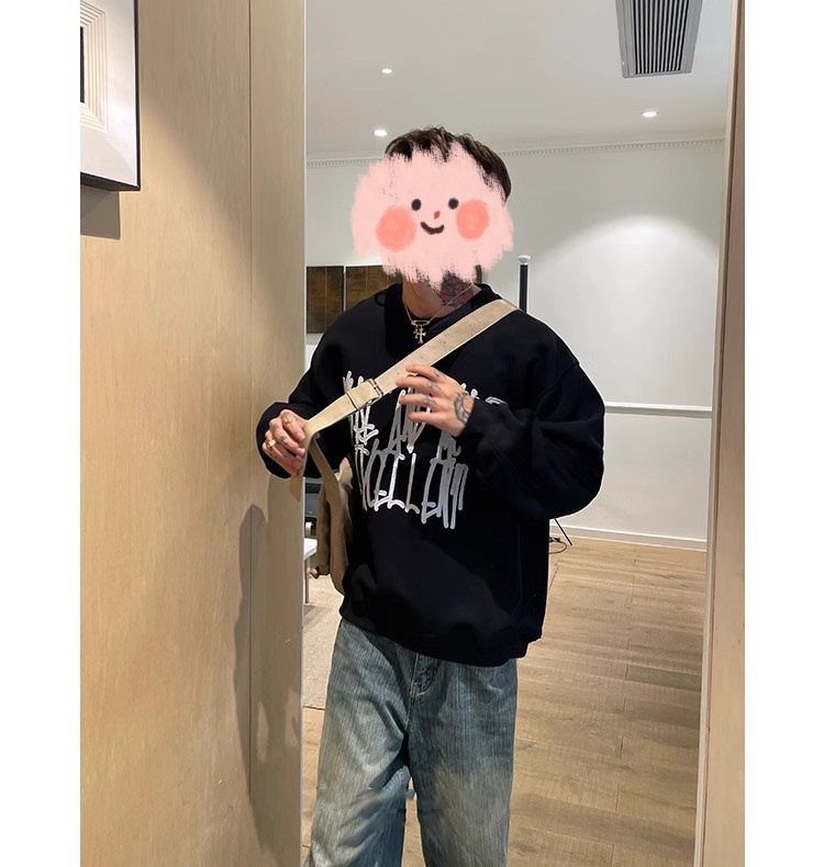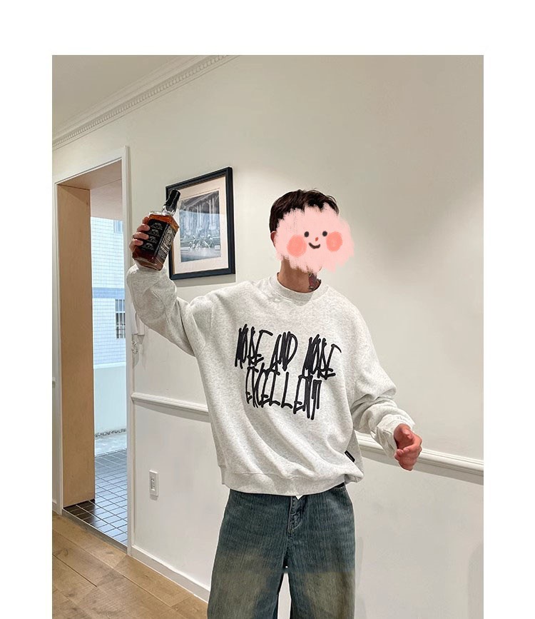 Carddeer 도시 가을/겨울 낙서 편지 상자 버전 350G 중복 남성 승무원 느슨한 긴 소매
