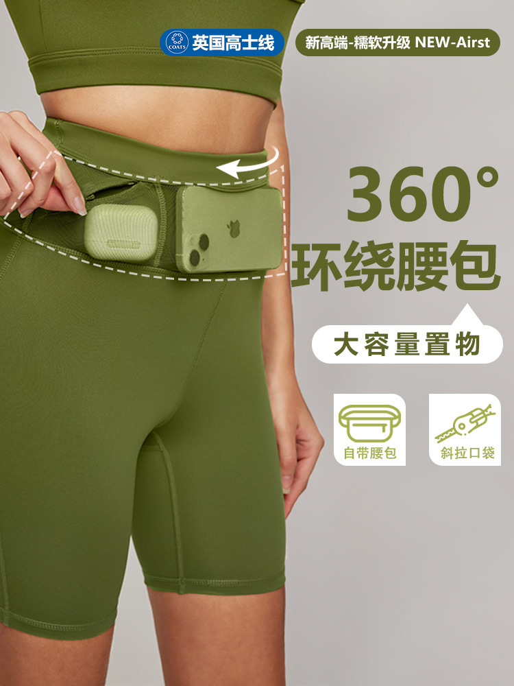 전문 러닝 허리 가방 반바지 여성용 안티 헴 항균 알몸 요가 바지 높은 탄성 훈련 마라톤 스포츠 반바지