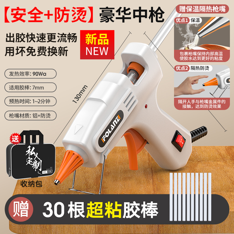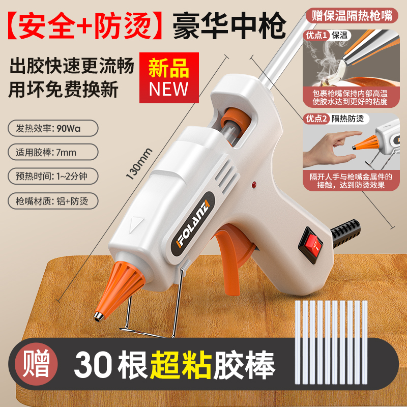 • [안전 + 화상 방지] 흰색 90W 고급 소형 총 + 슈퍼 접착 스틱 30개