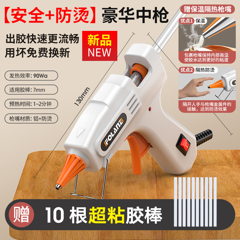 • [안전 + 화상 방지] 흰색 90W 고급 소형 총 + 슈퍼 접착 스틱 10개
