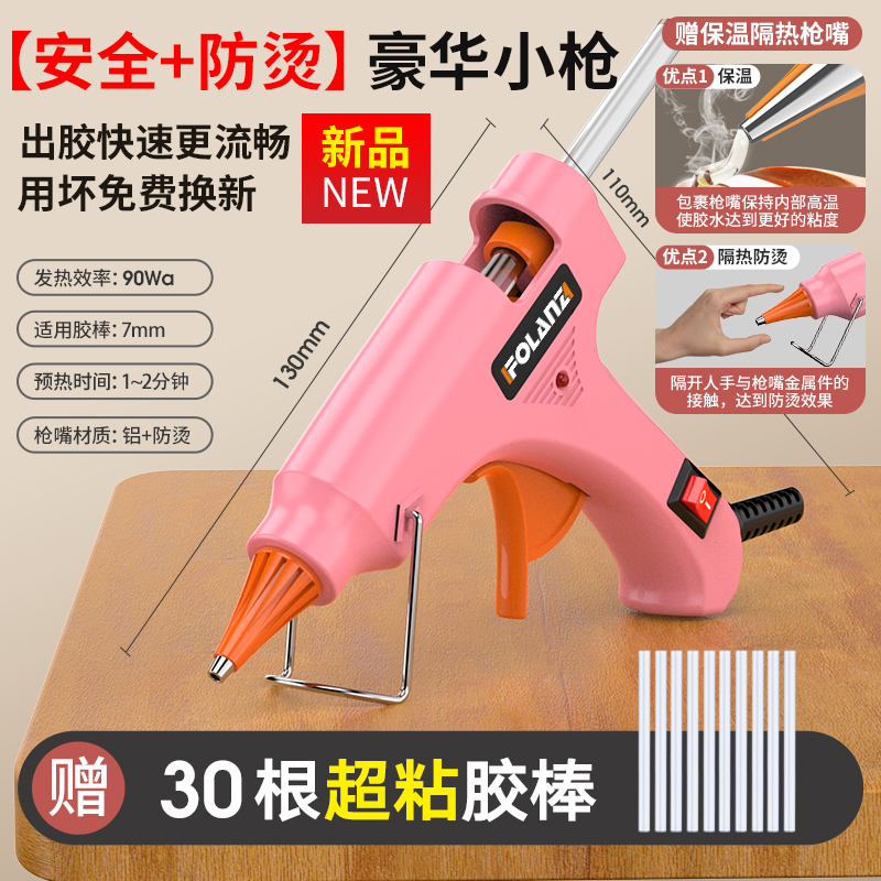 • [안전 + 화상 방지] 핑크 90W 럭셔리 소형 총 + 슈퍼 접착 스틱 10개
