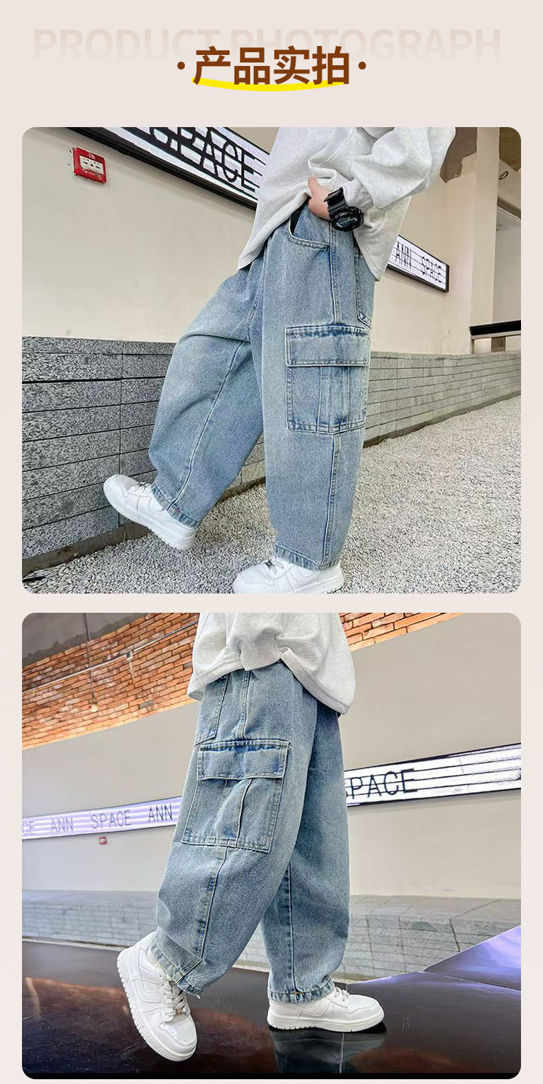 재고 소년 청바지 봄과 가을 새로운 어린이 바지 소년 가을 바지 큰 아이들 가을 스트레이트 다리 바지
