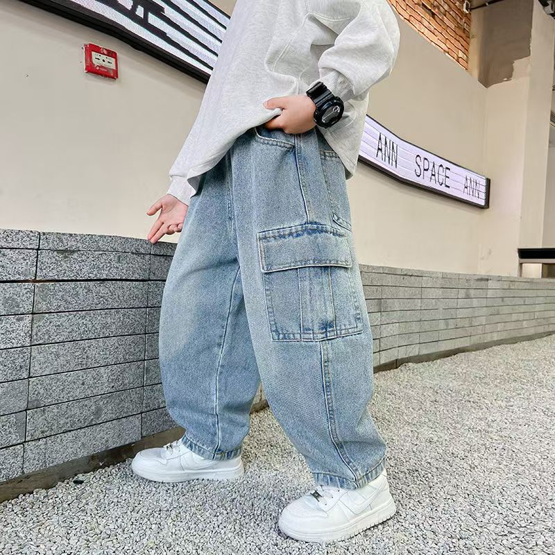 재고 소년 청바지 봄과 가을 새로운 어린이 바지 소년 가을 바지 큰 아이들 가을 스트레이트 다리 바지스토어 가기
