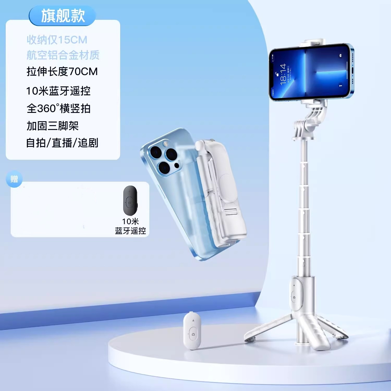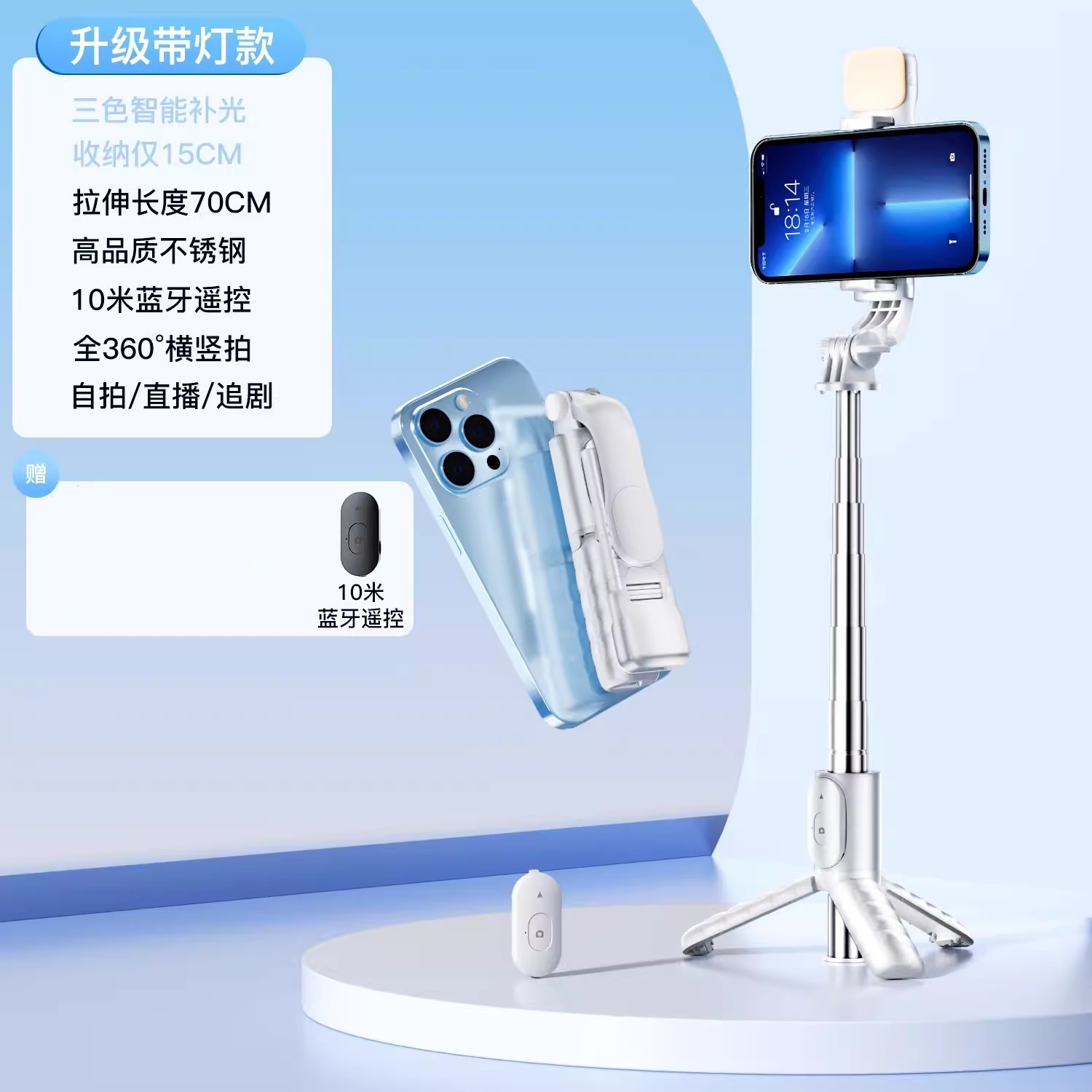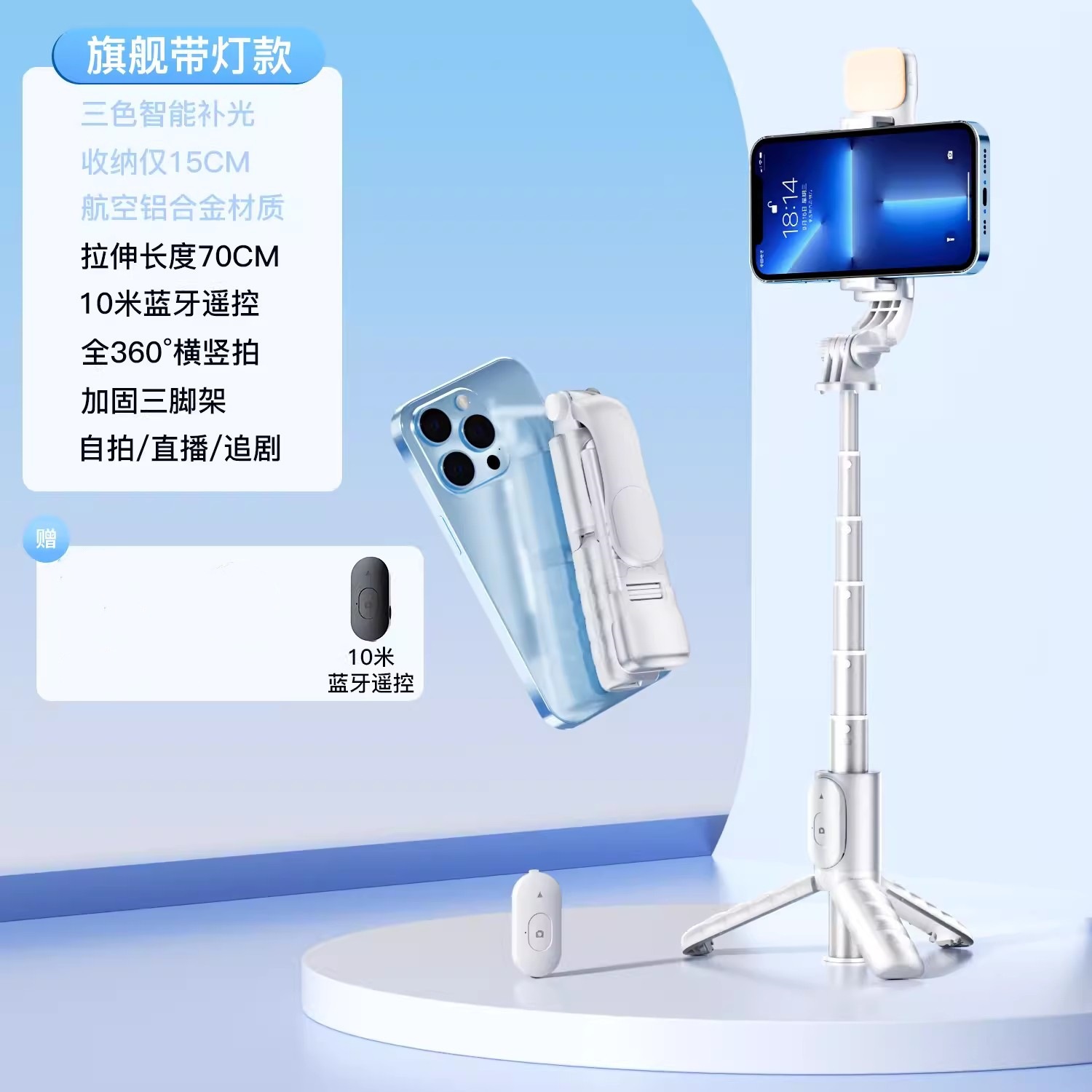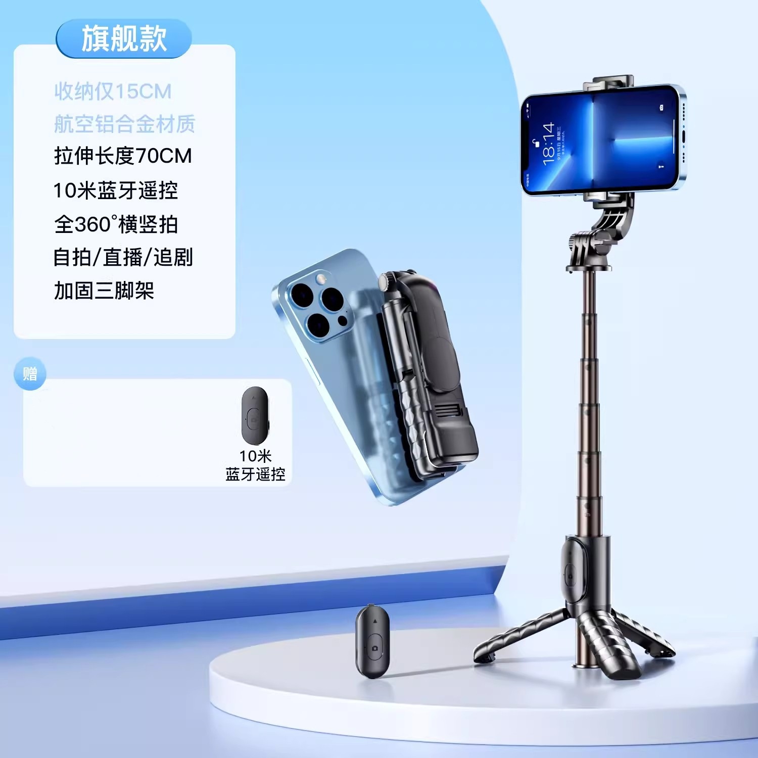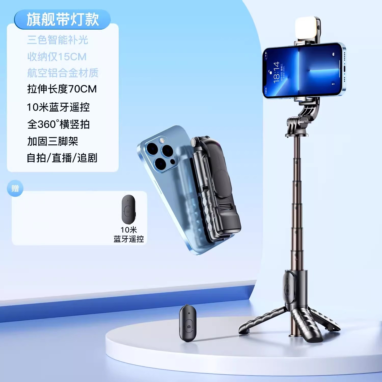 Zhengsi 휴대 전화 셀카 스틱 블루투스 무선 원격 제어 데스크탑 미니 알루미늄 합금 스탠드 필 라이트 미끄럼 방지 핸들