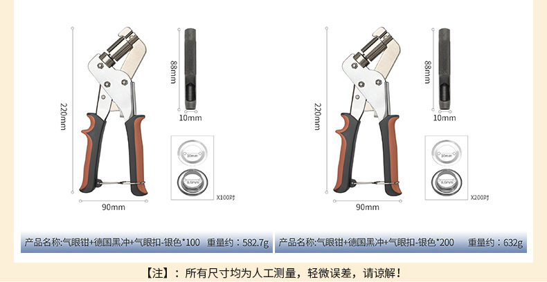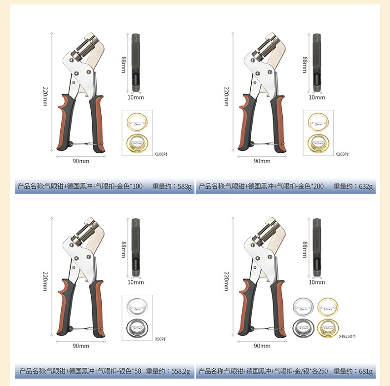 국경 10mm 방수포 금속 버튼 스냅 버튼 손 프레스 펜치 설치 도구 세트 휴대용 버클