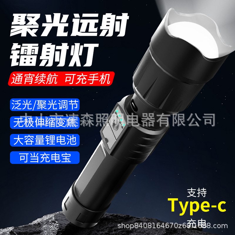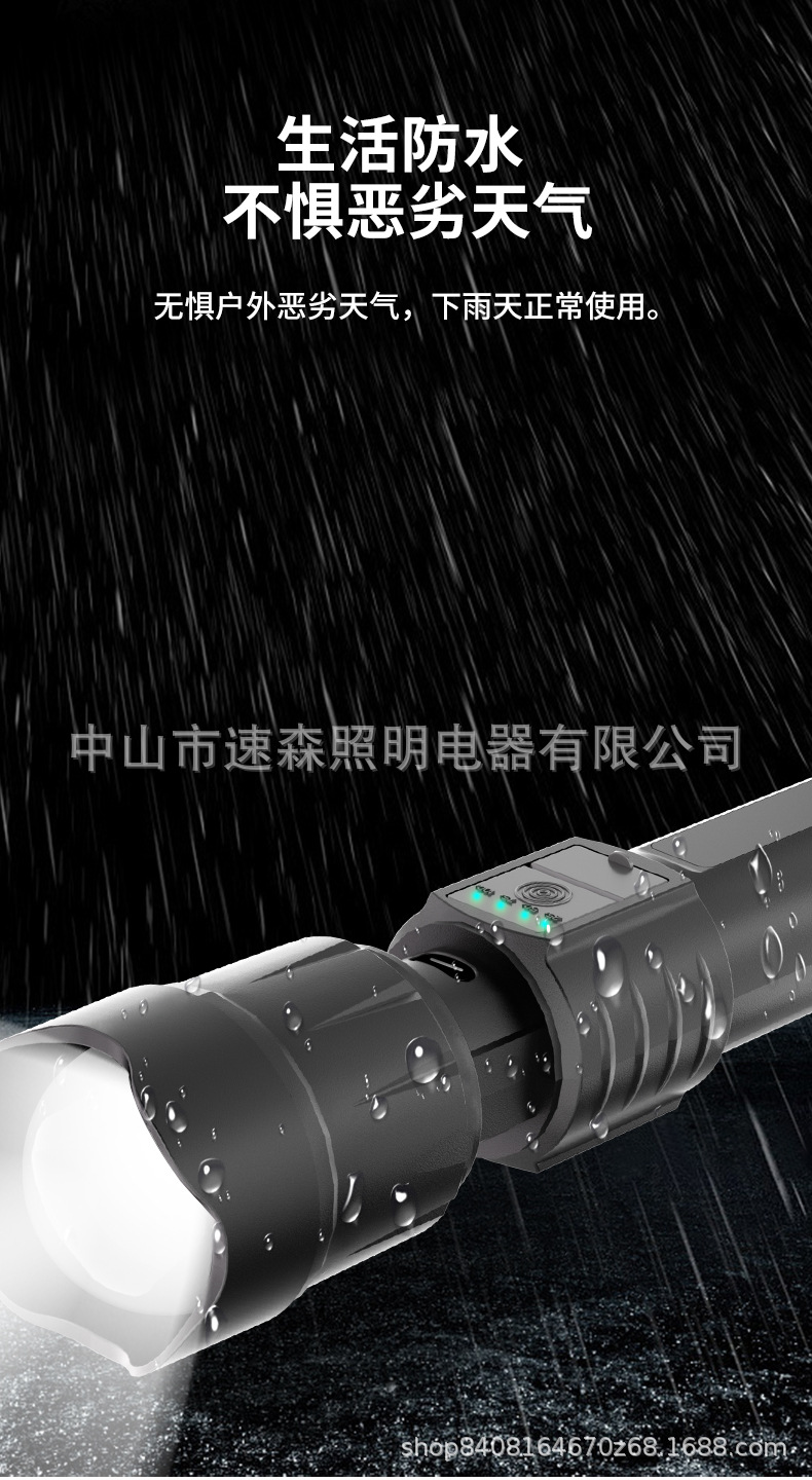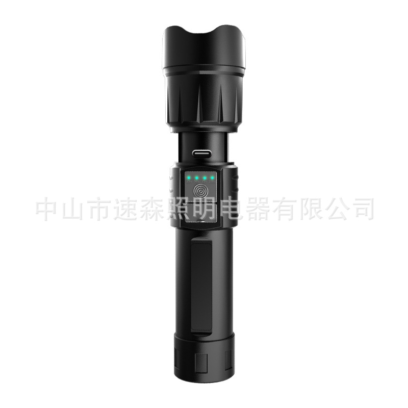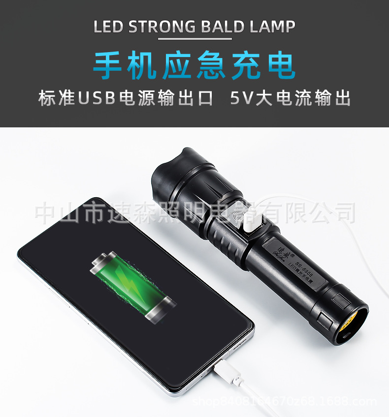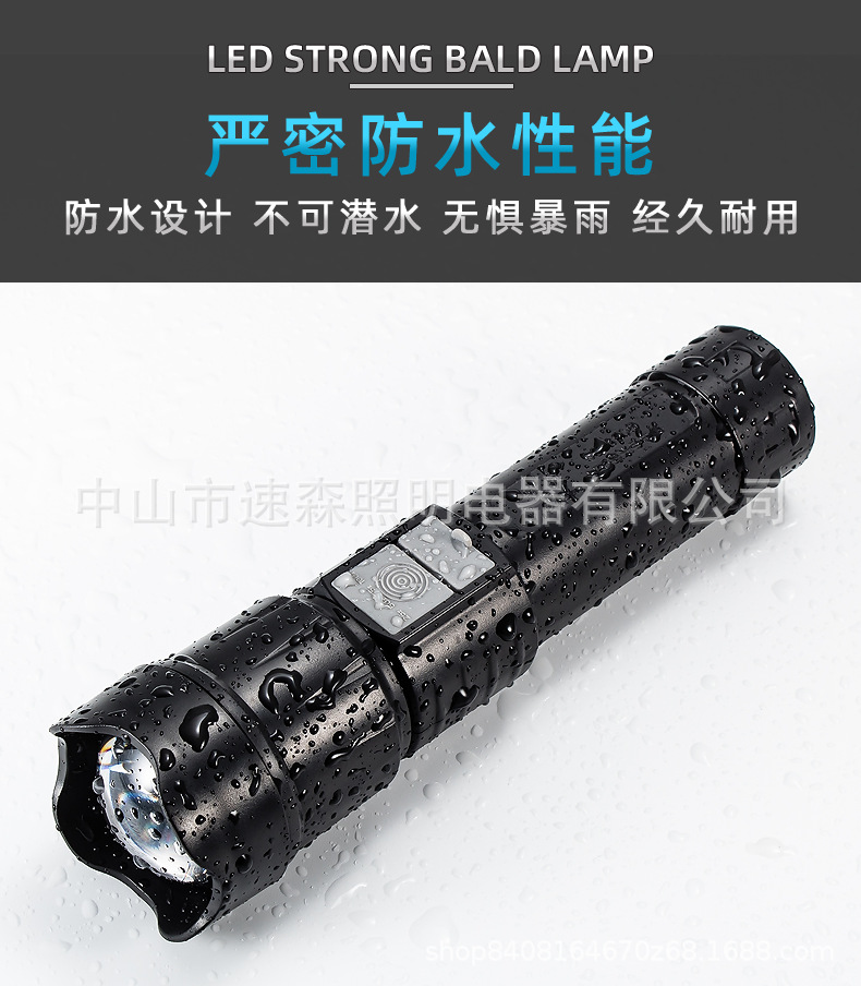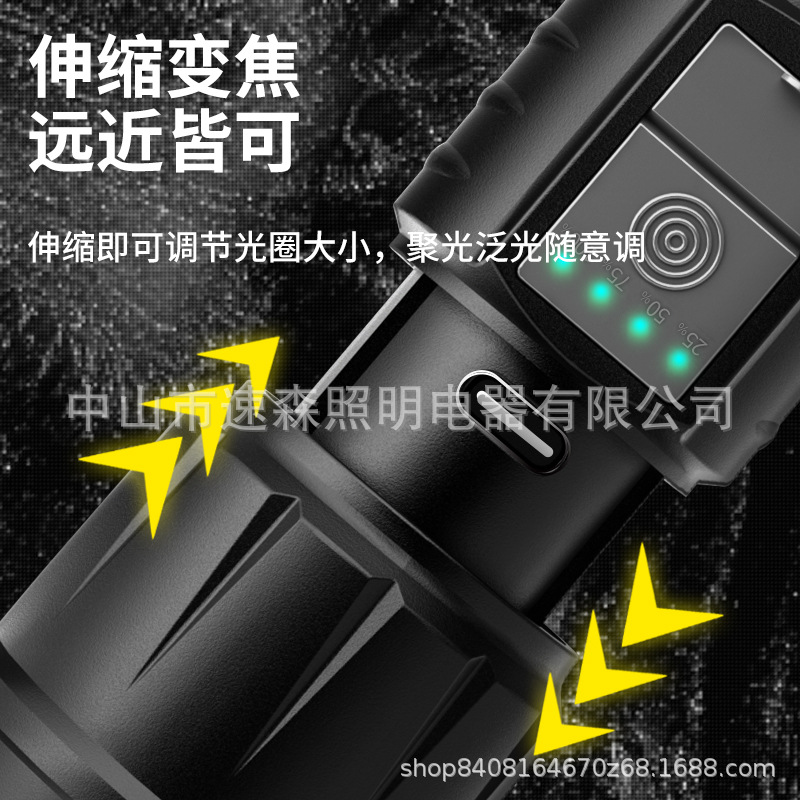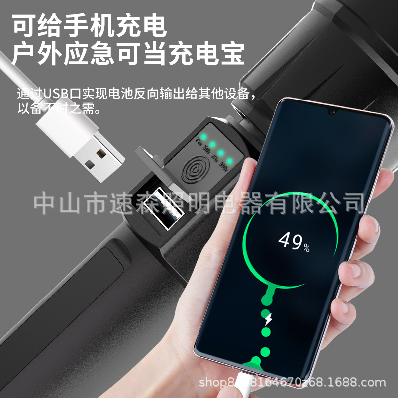 강력한 빛 밝은 LED 충전식 텔레스코픽 줌 손전등 USB 출력 줌 실외 조명 장거리스토어 가기