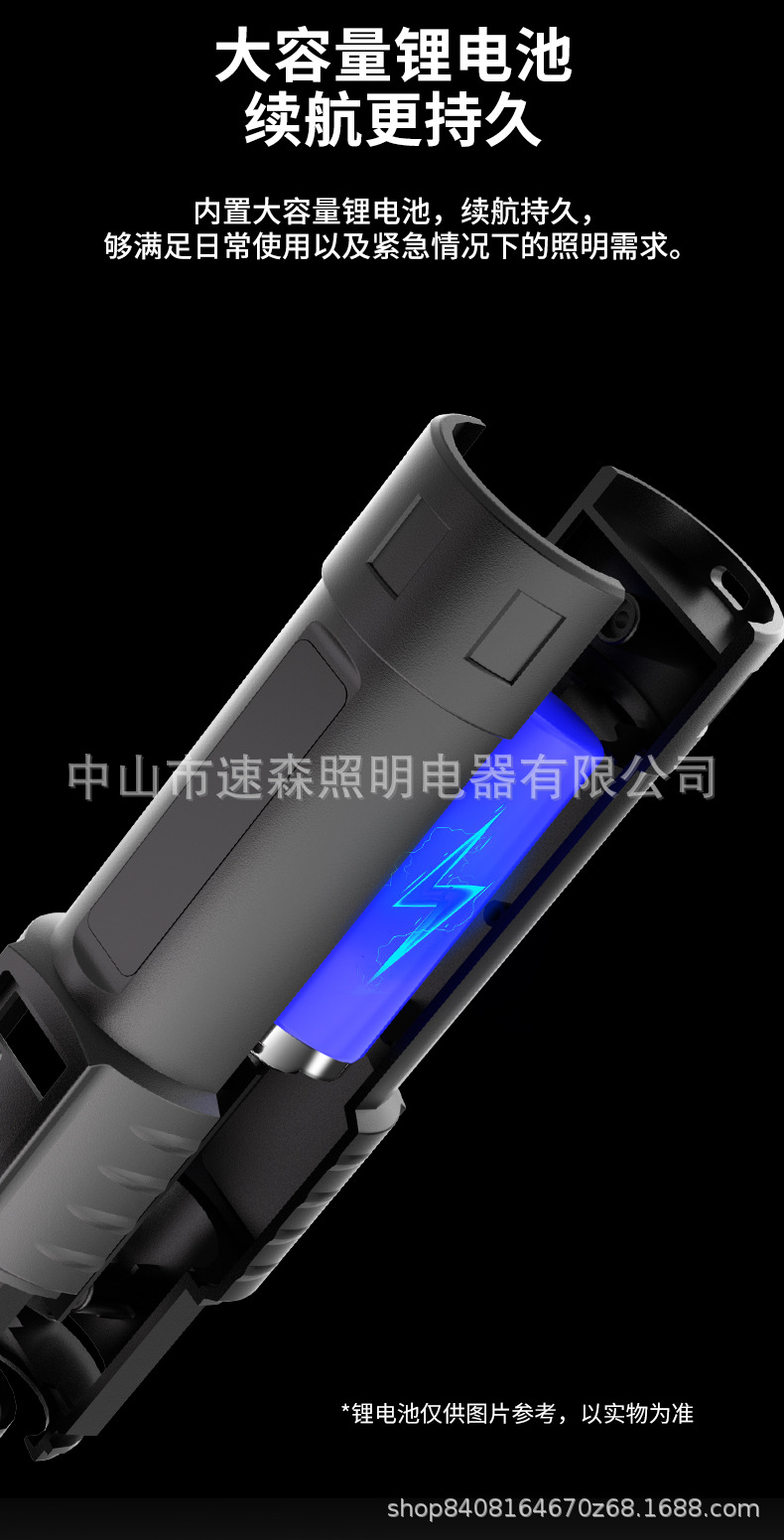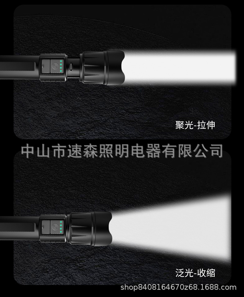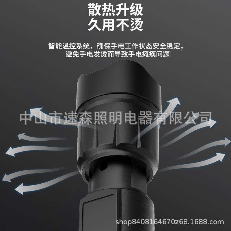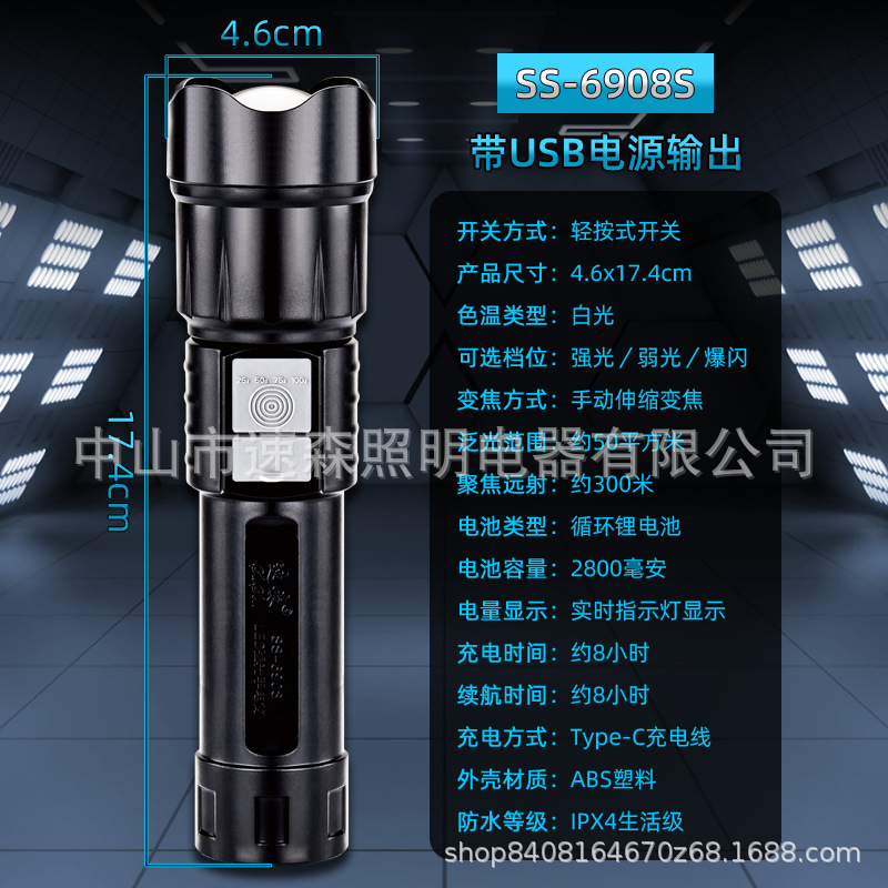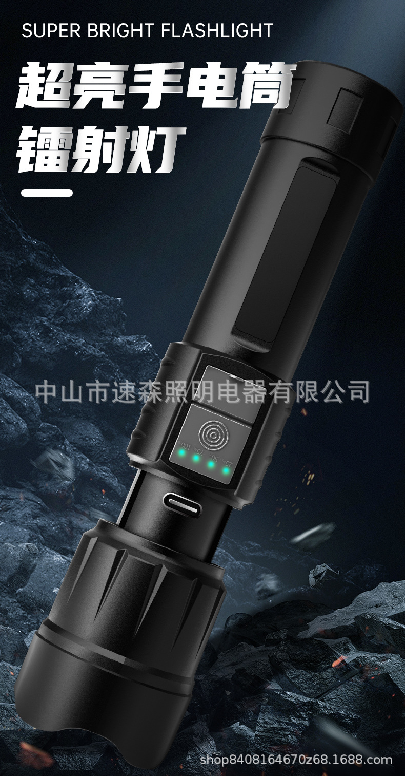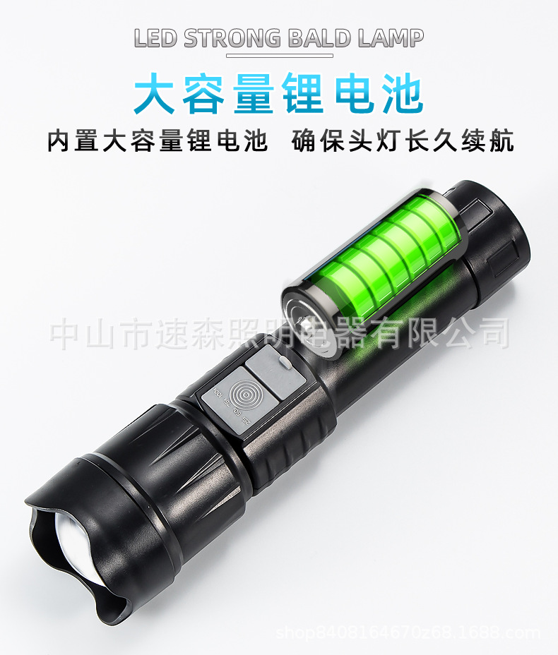 강력한 빛 밝은 LED 충전식 텔레스코픽 줌 손전등 USB 출력 줌 실외 조명 장거리스토어 가기