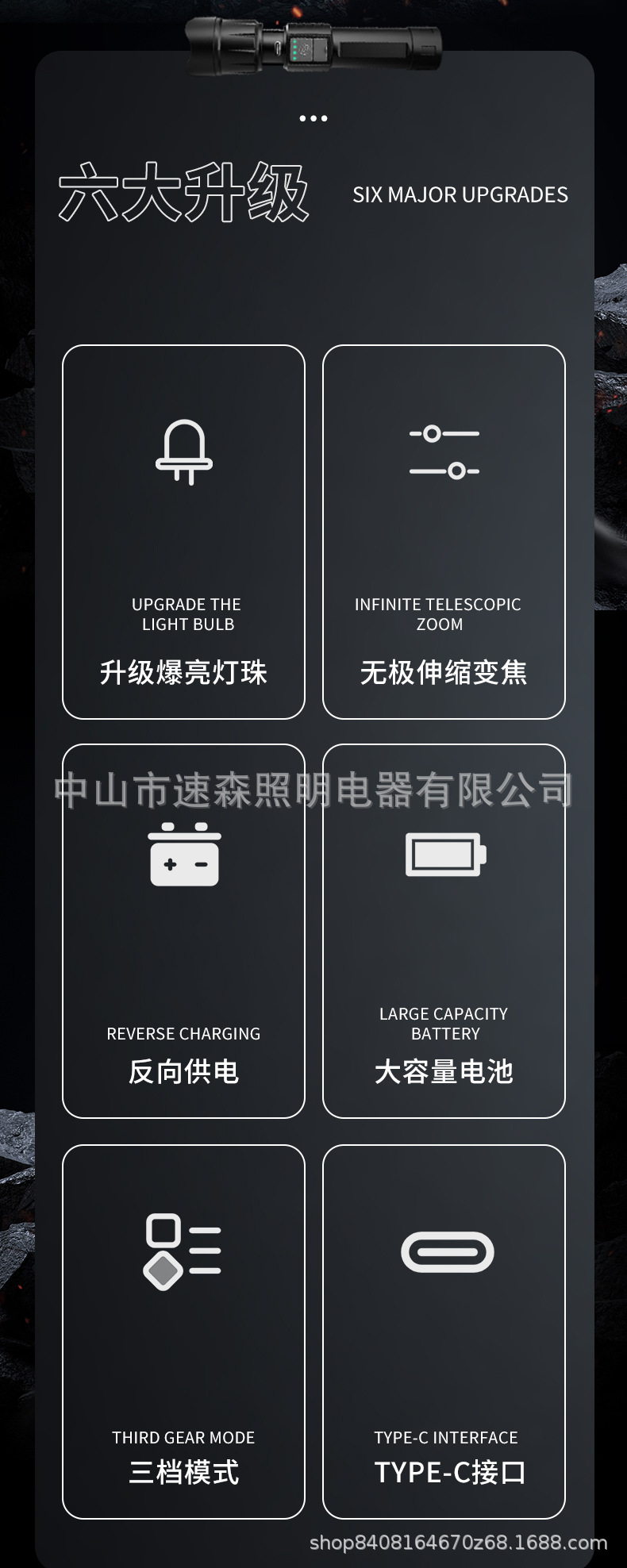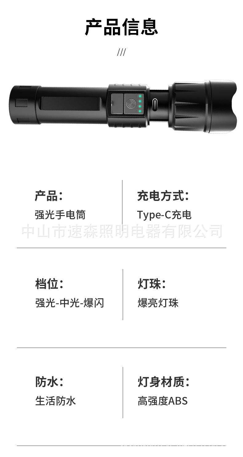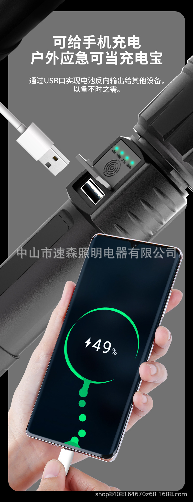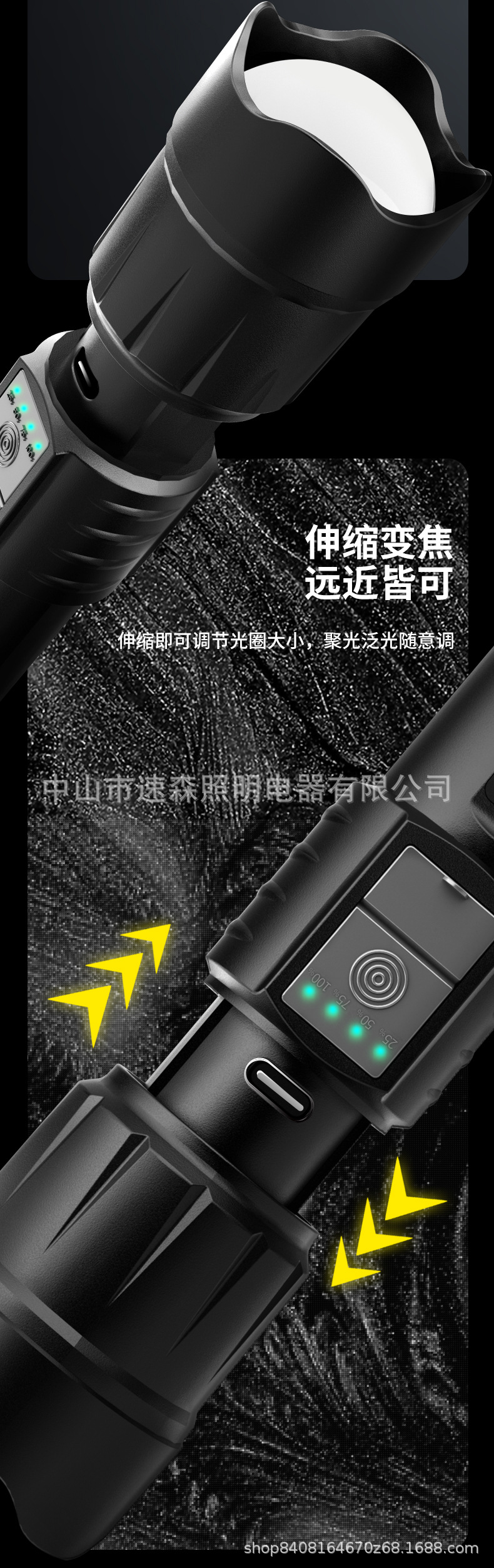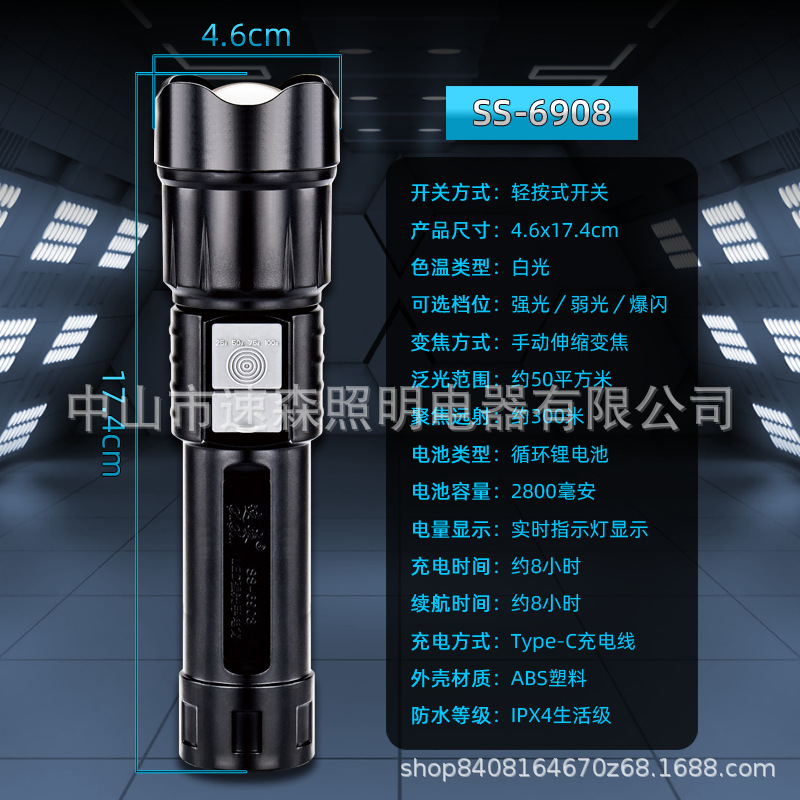 강력한 빛 밝은 LED 충전식 텔레스코픽 줌 손전등 USB 출력 줌 실외 조명 장거리스토어 가기