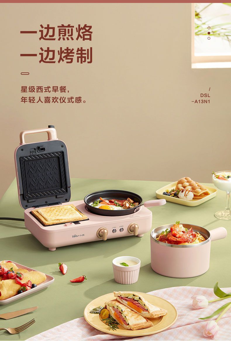곰 아침 식사 기계 가정용 작은 게으른 가벼운 음식 기계 다기능 4 대 1 프레스 구운 샌드위치 빵 아침 식사 기계
