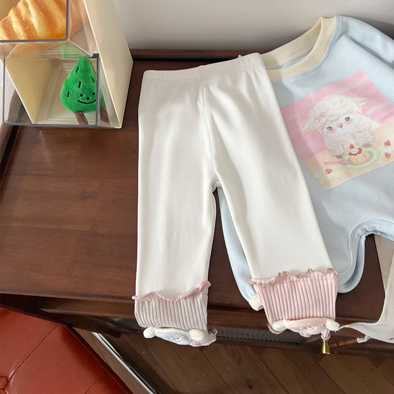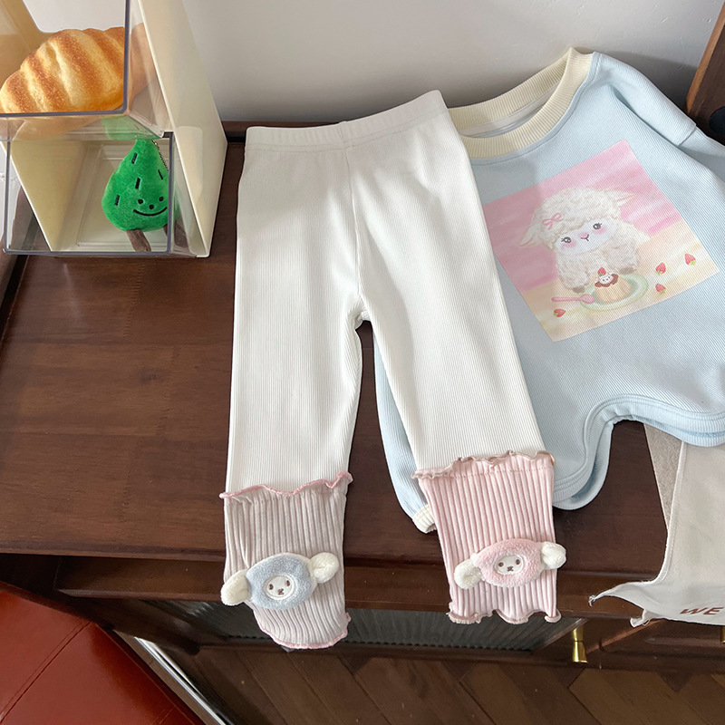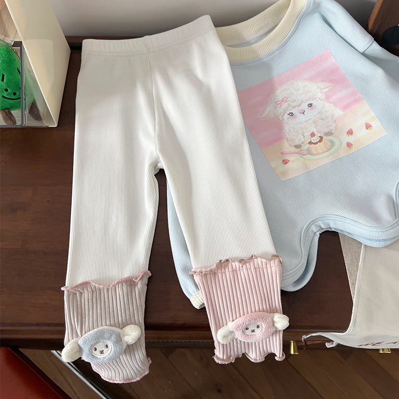 [재고 있음] 아동용 레깅스 2025 봄 신상 입체 만화 인형 스플라이스 컬러 아동용 레깅스