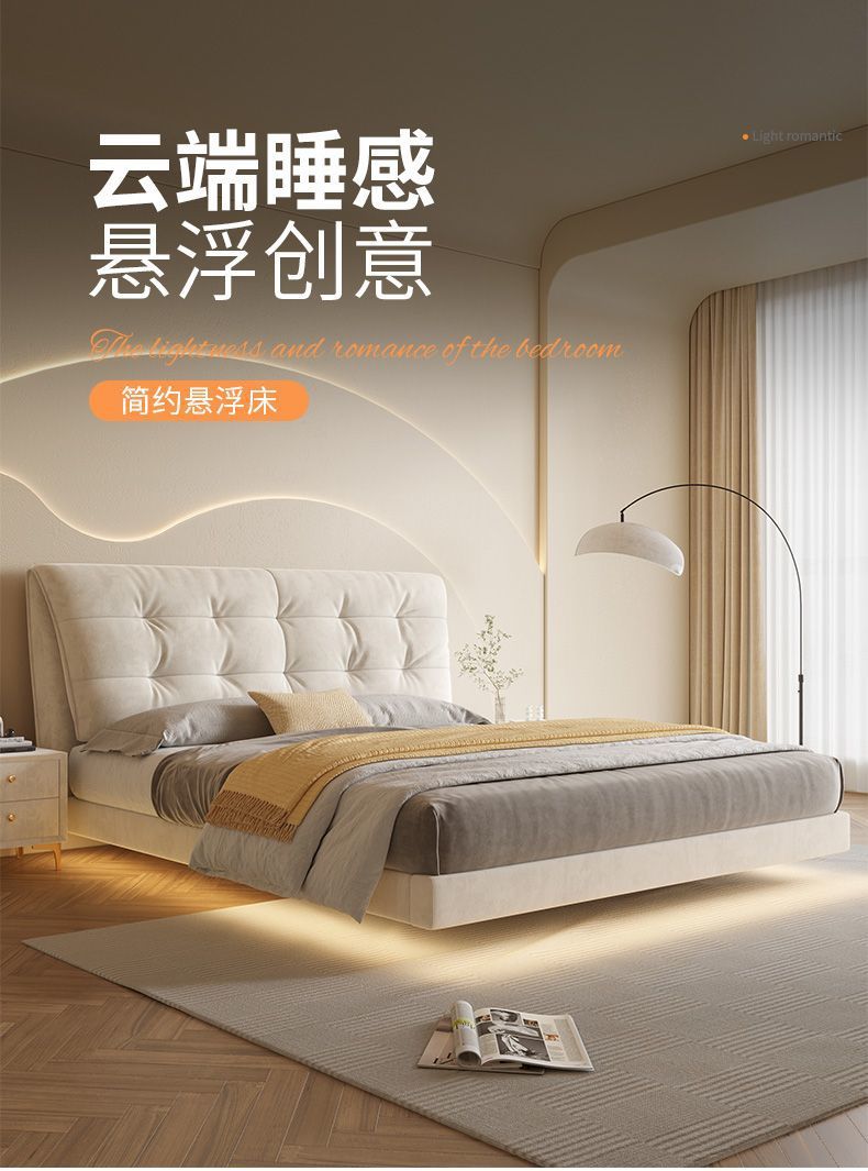 크림 바람 서스펜션 침대 현대 미니멀 마스터 침실. M 더블 침대 유도 램프 기술 벨벳 매달린 소프트 백 침대스토어 가기