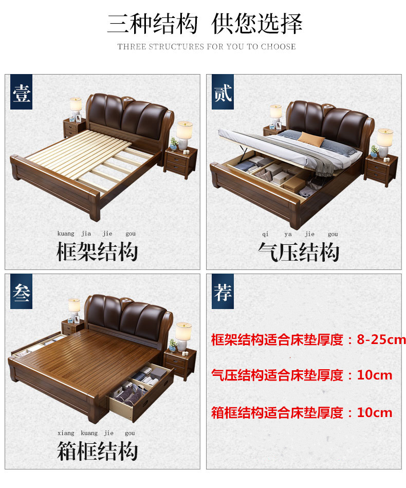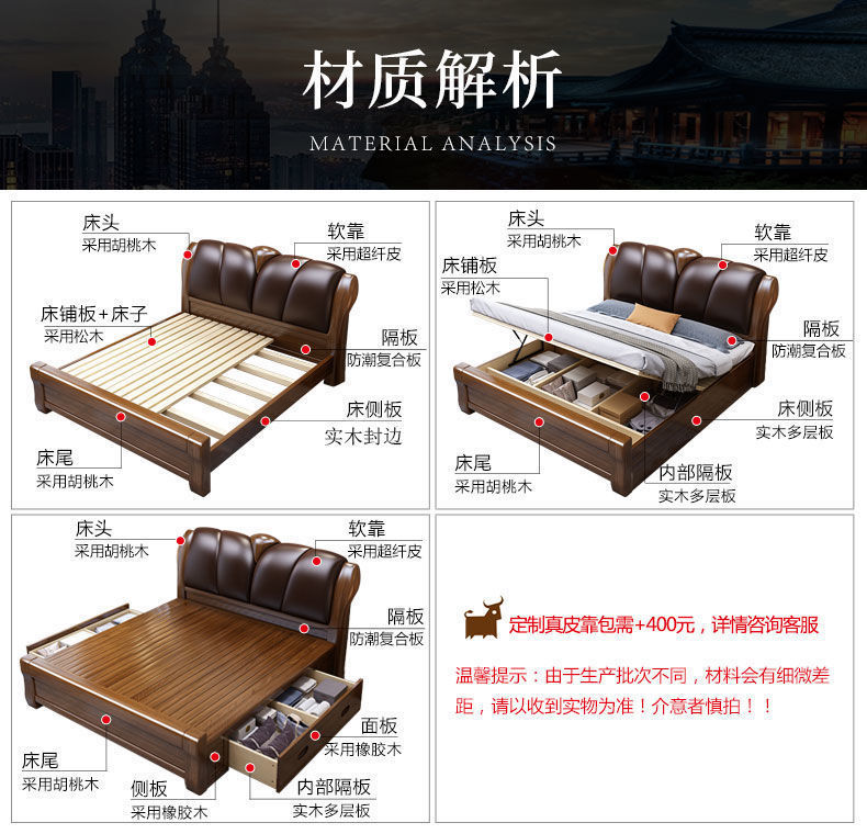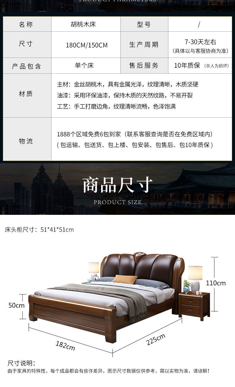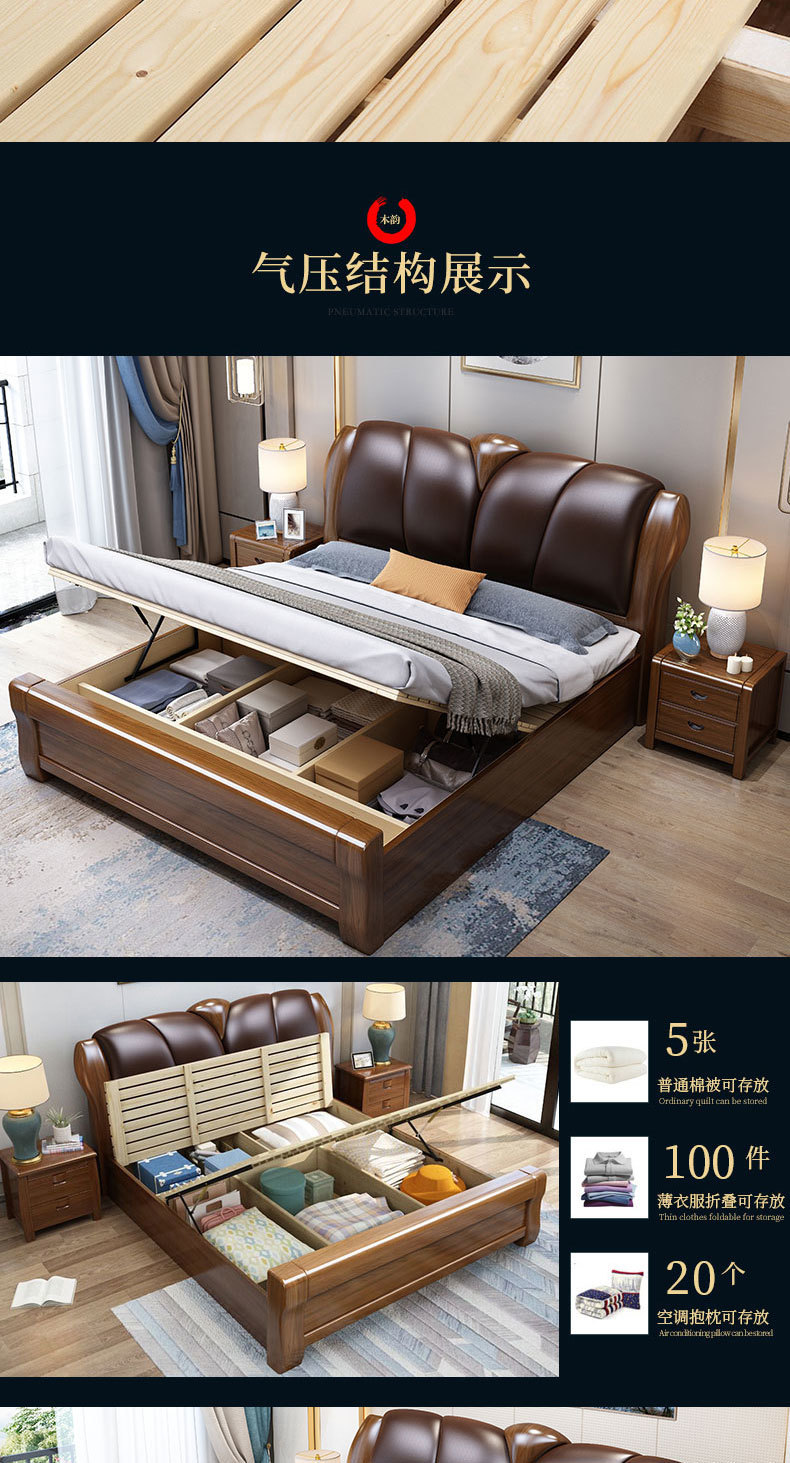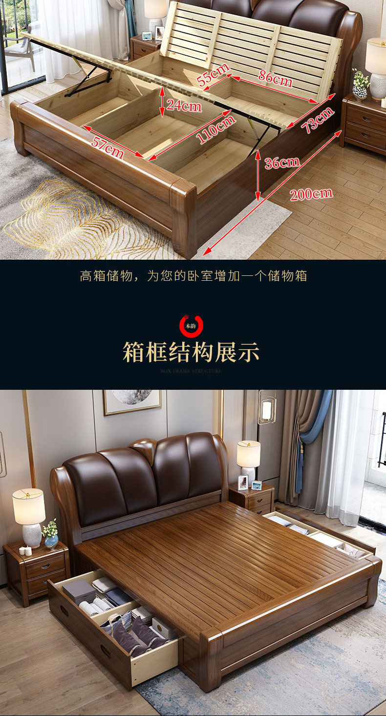 새로운 호두 단단한 나무 침대. 현대 미니멀 미터 더블 침대. 부드러운 가죽 마스터 침실 웨딩 침대 보관 침대스토어 가기