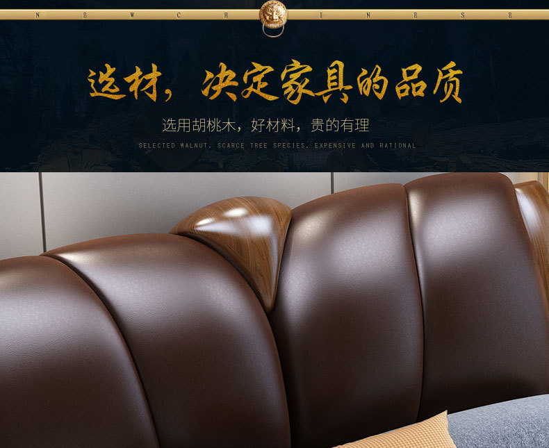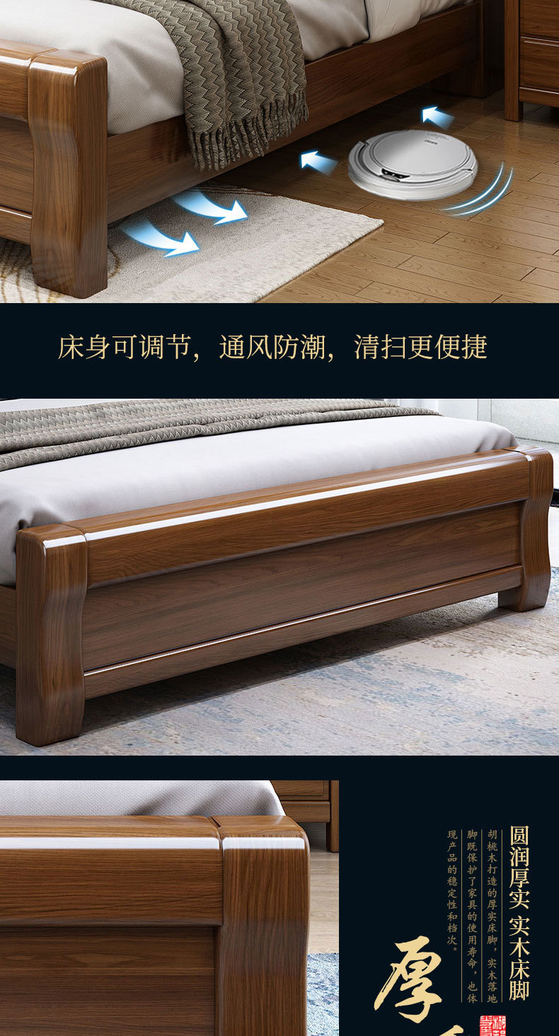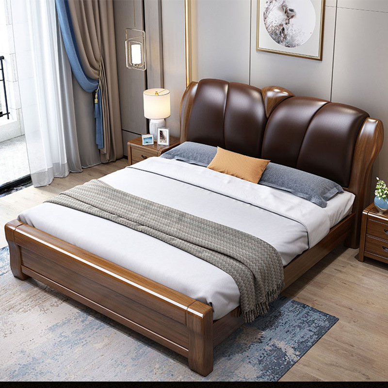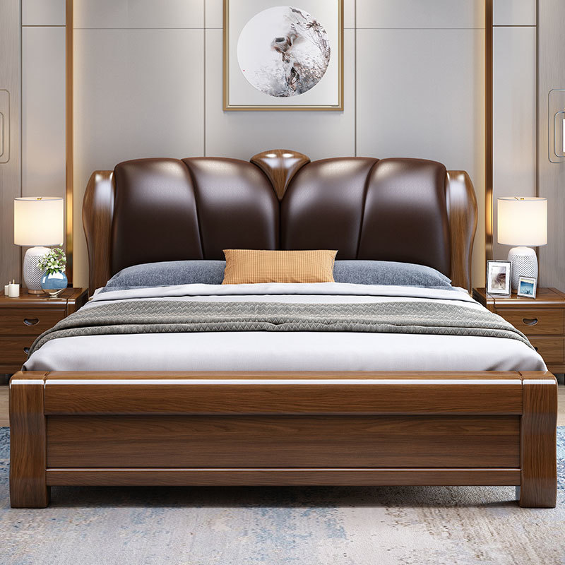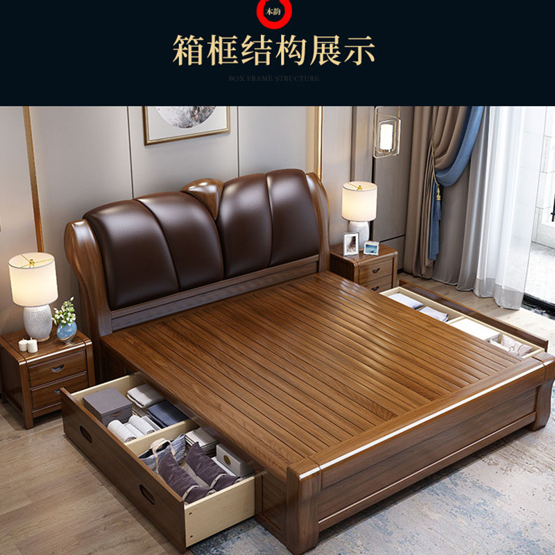 새로운 호두 단단한 나무 침대. 현대 미니멀 미터 더블 침대. 부드러운 가죽 마스터 침실 웨딩 침대 보관 침대