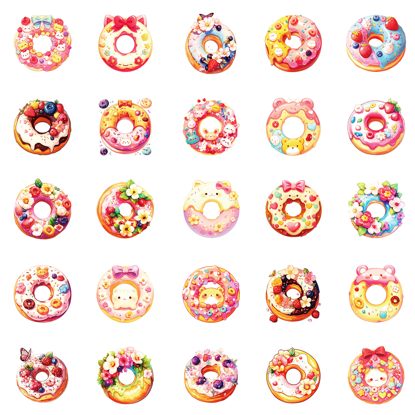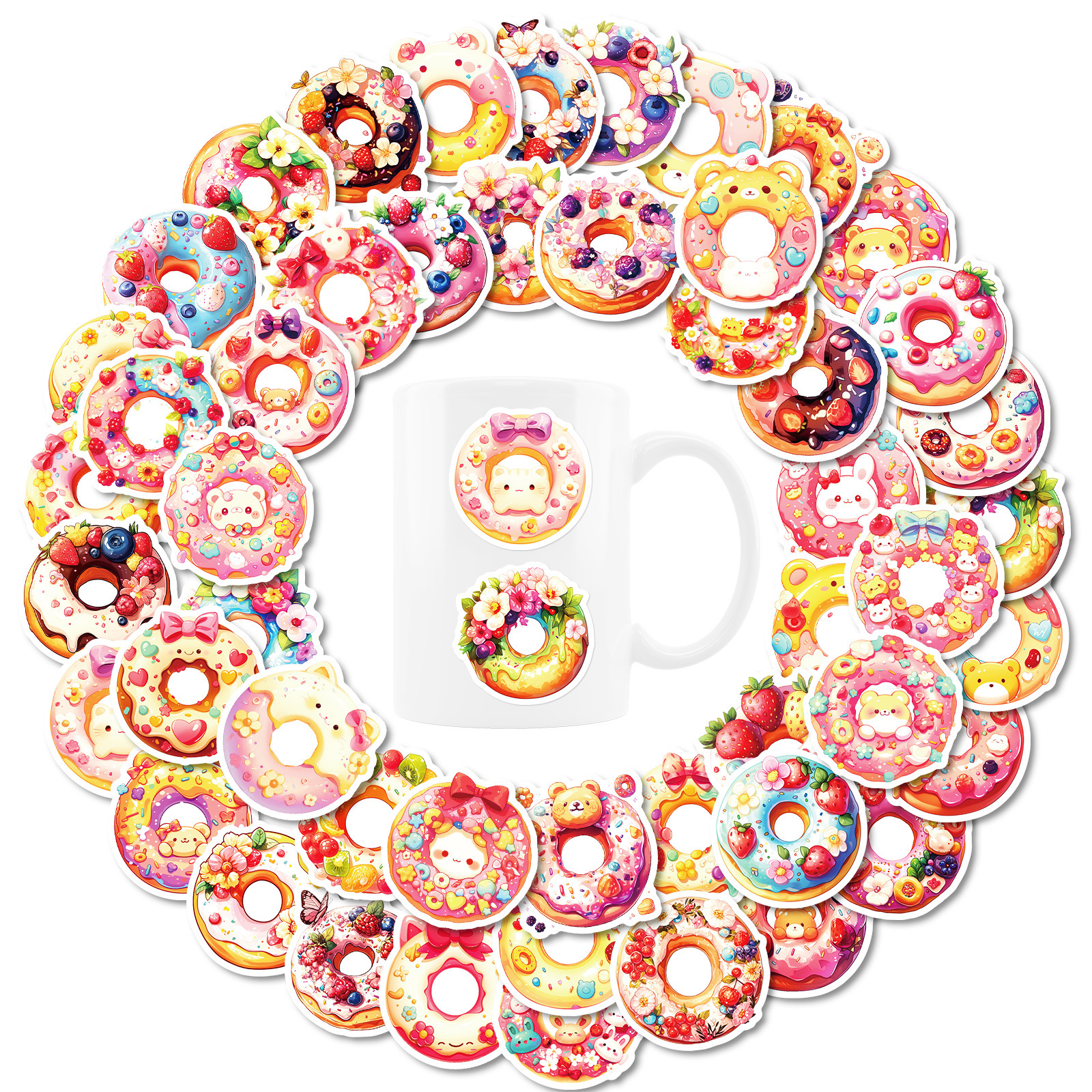 새로운 50 귀여운 손으로 그린 만화 도넛 시리즈 스티커 아마존 국경 베스트셀러 스티커 장식 손 계정스토어 가기