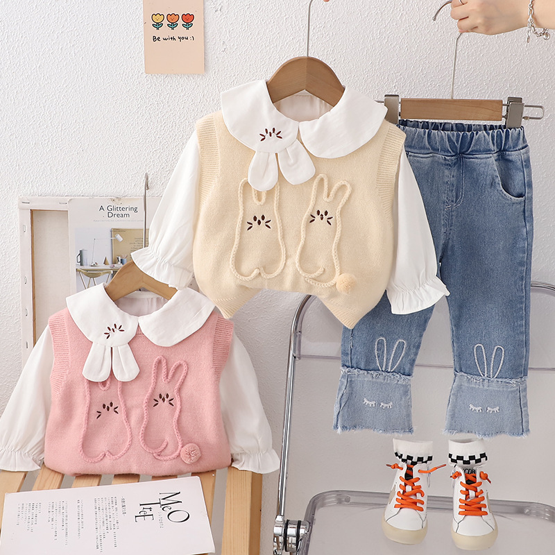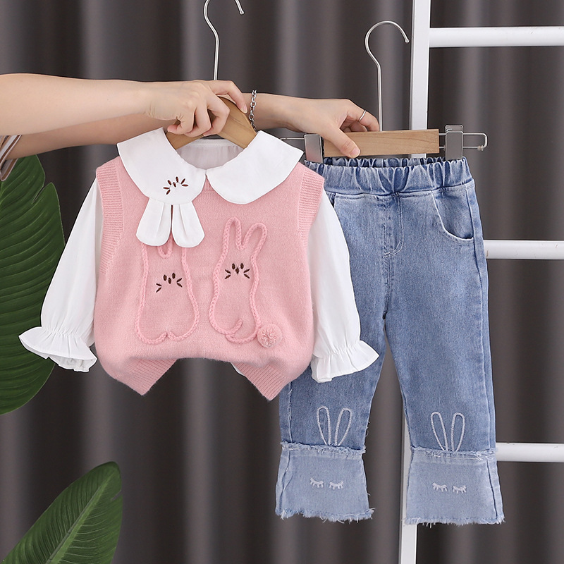 소녀의 가을 세트 1-2-3-4 세 아기 외국식 옷 어린이 가을 토끼 스웨터 3 피스 세트