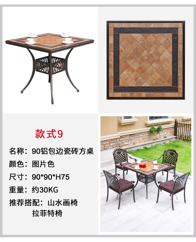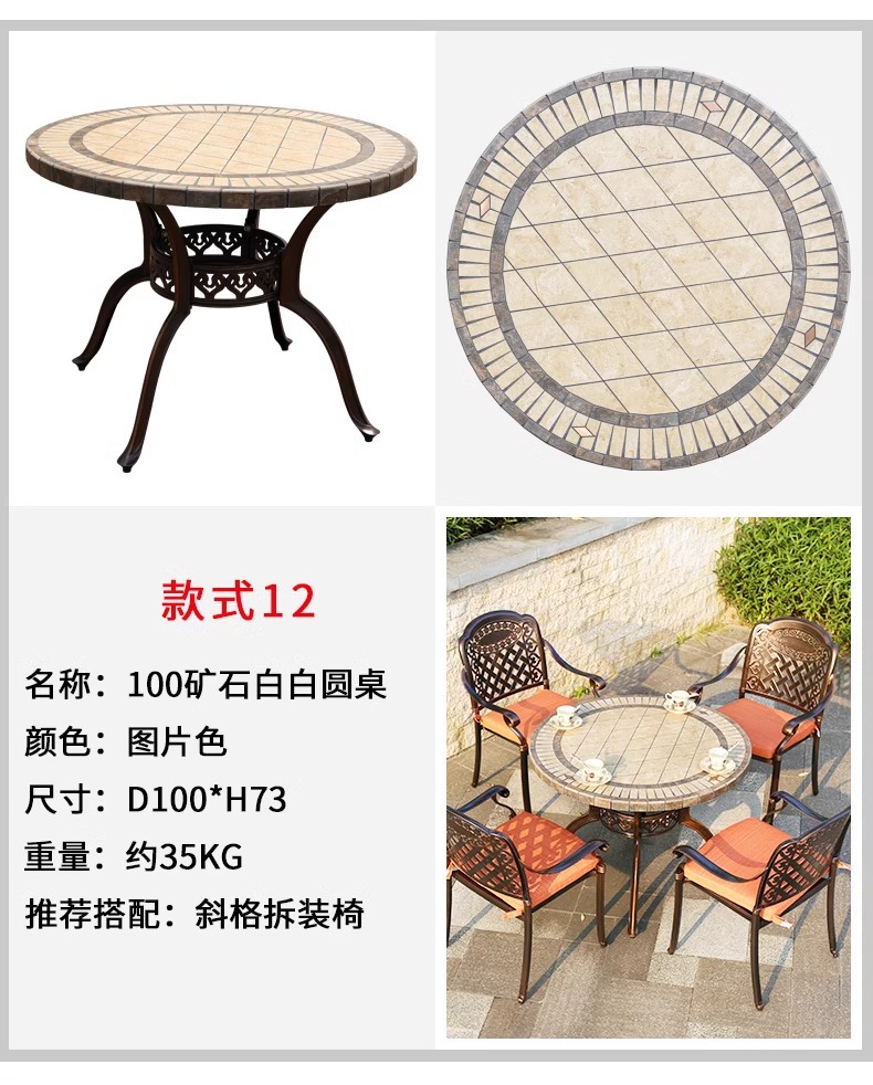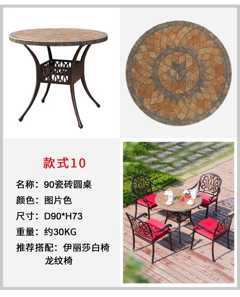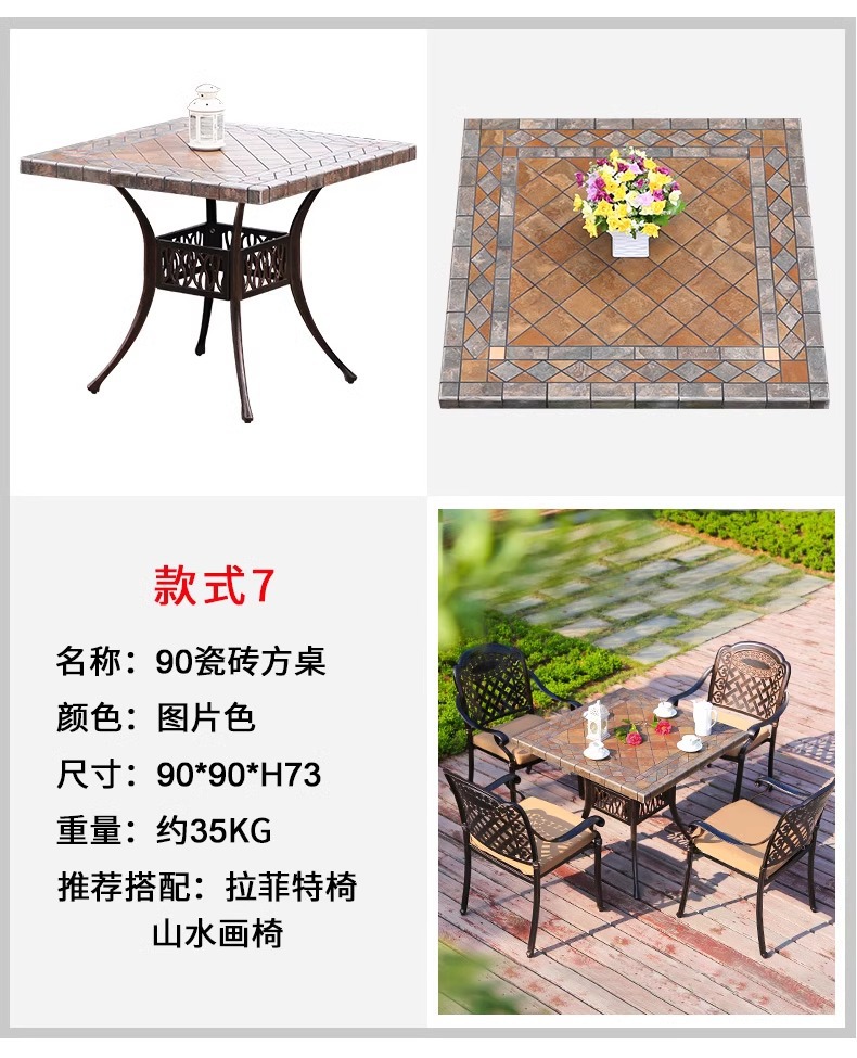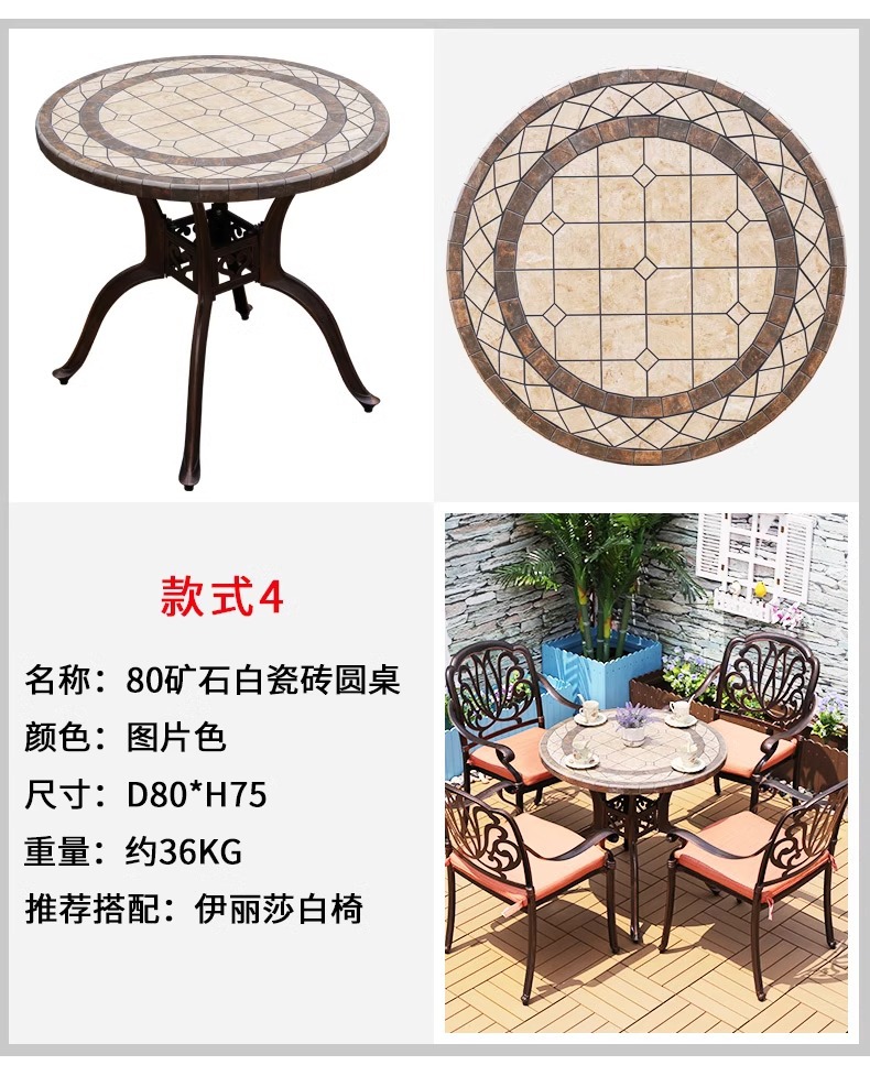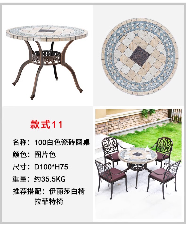 타일 테이블과 의자, 야외 대리석 식탁, 야외 주조 알루미늄 안뜰 정원 발코니 테이블, 원형 테이블, 긴 테이블 도매스토어 가기