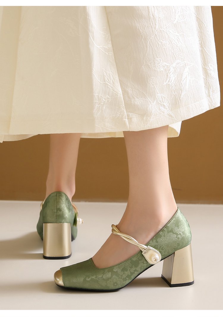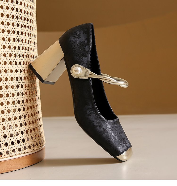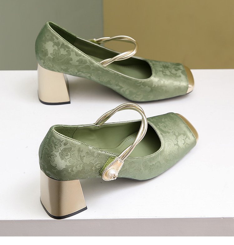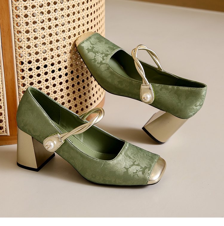 프랑스 복고풍 청삼 신발 2025 새로운 거친 뒤꿈치 색상 일치 메리 제인 하이힐 새로운 중국 스타일 국가 스타일 싱글 레이어 신발 여성스토어 가기
