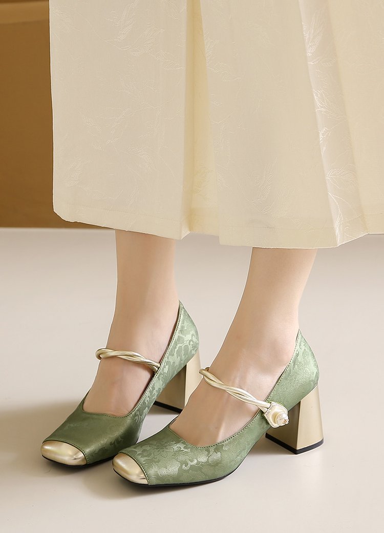 프랑스 복고풍 청삼 신발 2025 새로운 거친 뒤꿈치 색상 일치 메리 제인 하이힐 새로운 중국 스타일 국가 스타일 싱글 레이어 신발 여성