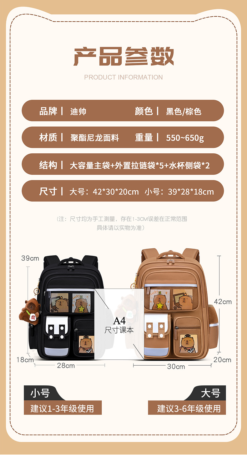 소녀 초등학교 학생을위한 카피 발라 스쿨 백 1, 2, 3-6 명의 소년, 어린이 및 소녀 릿지 보호 대용량