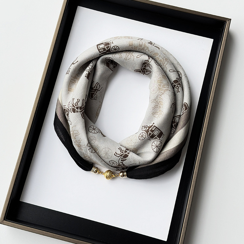 패션 서양식 작은 광장 스카프 한국면 실크 스카프 마그네틱 버클 올 매치 스카프 얇은 목 보호 고급 작은 스카프