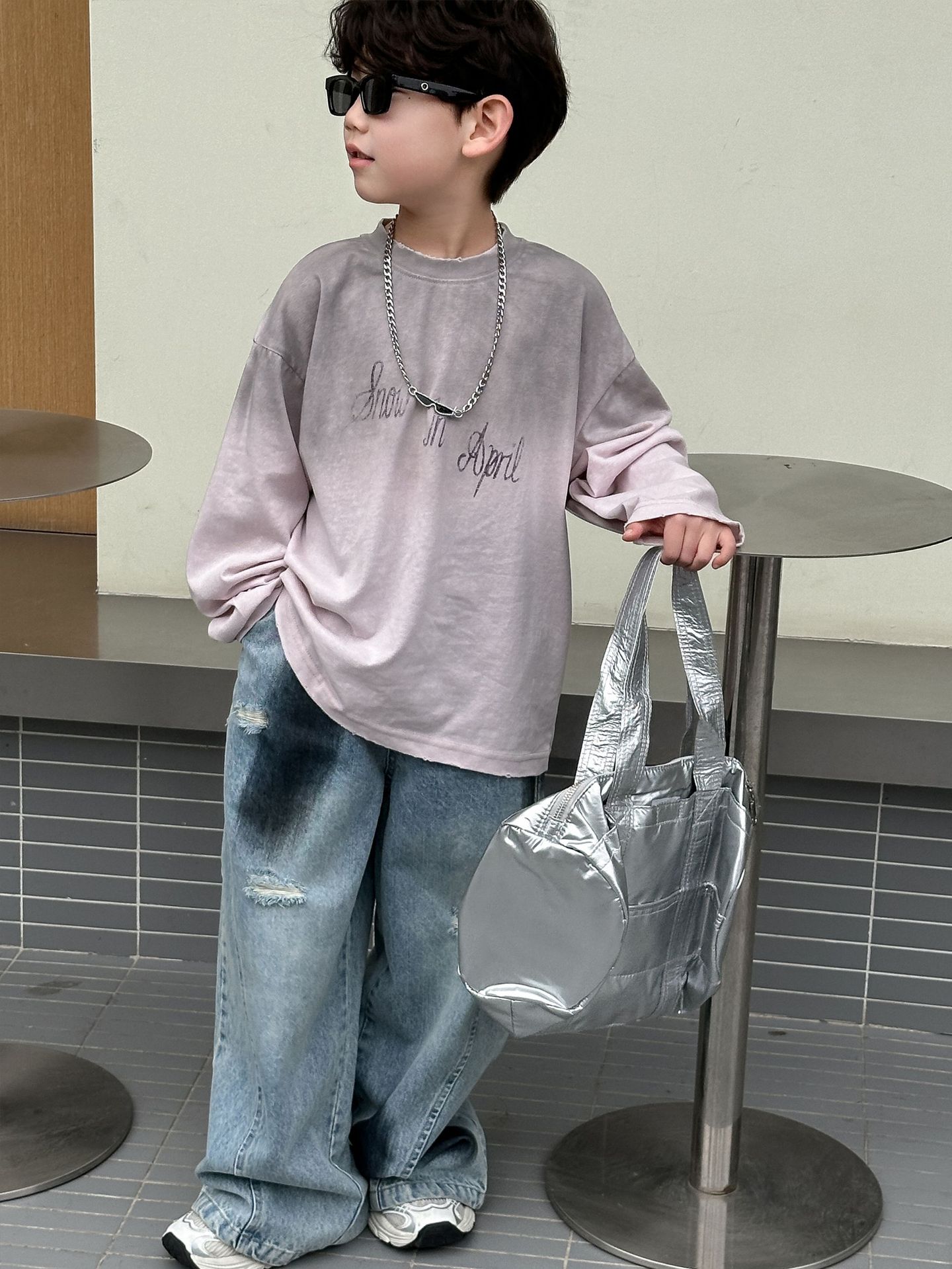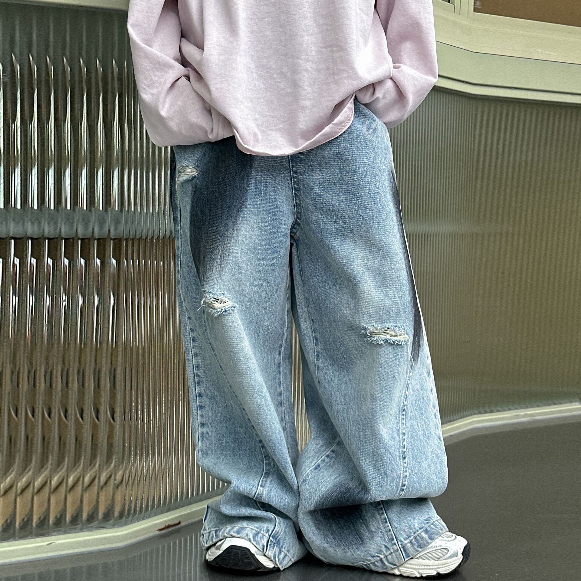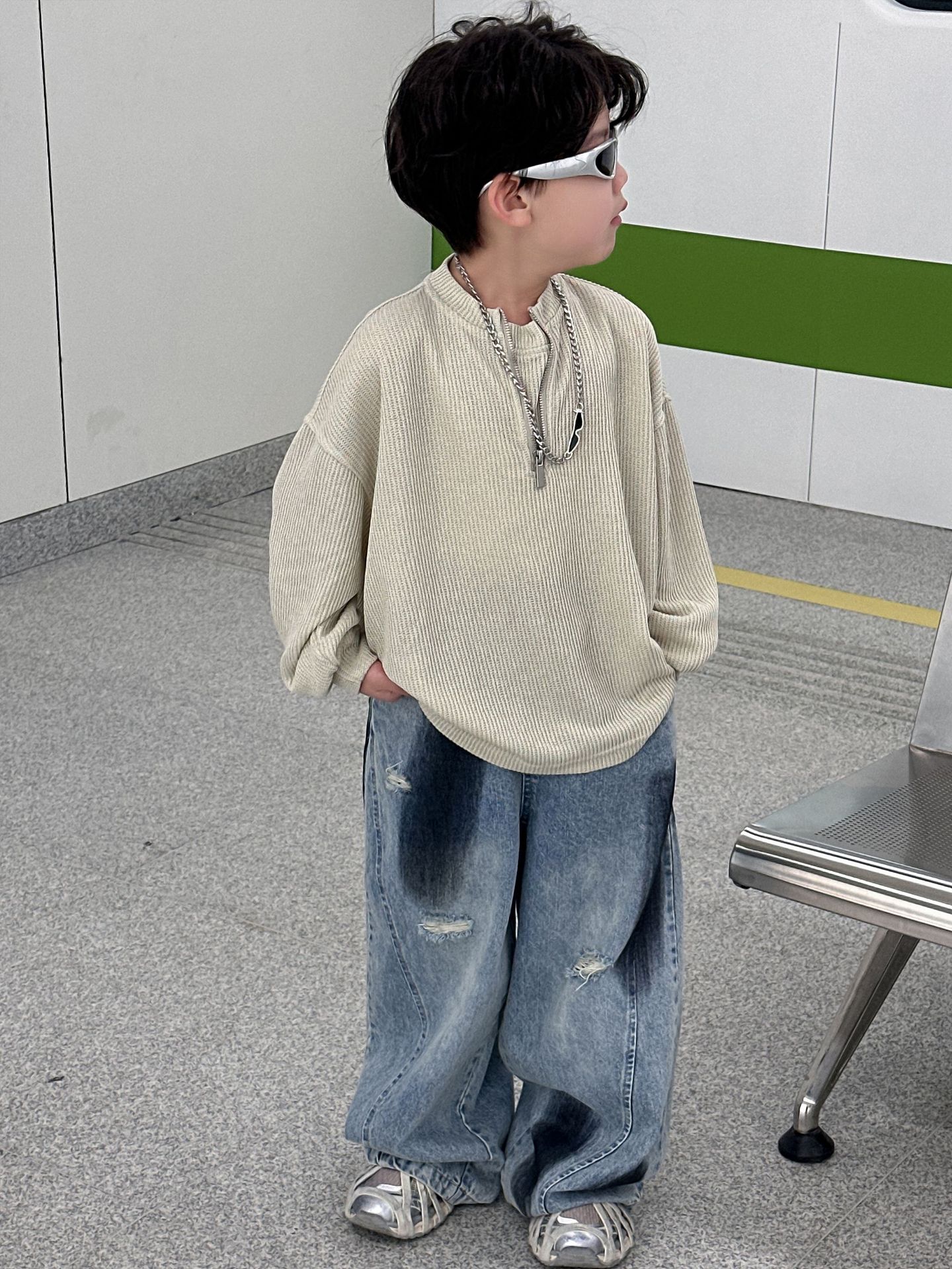 남아용 레트로 청바지 2025 봄 신상 아동용 한국 스타일 루즈핏 스트레이트 팬츠 유아 및 어린이용 패션 와이드 팬츠