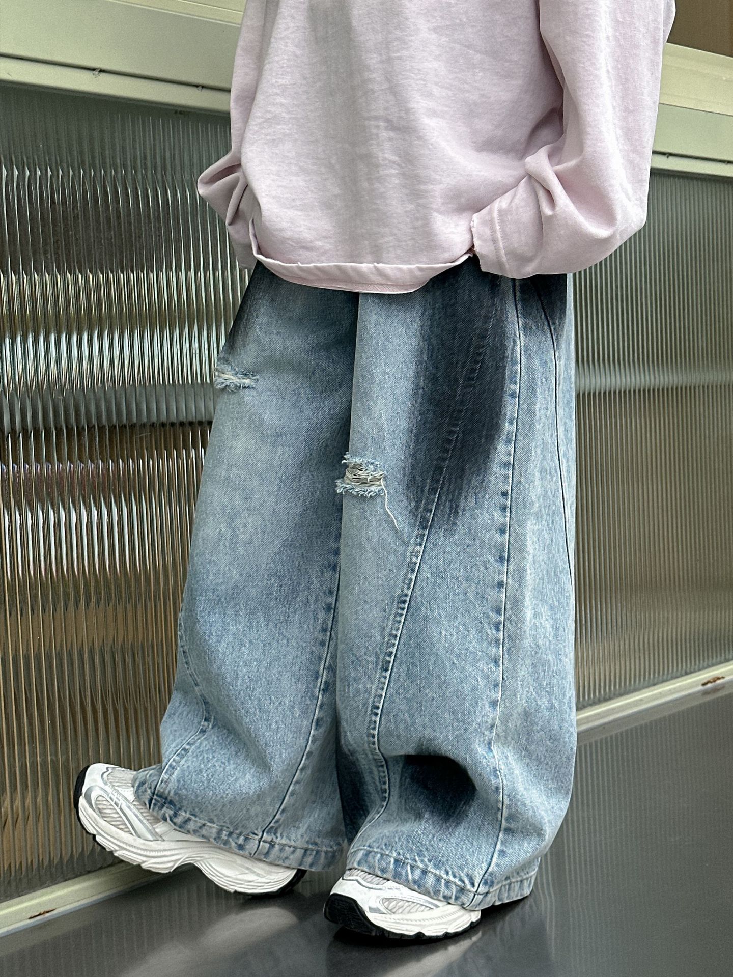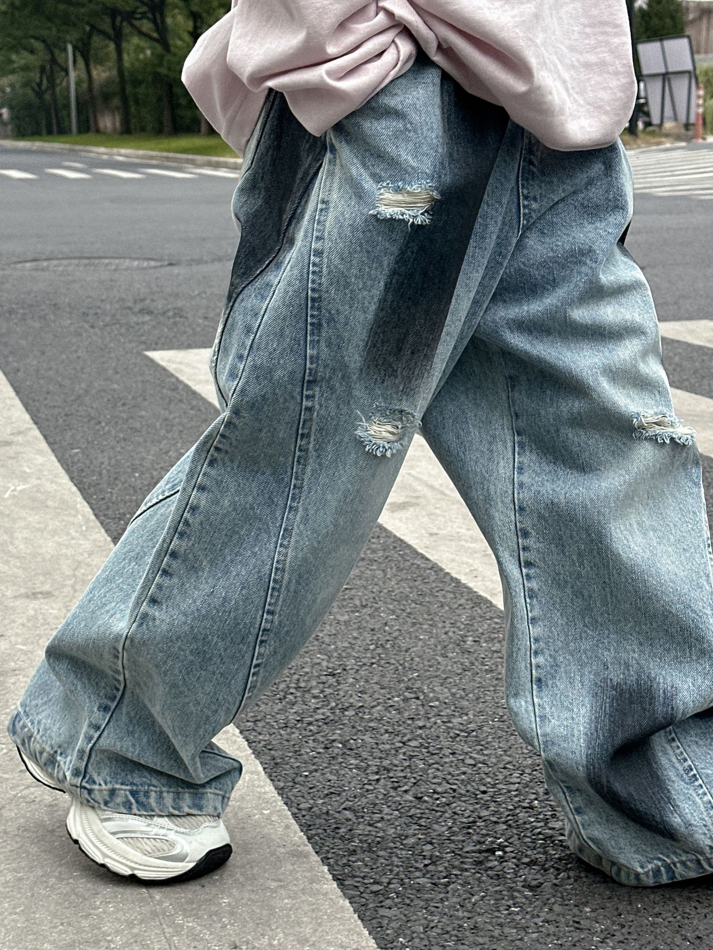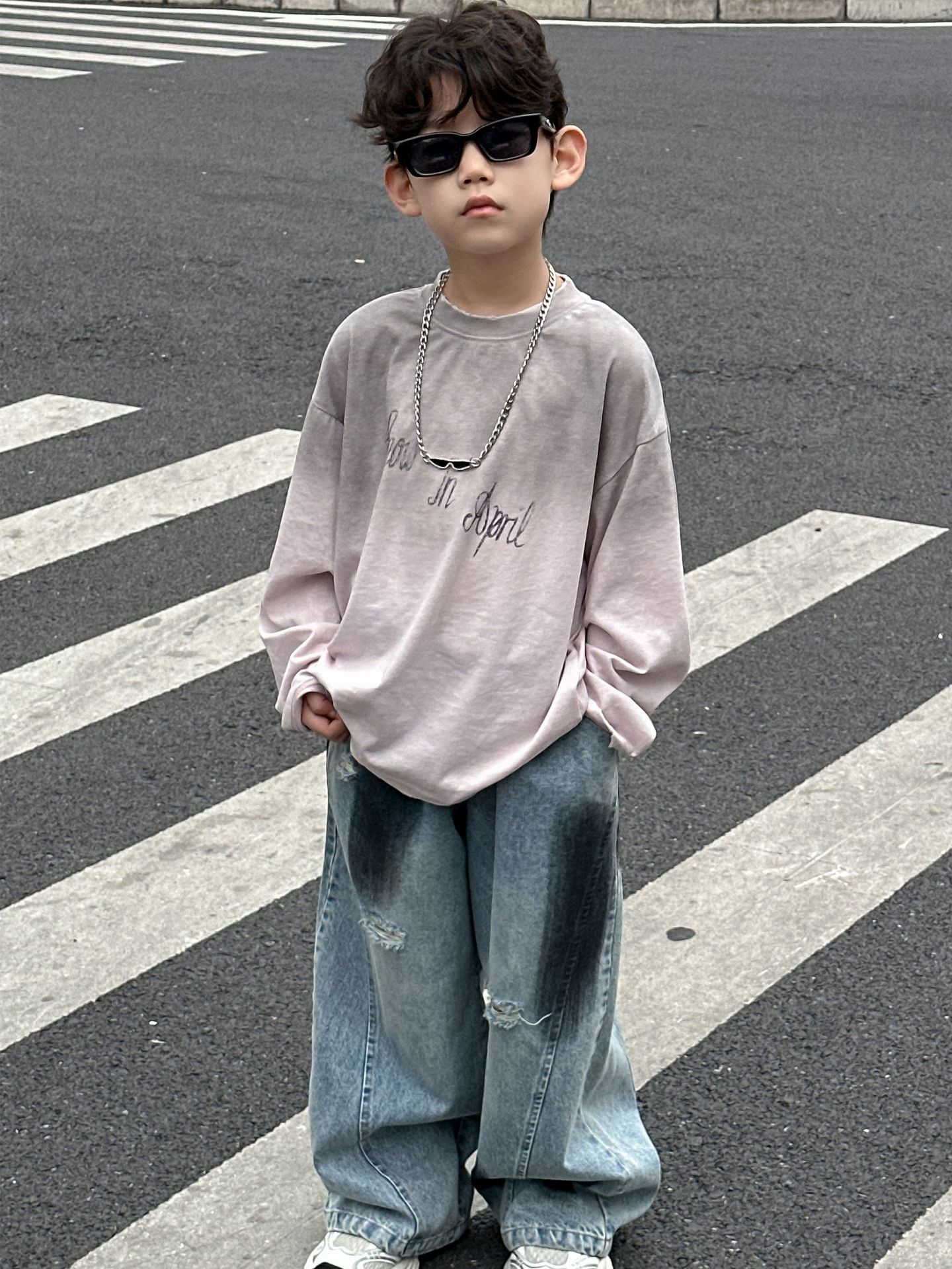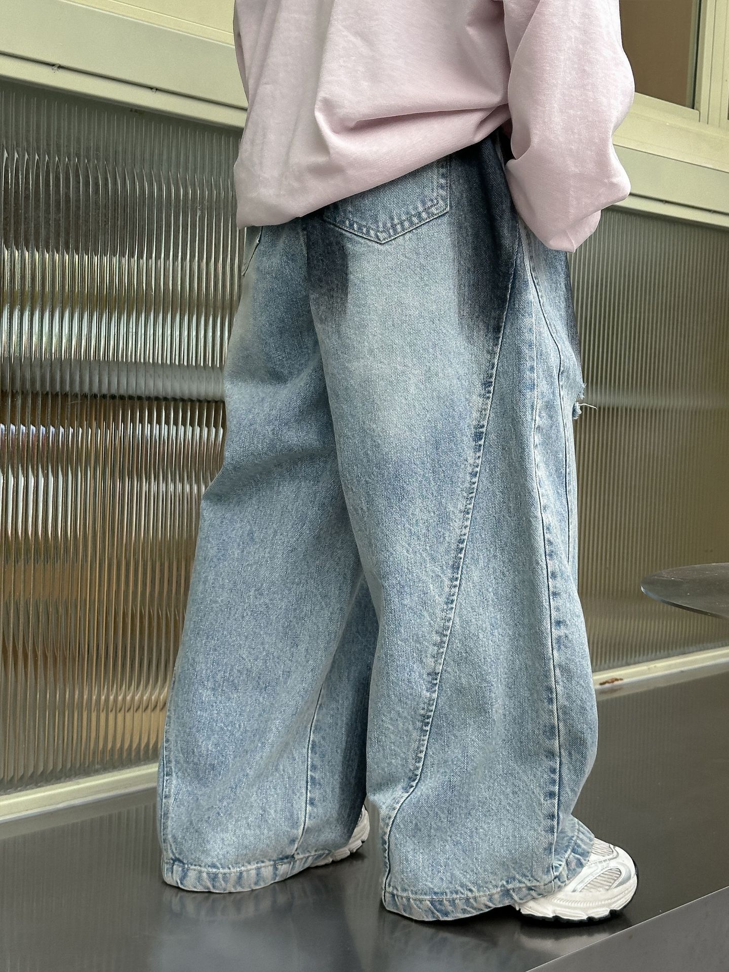 남아용 레트로 청바지 2025 봄 신상 아동용 한국 스타일 루즈핏 스트레이트 팬츠 유아 및 어린이용 패션 와이드 팬츠스토어 가기