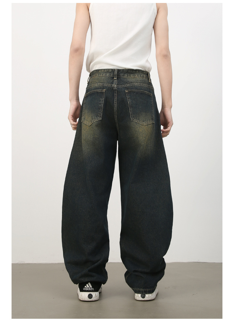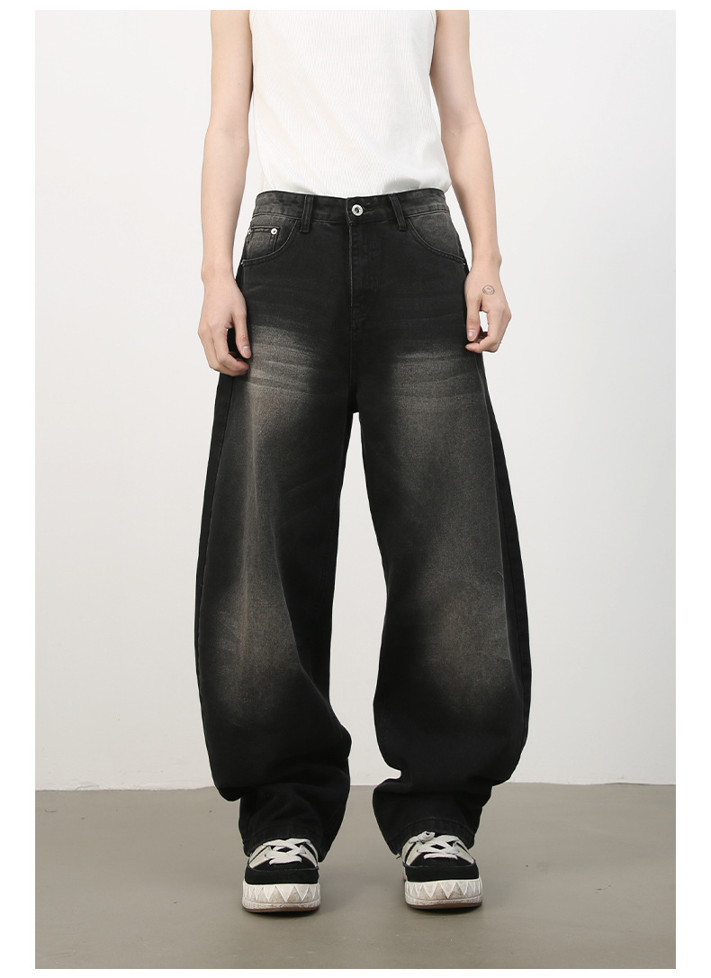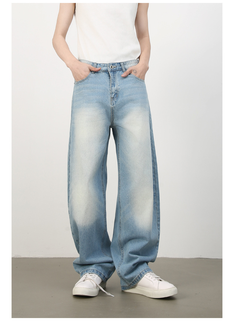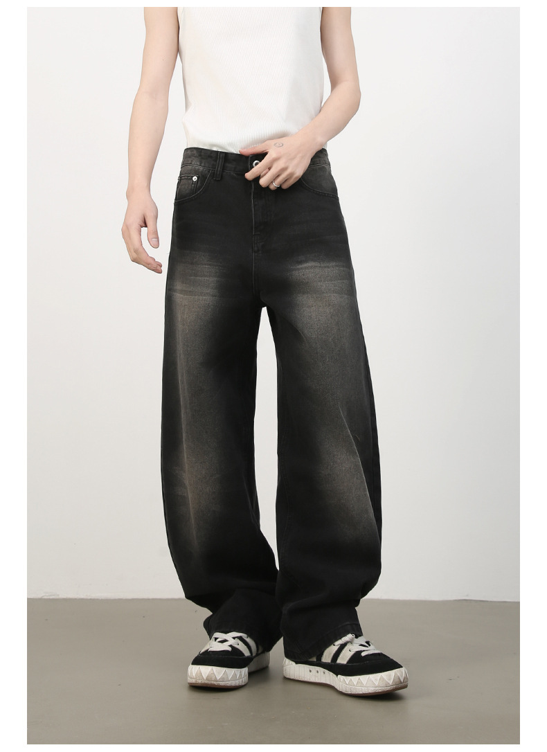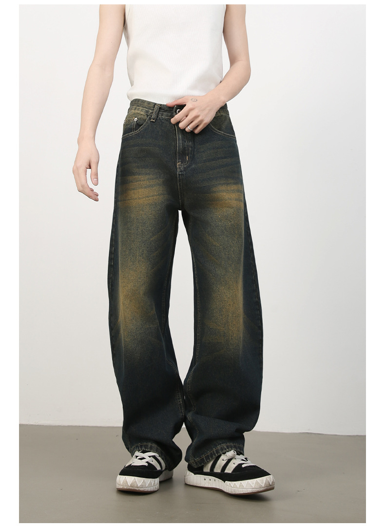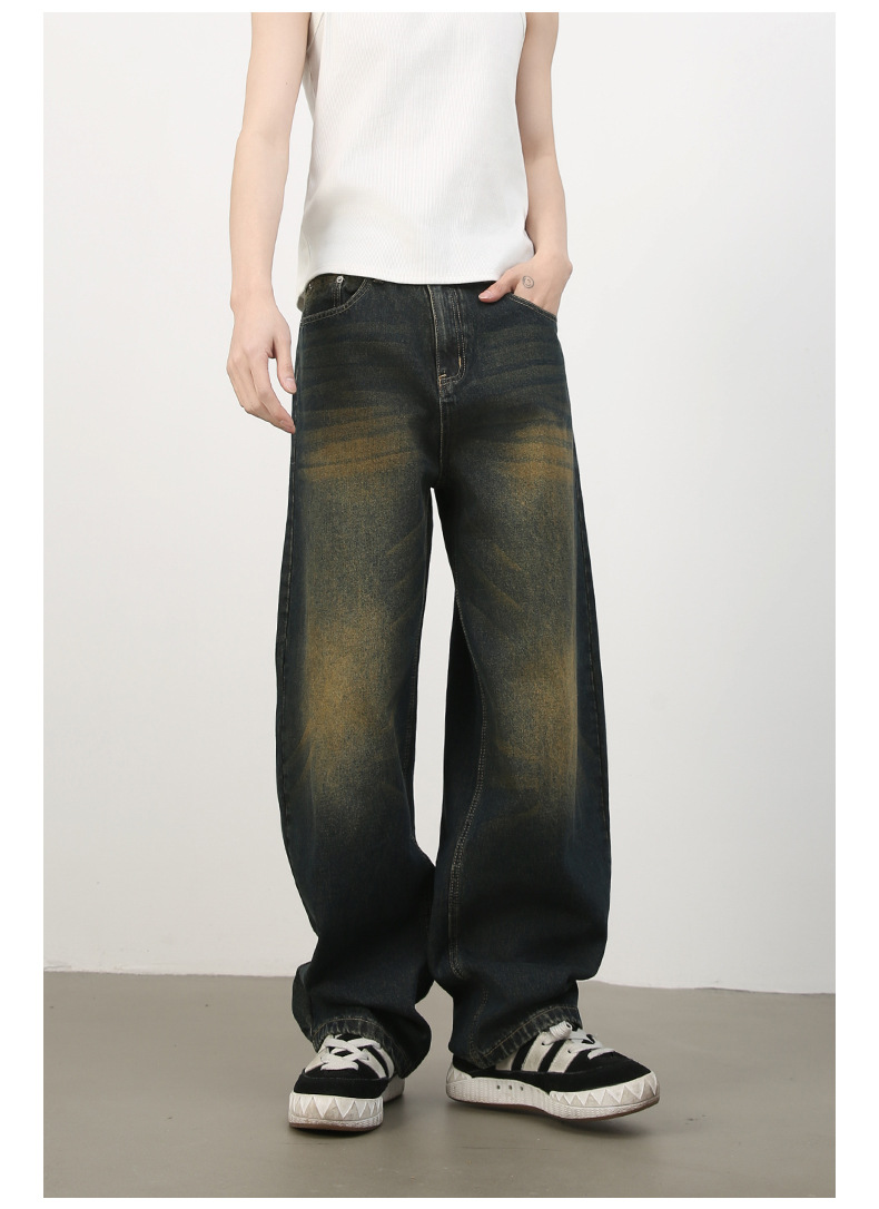 nirben 카우보이 | 남성용 아메리칸 레트로 스타일 시미터 팬츠, 틈새 디자인 센스, 와이드 레그, 루즈하고 활용도가 높은 데님 팬츠