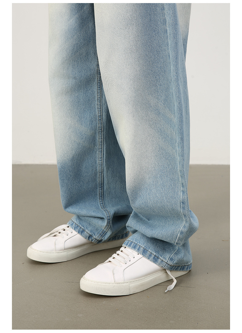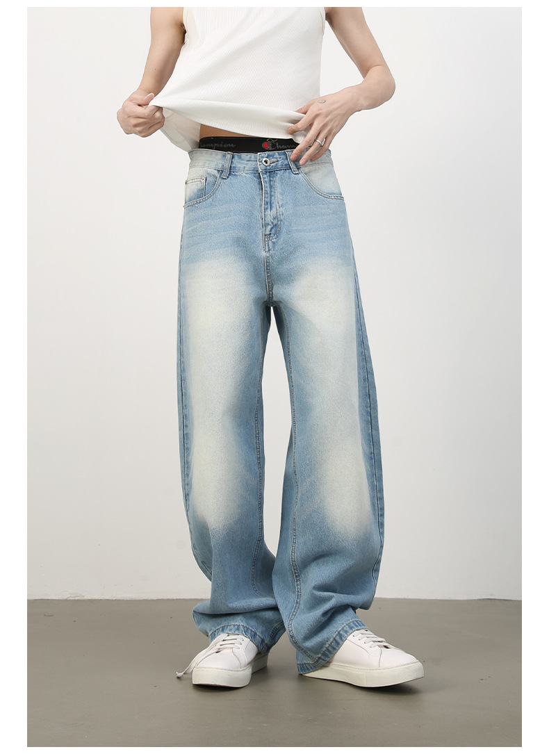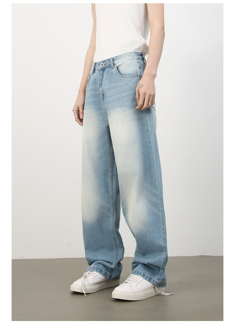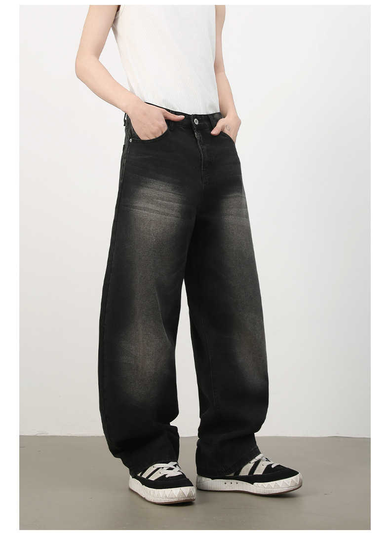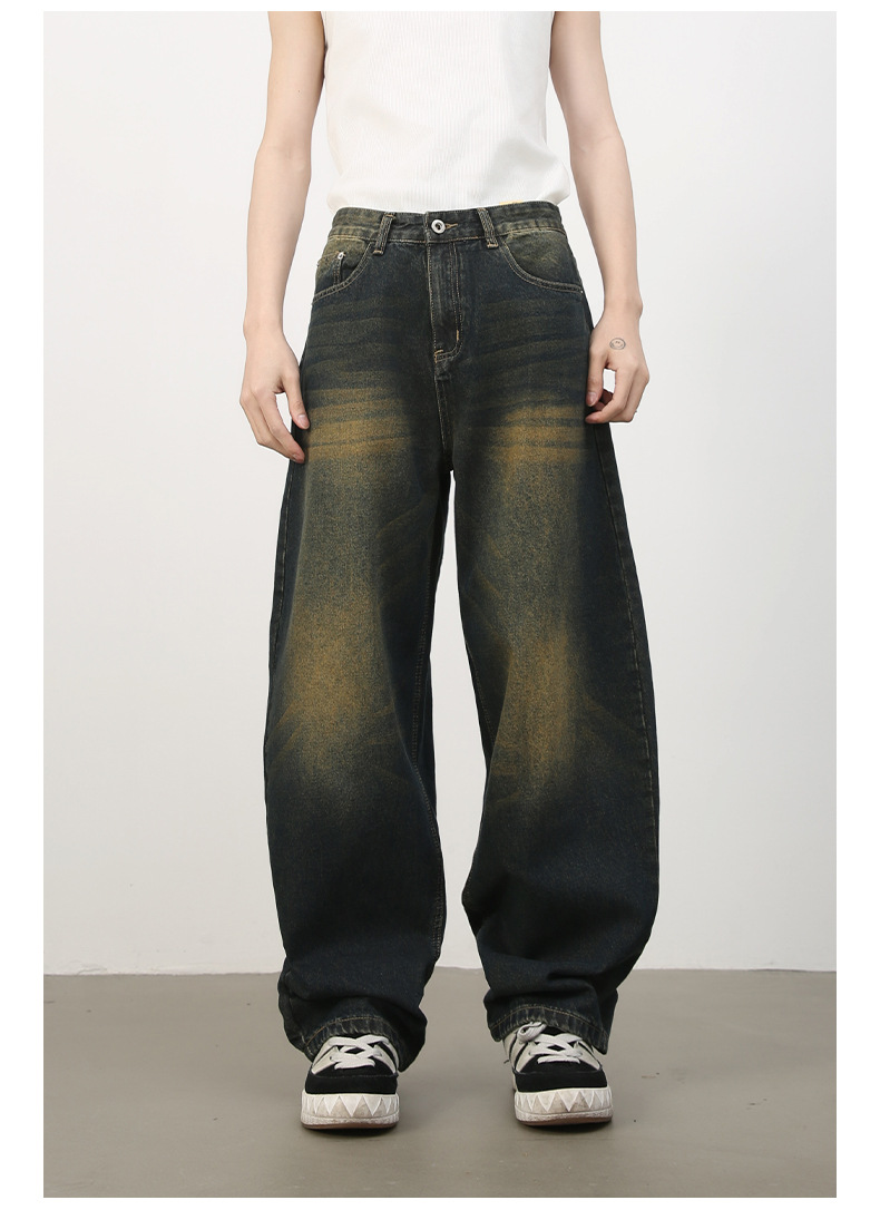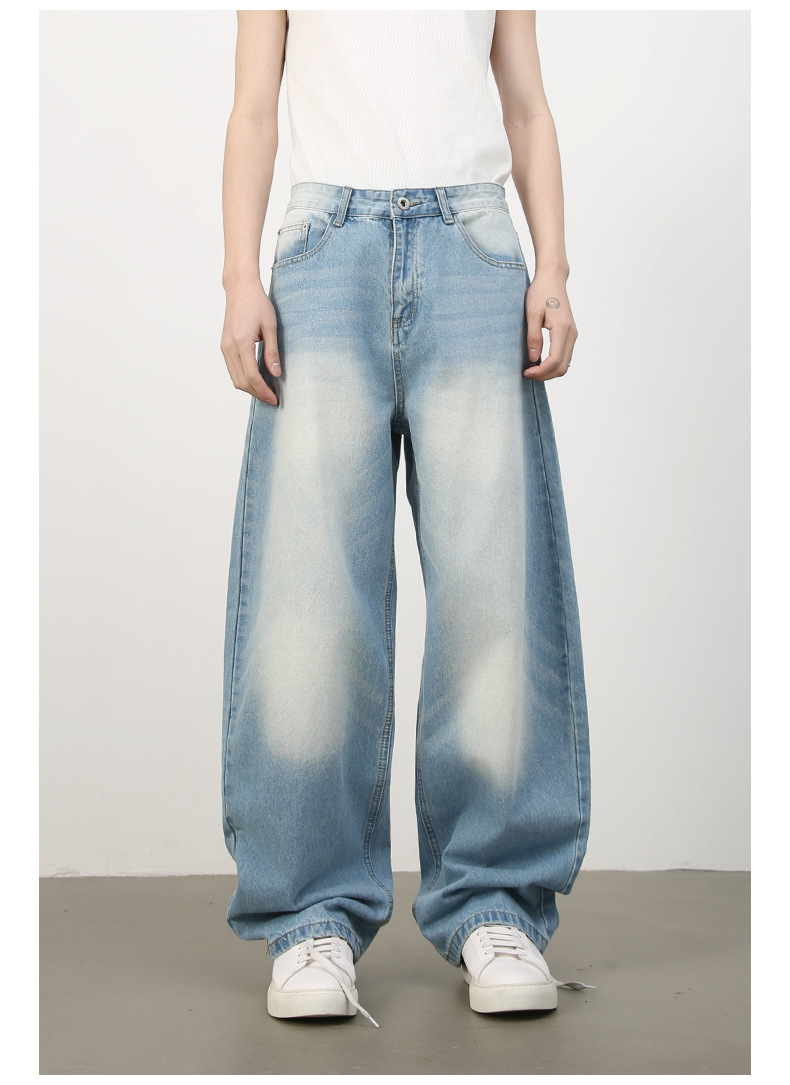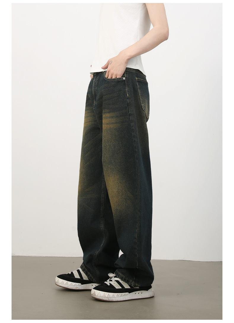 nirben 카우보이 | 남성용 아메리칸 레트로 스타일 시미터 팬츠, 틈새 디자인 센스, 와이드 레그, 루즈하고 활용도가 높은 데님 팬츠