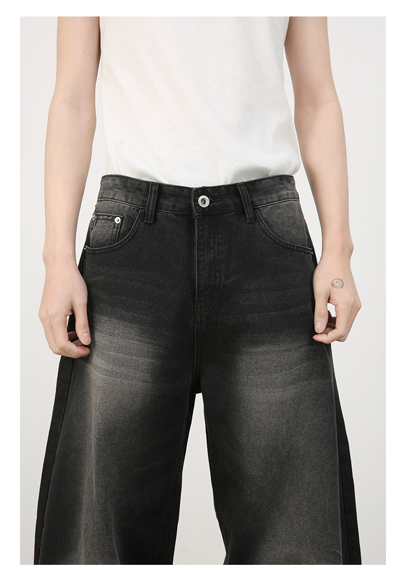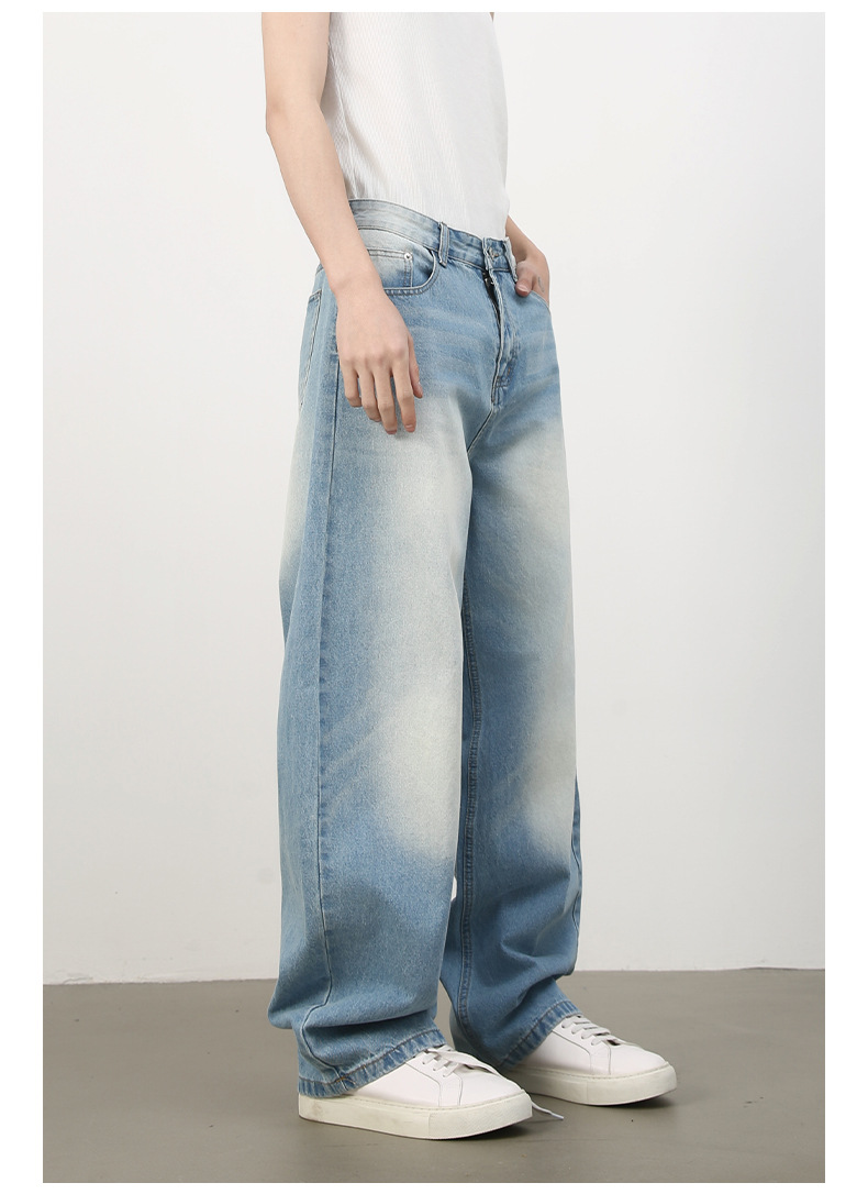 nirben 카우보이 | 남성용 아메리칸 레트로 스타일 시미터 팬츠, 틈새 디자인 센스, 와이드 레그, 루즈하고 활용도가 높은 데님 팬츠스토어 가기