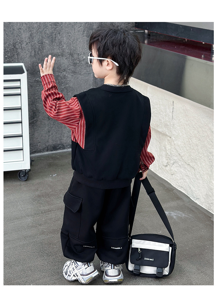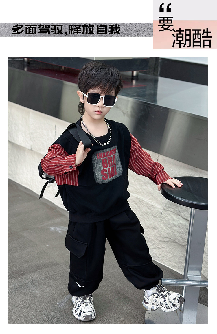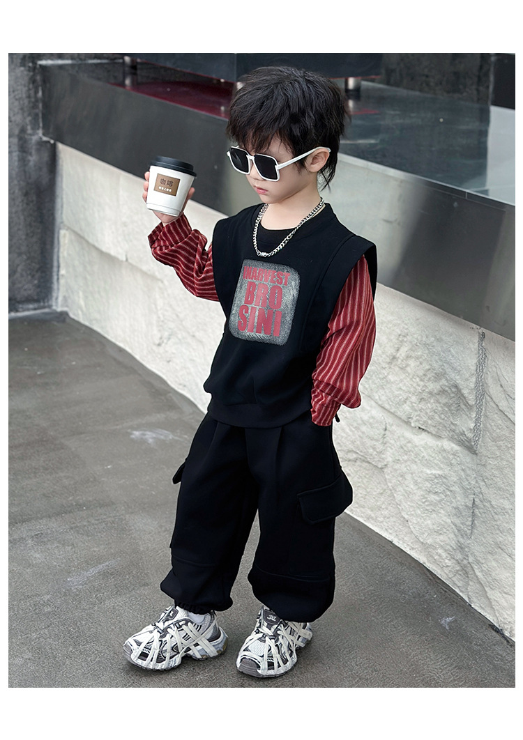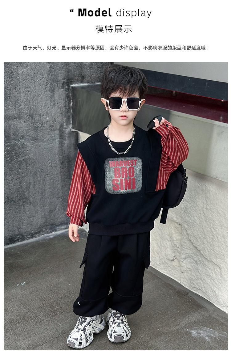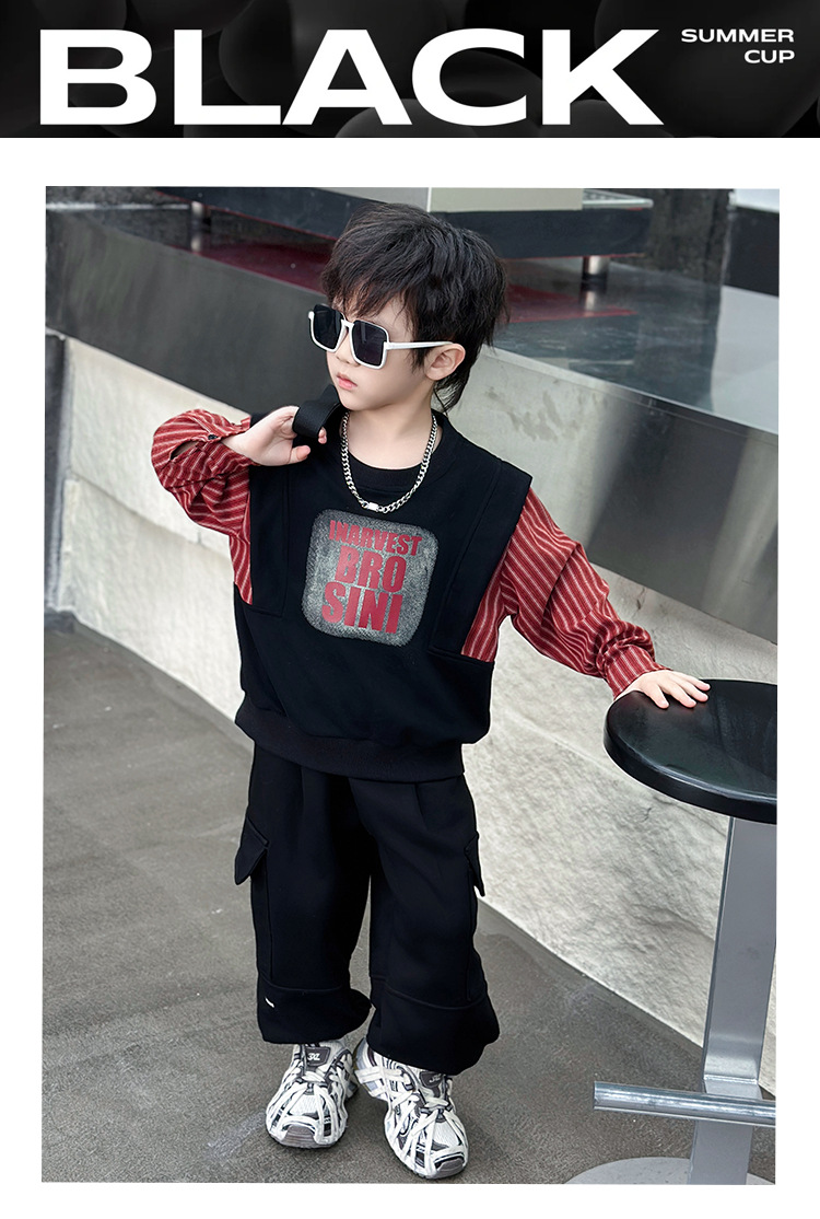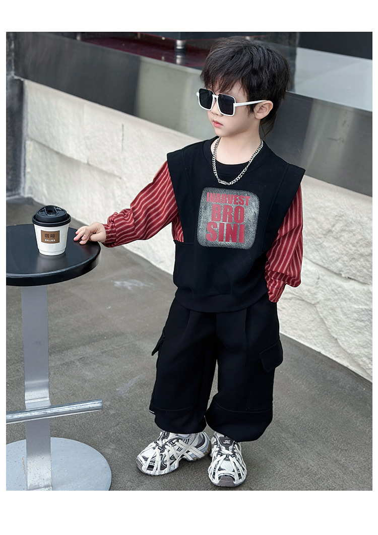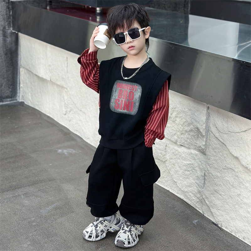 어린이 줄무늬 셔츠 바느질 세트 2025 봄과 가을 서양식 남자 아기의 인터넷 연예인 유행 투피스 캐주얼 트렌디스토어 가기