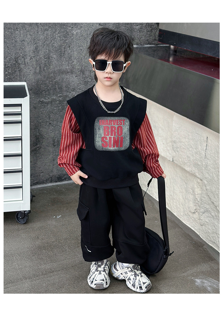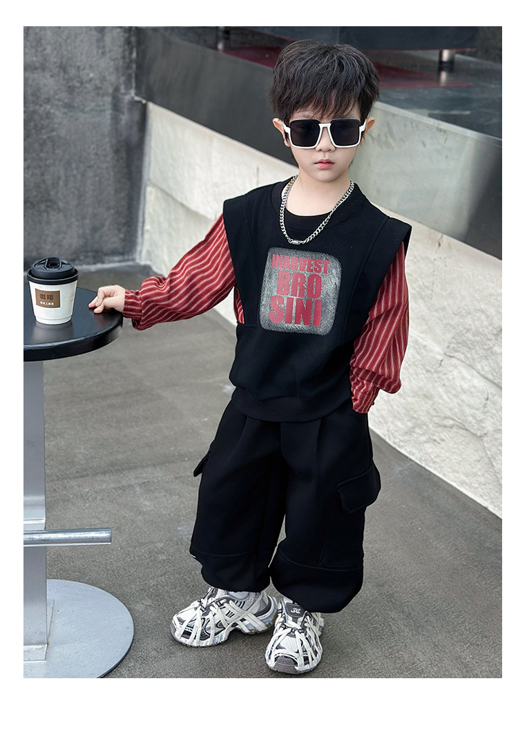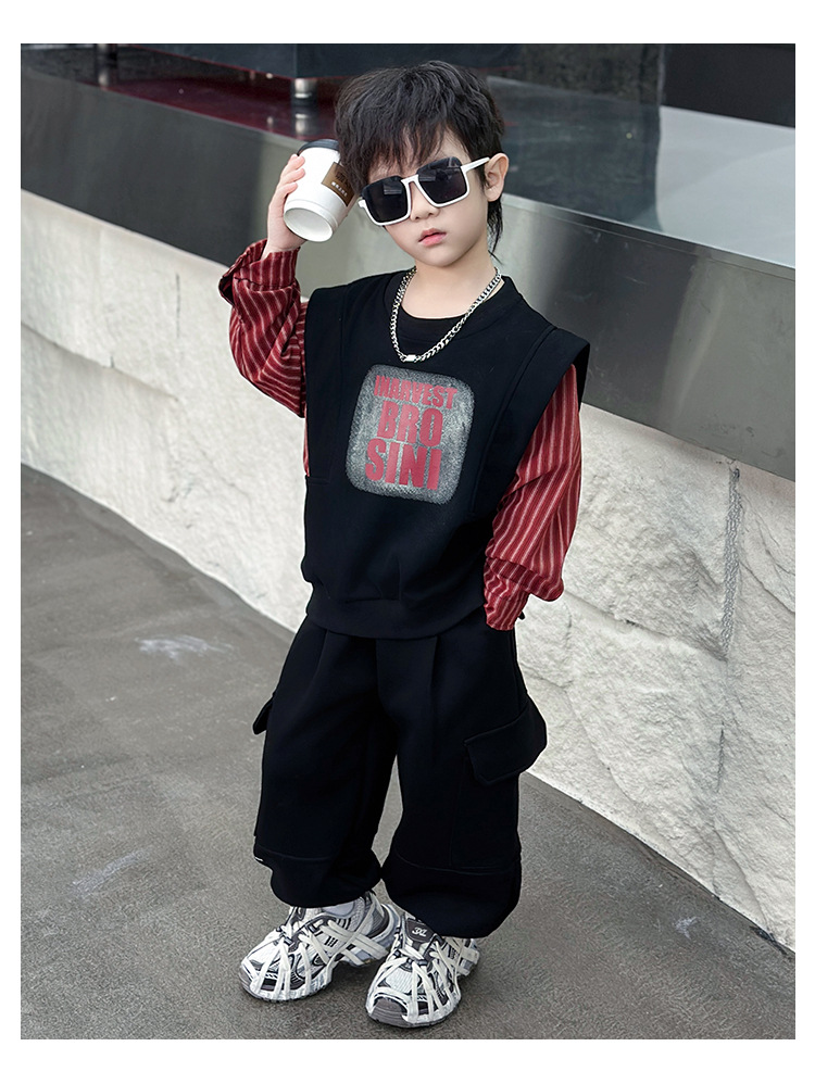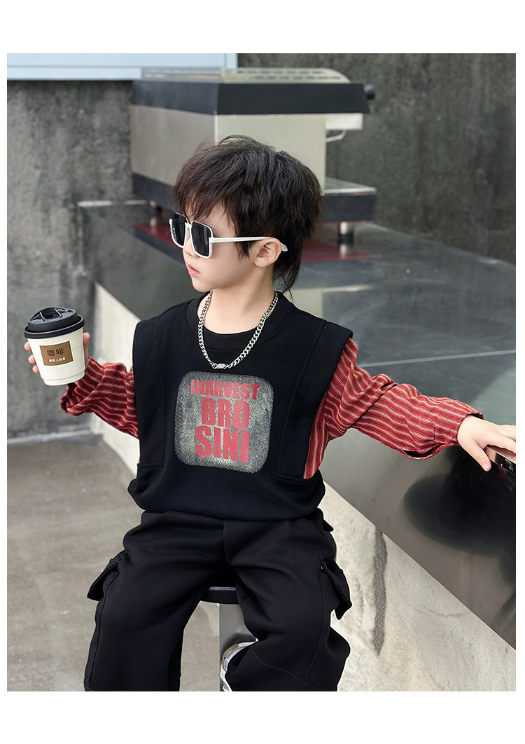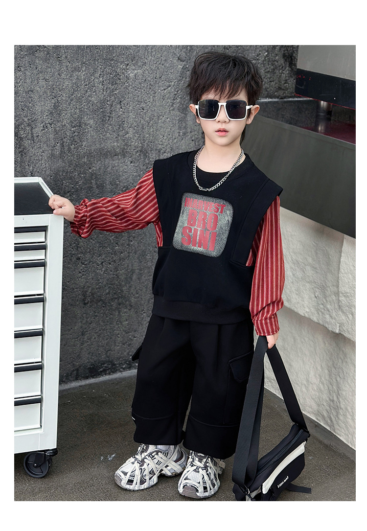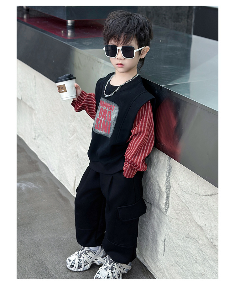 어린이 줄무늬 셔츠 바느질 세트 2025 봄과 가을 서양식 남자 아기의 인터넷 연예인 유행 투피스 캐주얼 트렌디스토어 가기