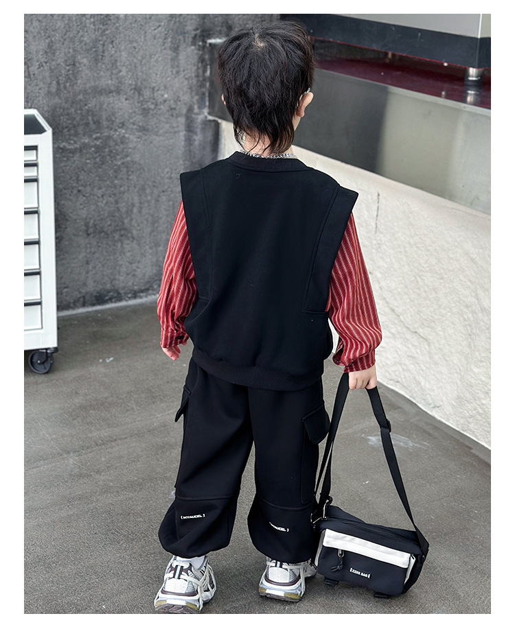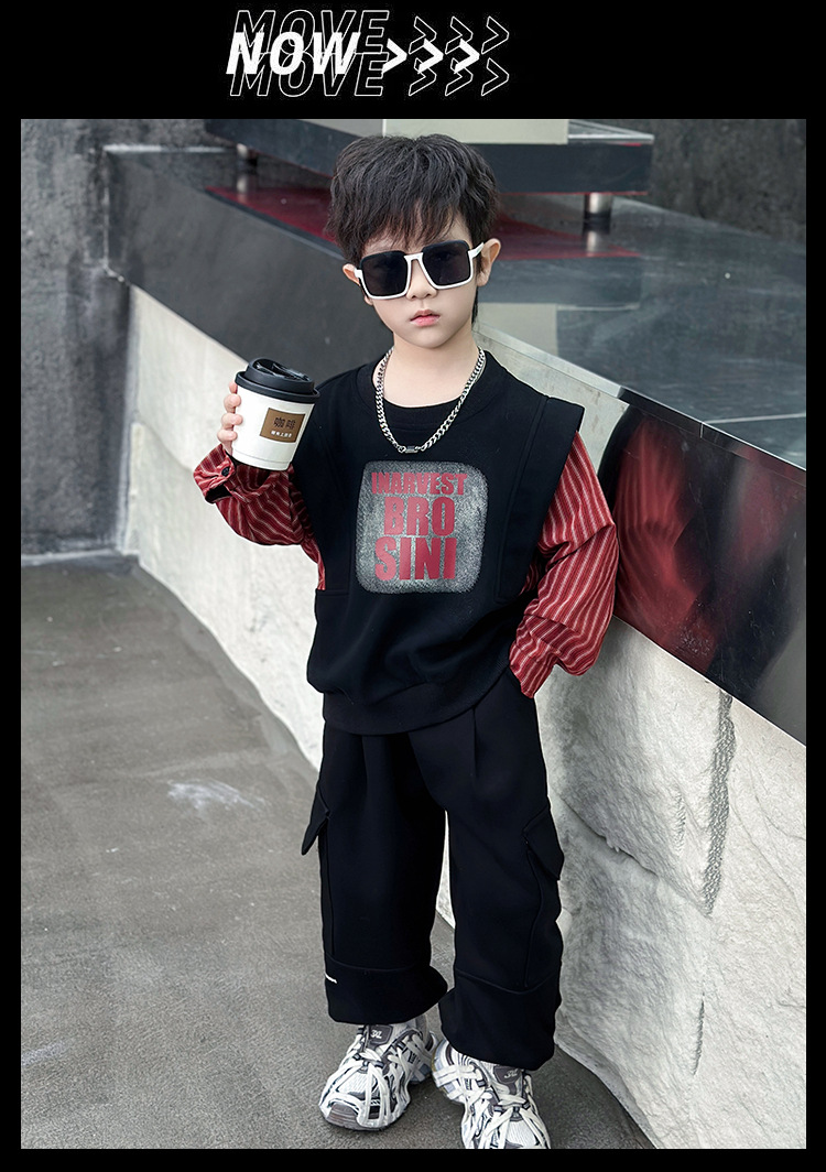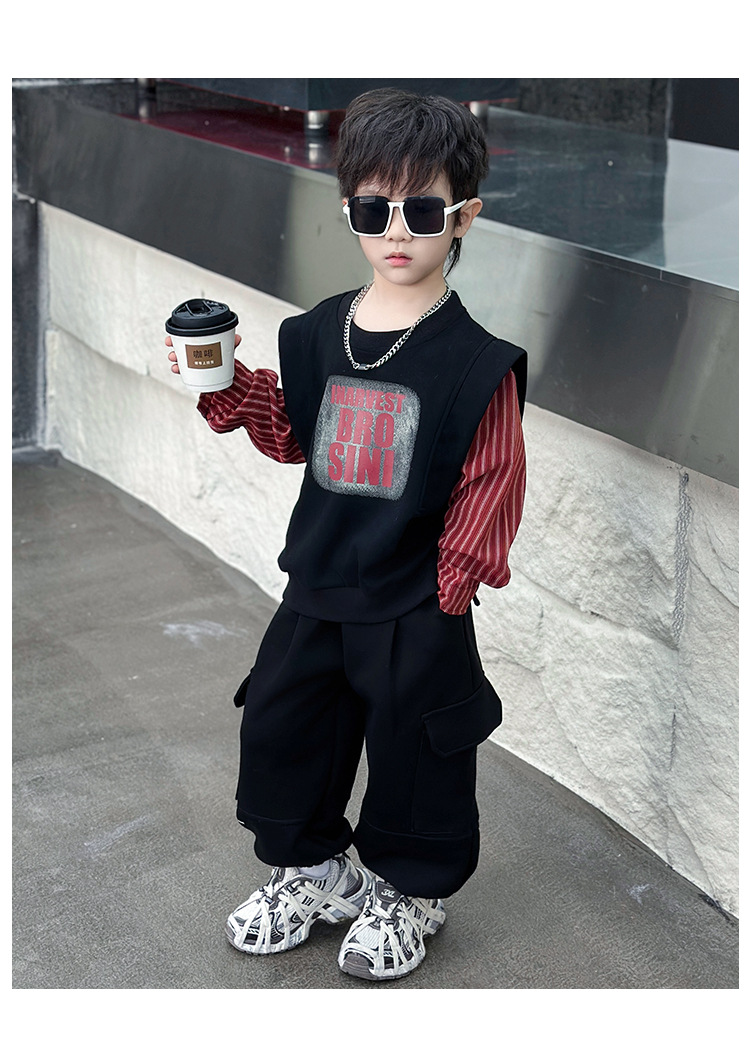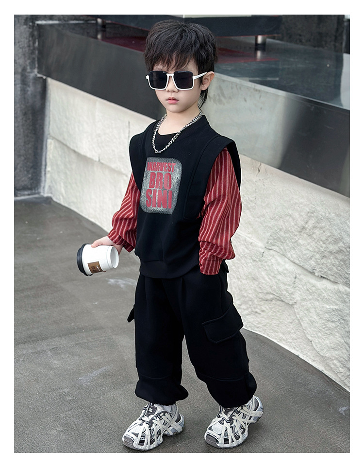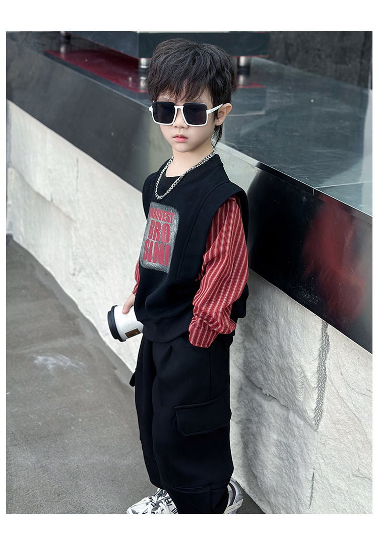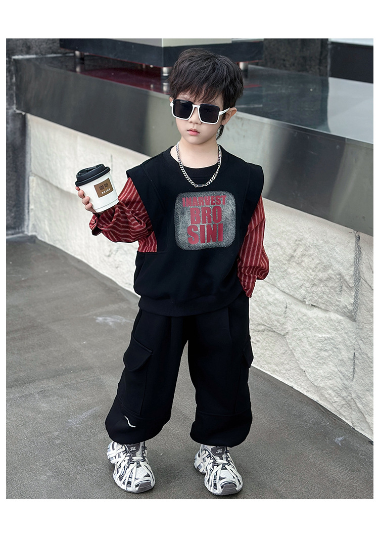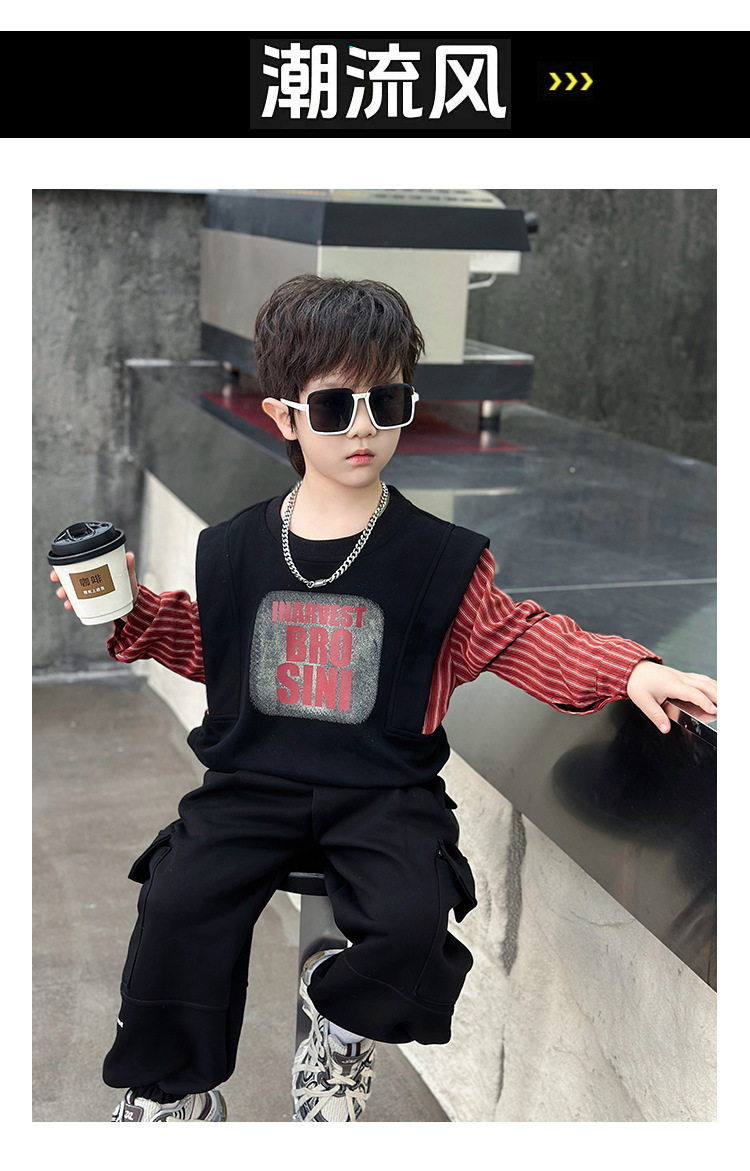 어린이 줄무늬 셔츠 바느질 세트 2025 봄과 가을 서양식 남자 아기의 인터넷 연예인 유행 투피스 캐주얼 트렌디스토어 가기