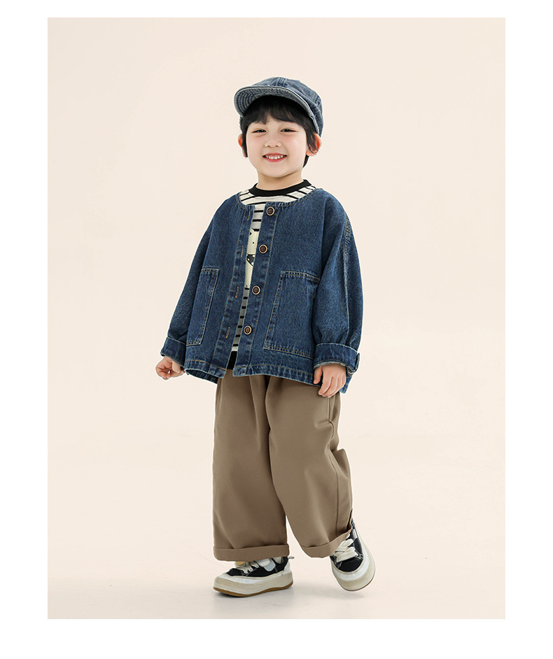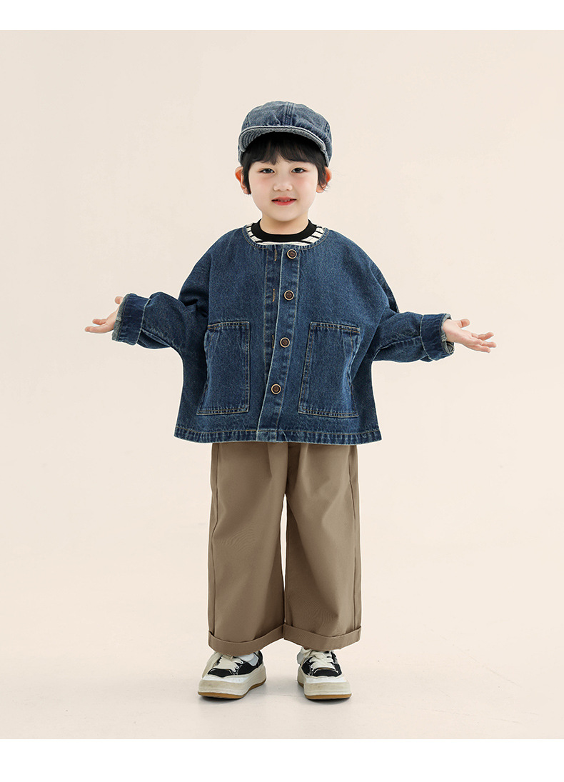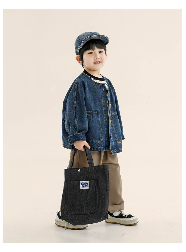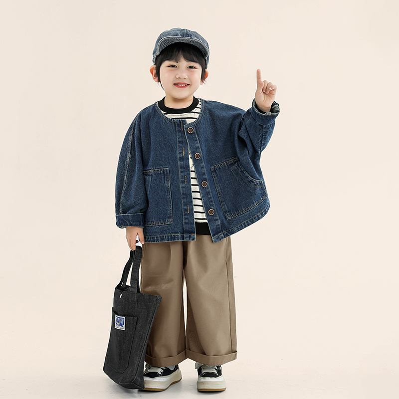 창궈 의류 남아 데님 재킷 봄옷 아동 한국 스타일 박쥐소매 라운드넥 상의 중소 아동용 봄가을 재킷