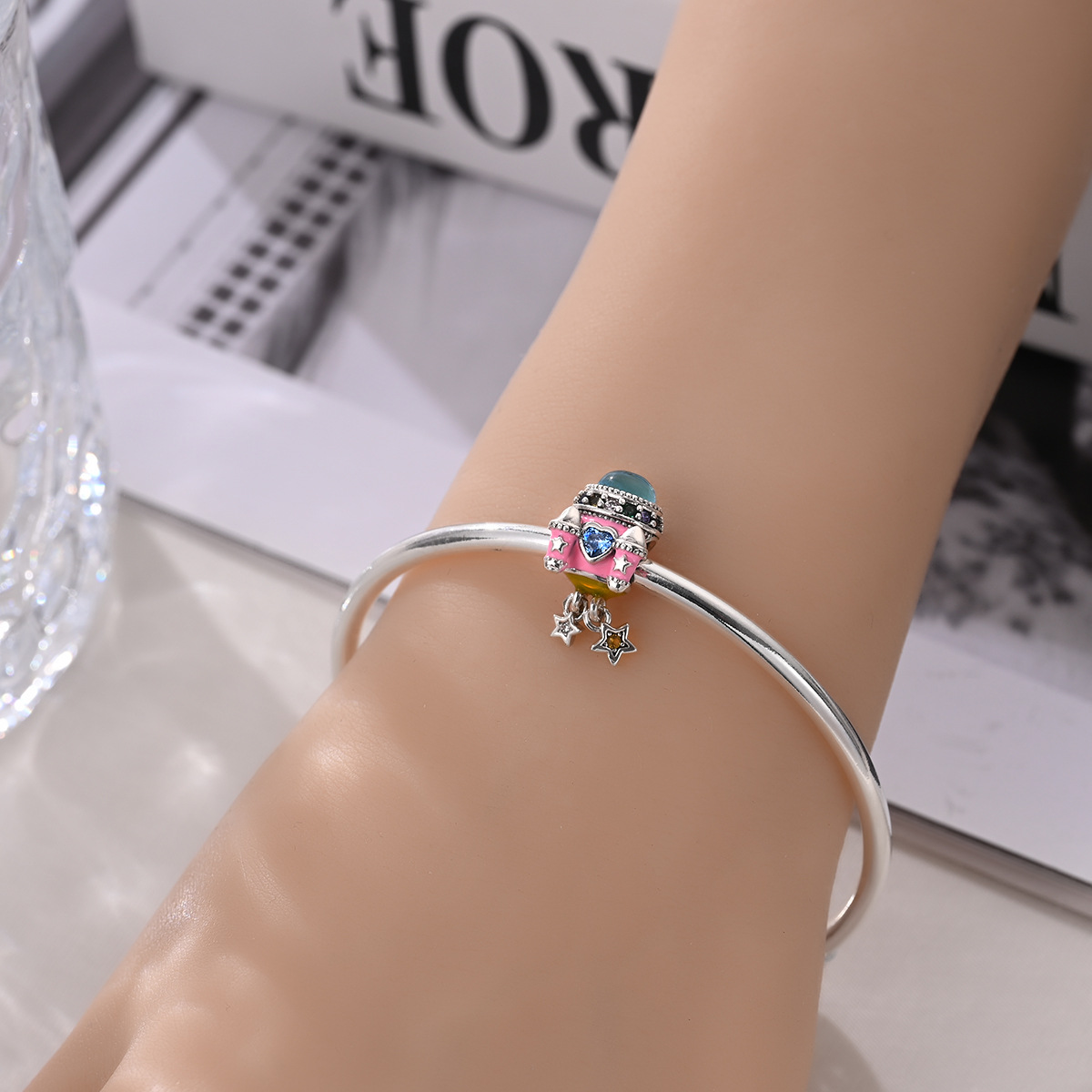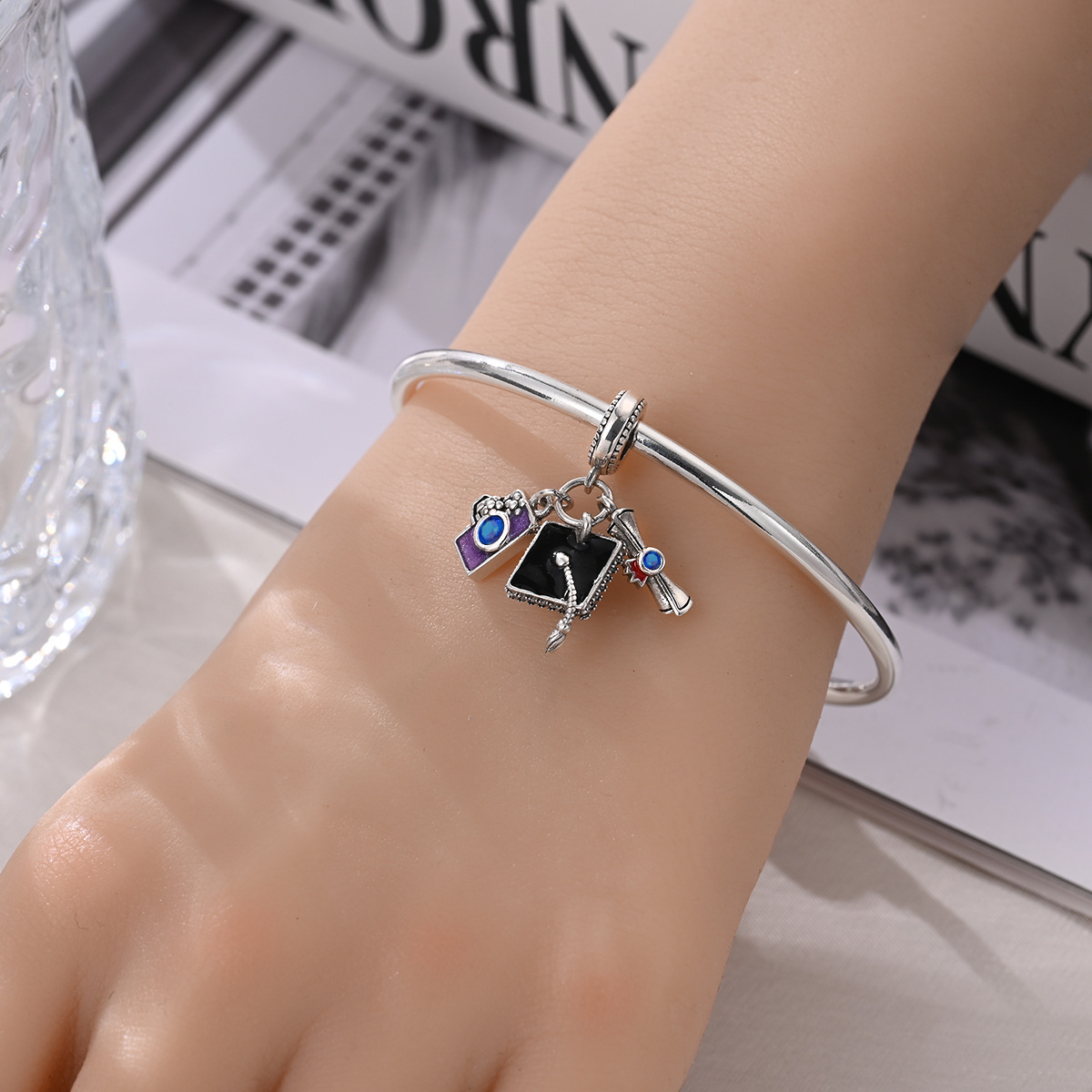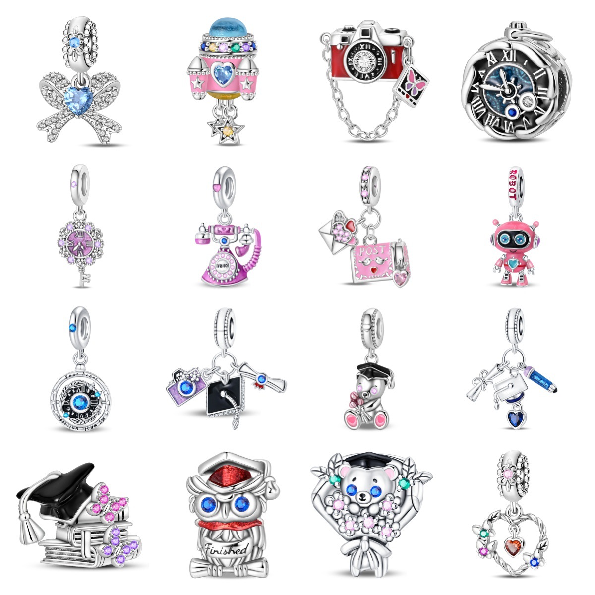 DIY 보석 액세서리 팔찌 여행 카메라 사서함 졸업 하트 모양의 펜던트 구슬 구리 실버 도금 된 국경 폭발스토어 가기