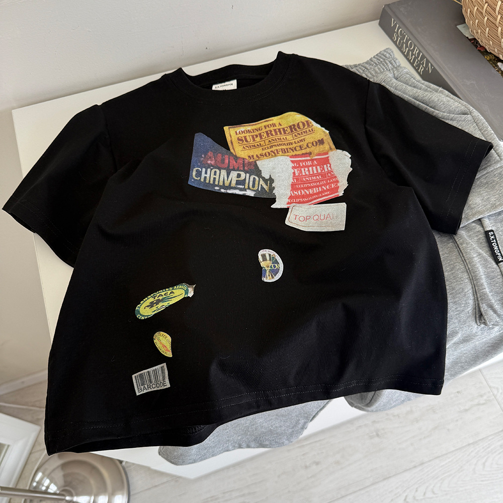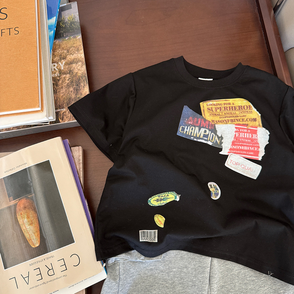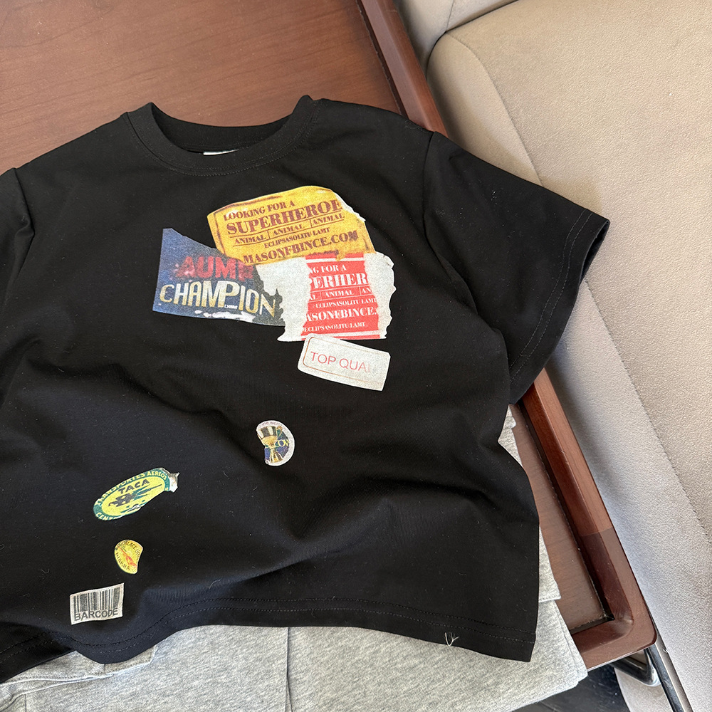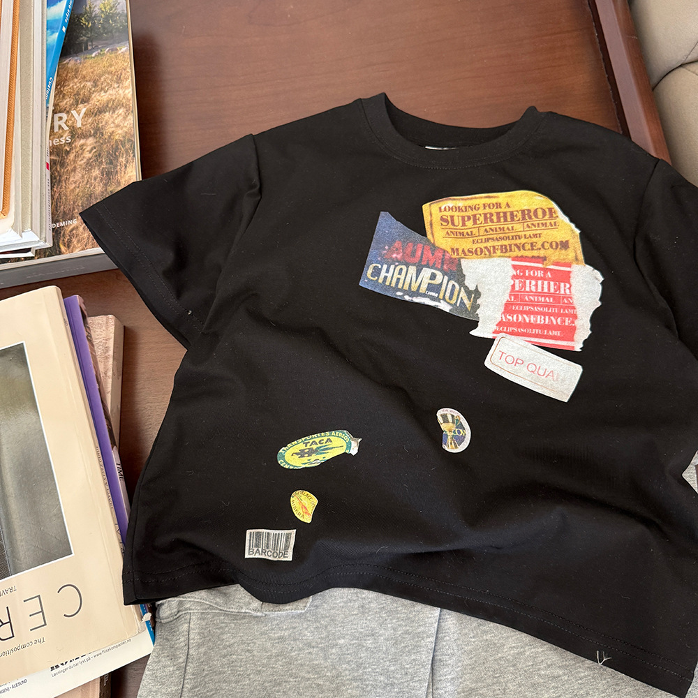 2025 봄과 여름 새로운 어린이 티셔츠 소년 한국 느슨한 반소매베이스 셔츠 여름 자켓 어린이 티셔츠스토어 가기