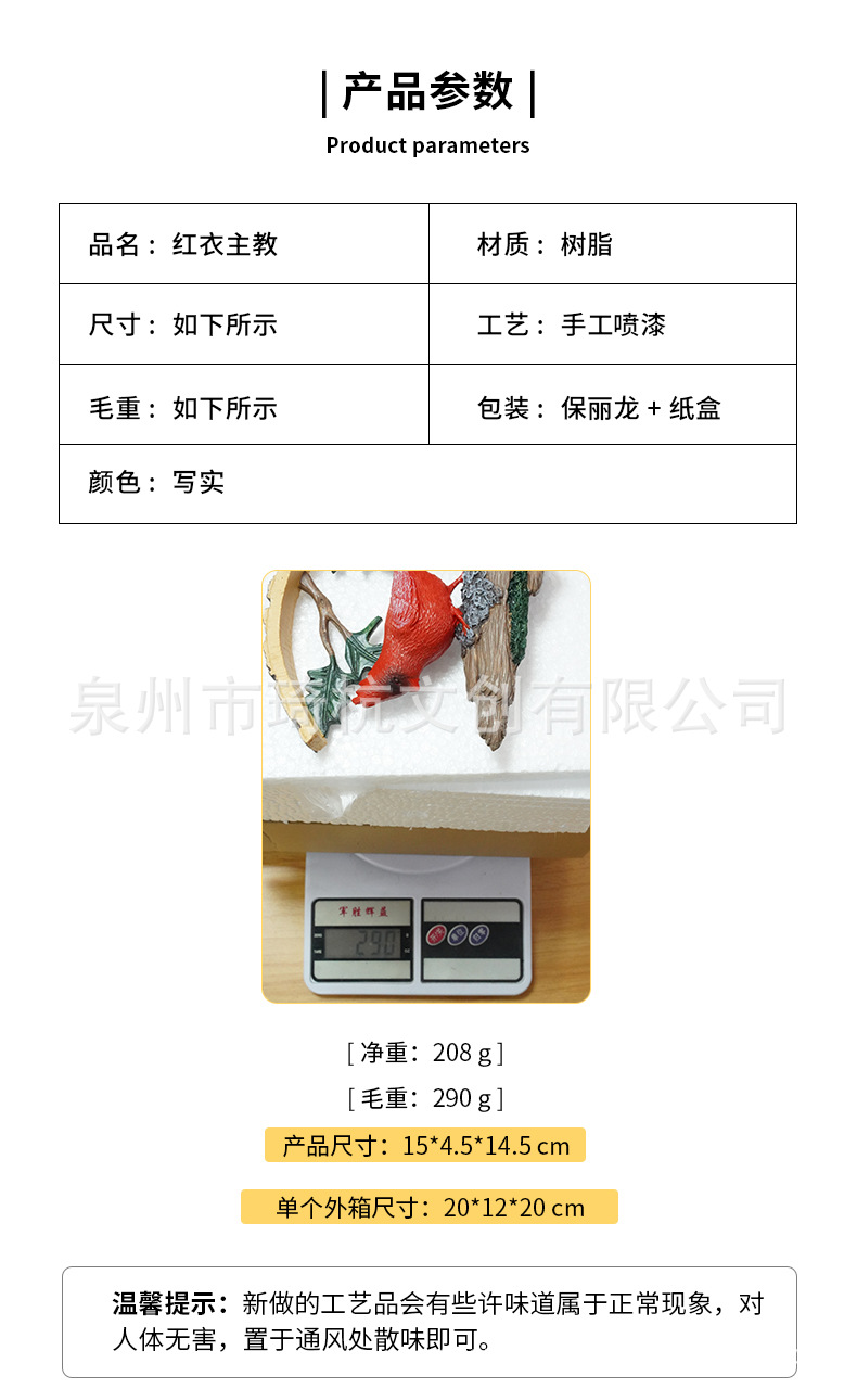 재고 새로운 추기경 조각 수제 추기경 수지 새 트레드 지점 장식품스토어 가기