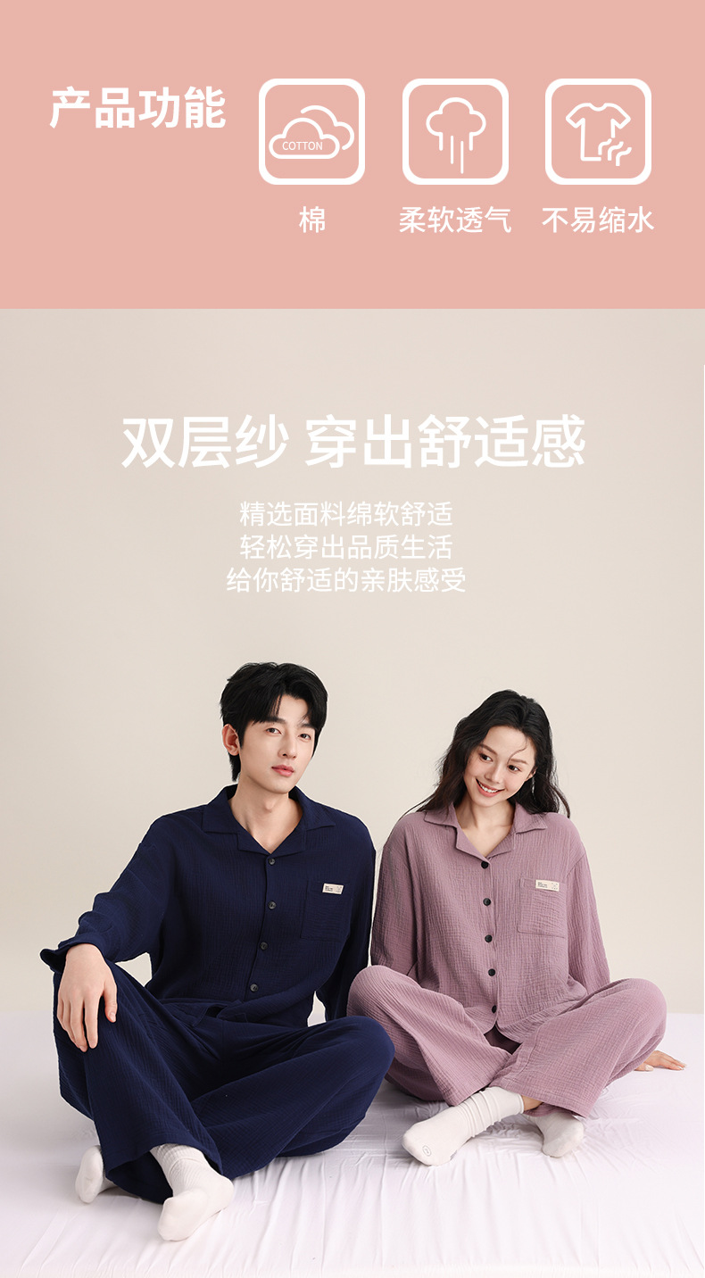 봄과 가을 코튼 커플 잠옷 부드럽고 편안한 간단한 캐주얼 옷깃 카디건 남성 홈 옷 긴 소매 세트스토어 가기