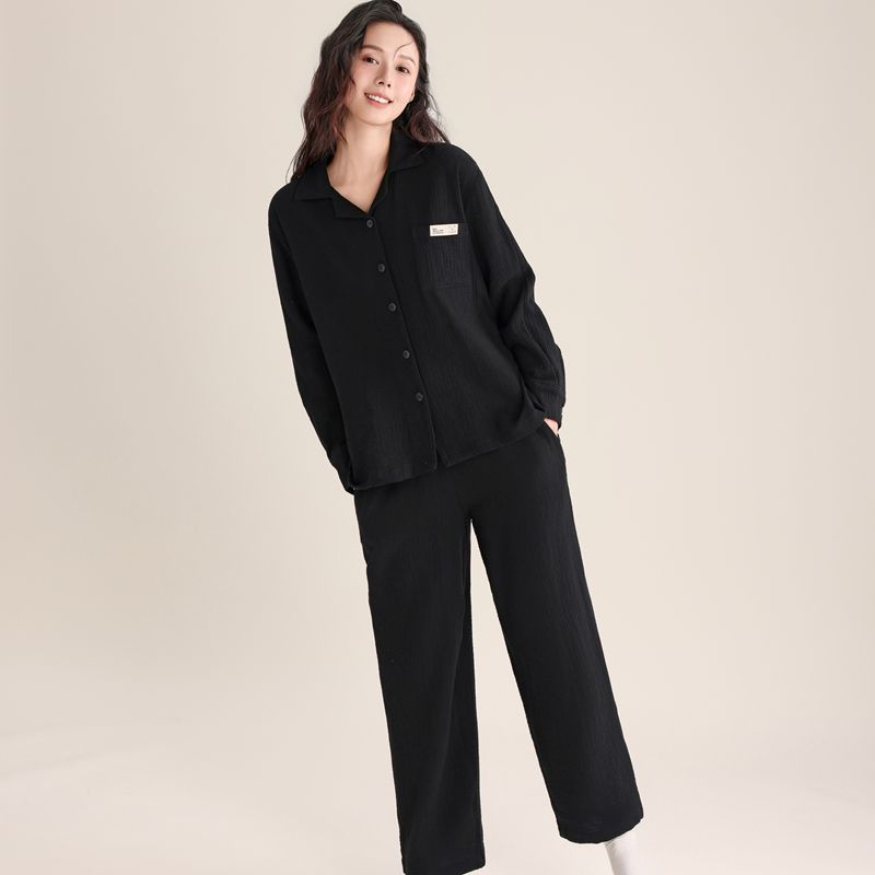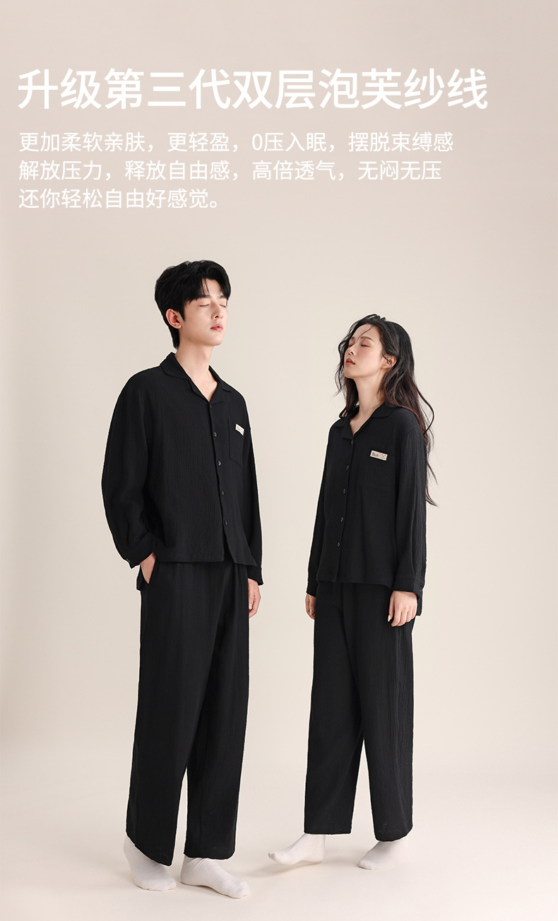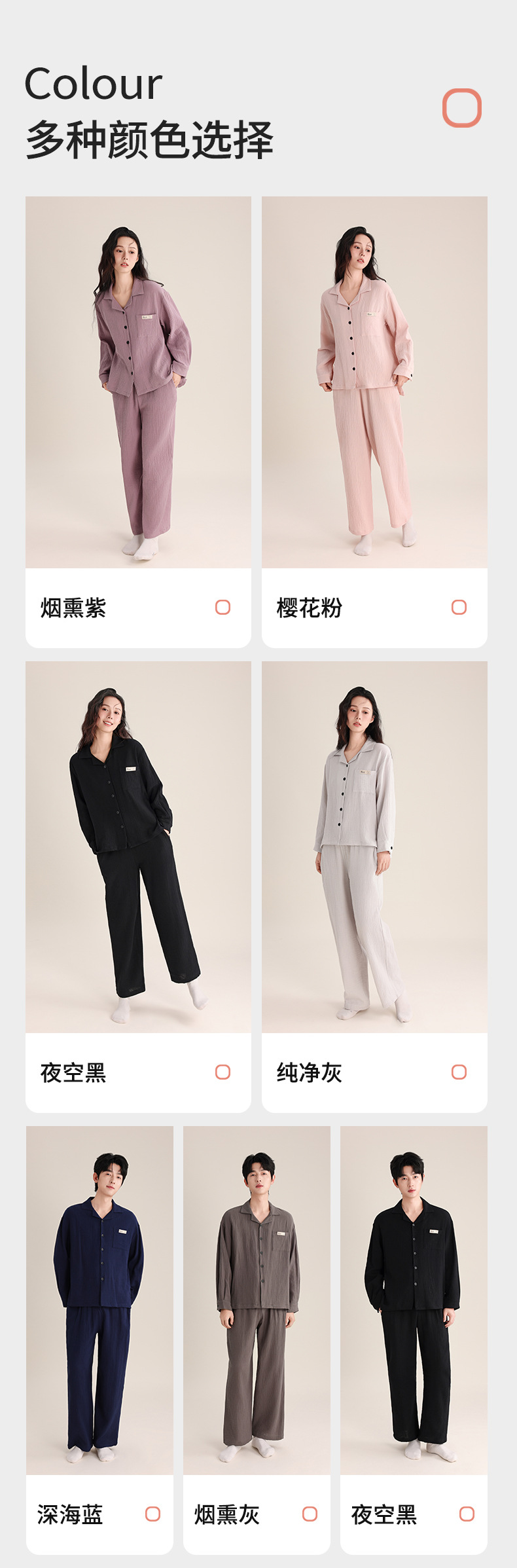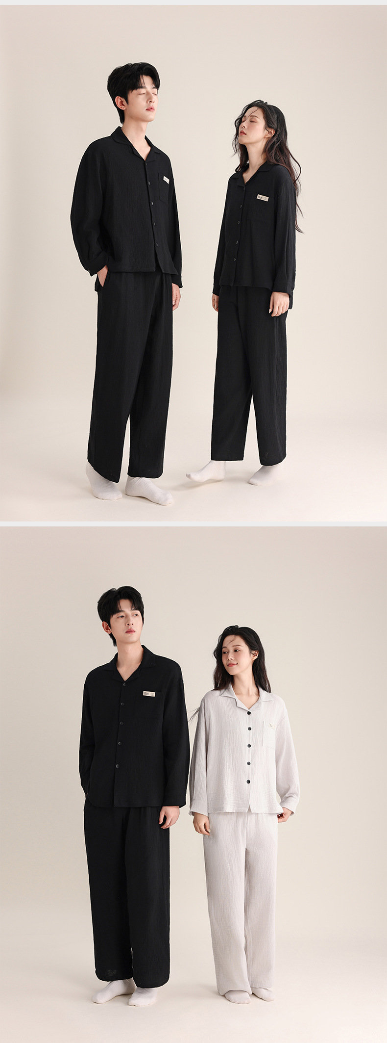 봄과 가을 코튼 커플 잠옷 부드럽고 편안한 간단한 캐주얼 옷깃 카디건 남성 홈 옷 긴 소매 세트