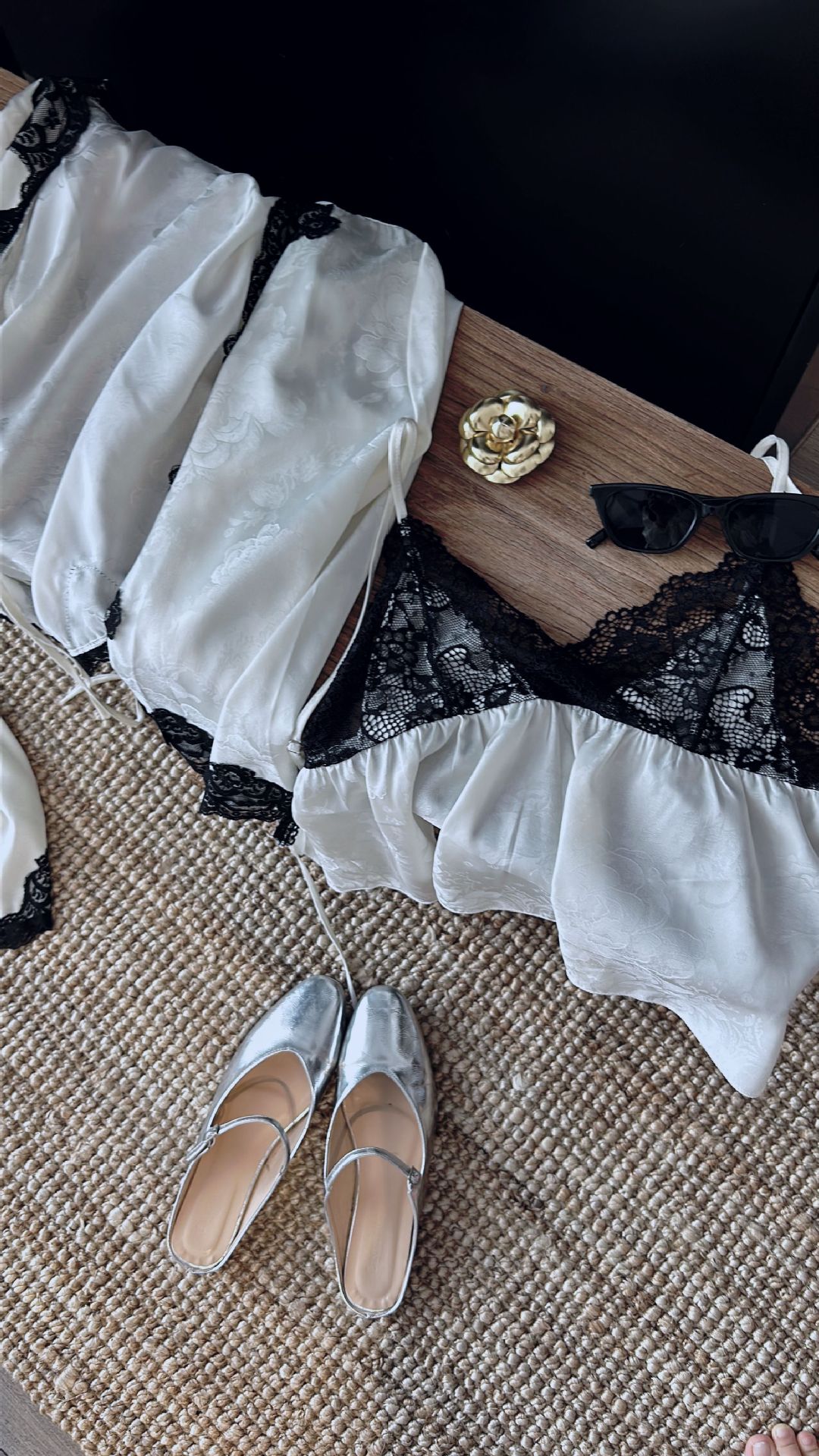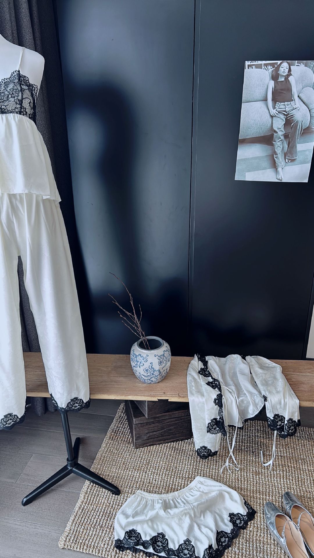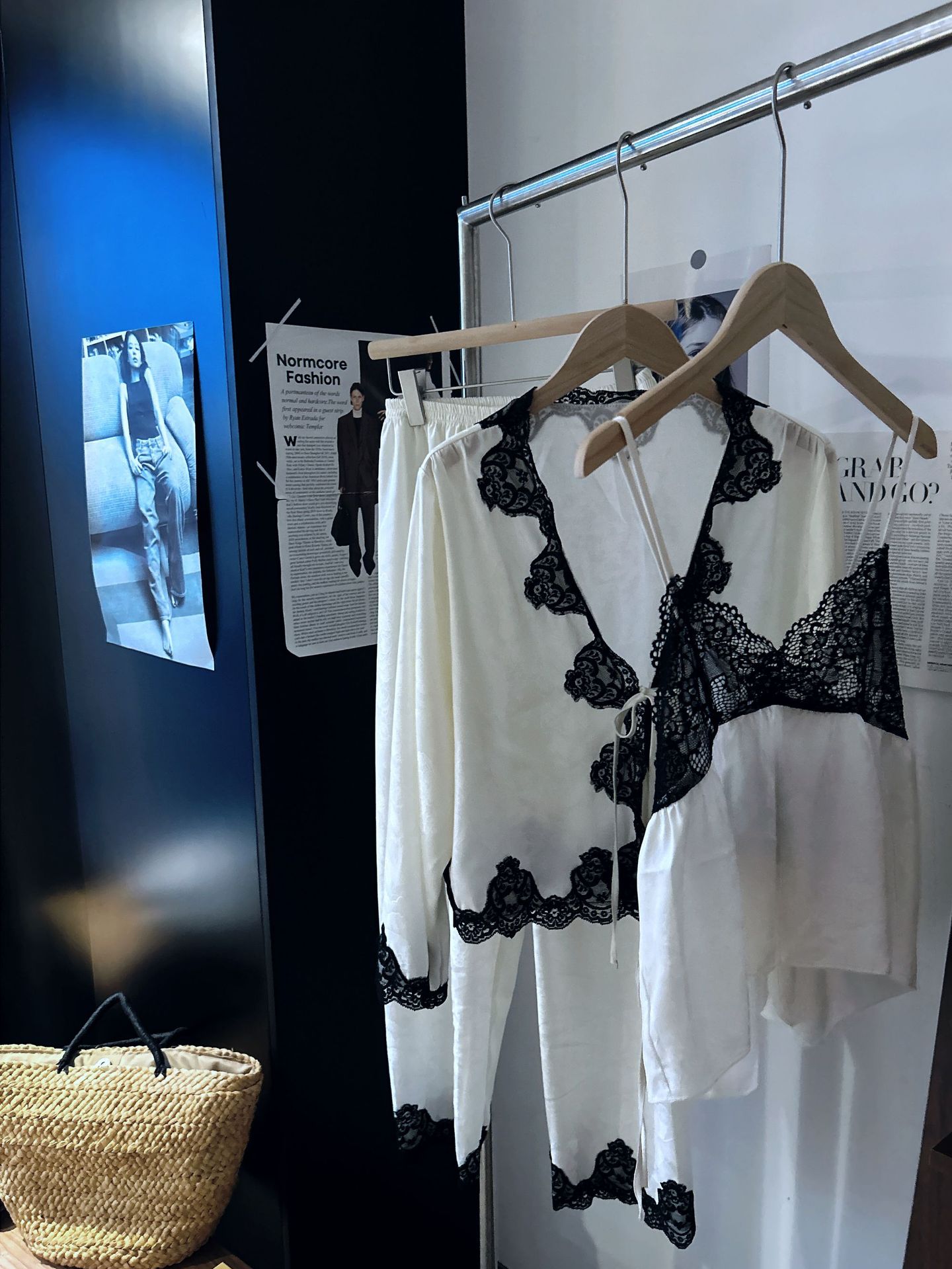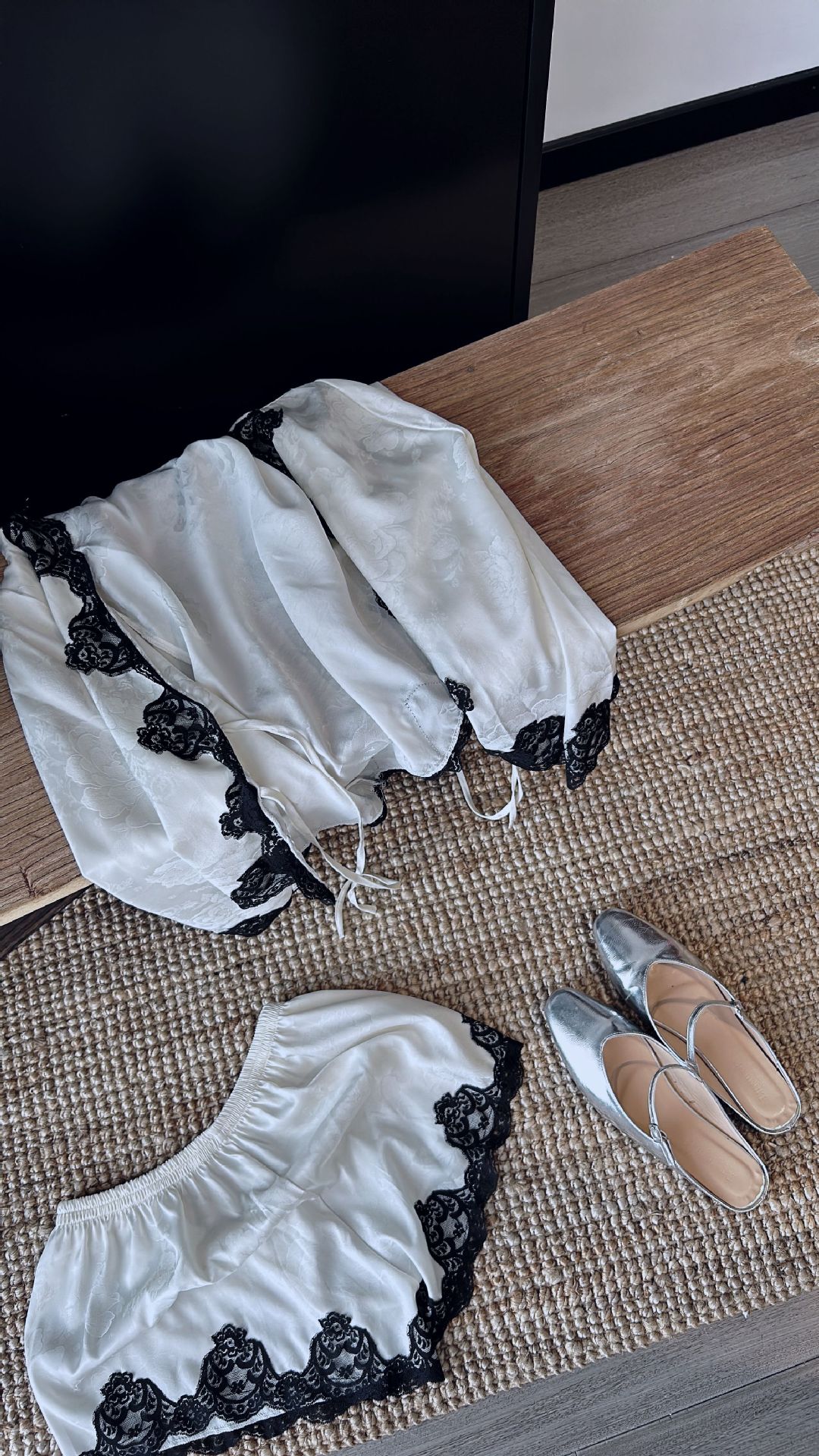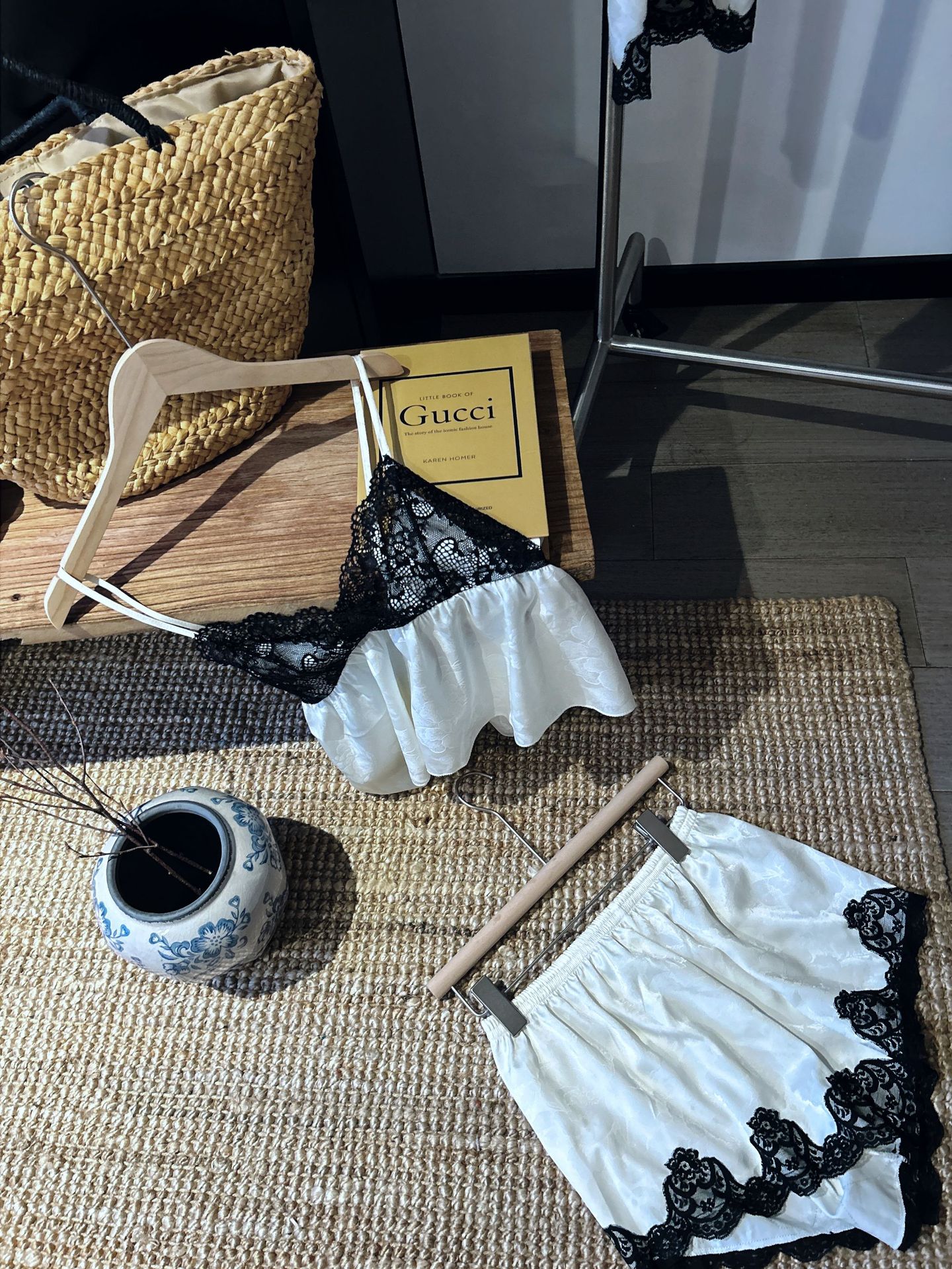 프랑스 스타일 섹시한 잠옷 여성 여름 2025 새로운 스타일 홈 의류 세트 얇은 작은 가슴 순수한 욕망 파자마 4 종 세트스토어 가기