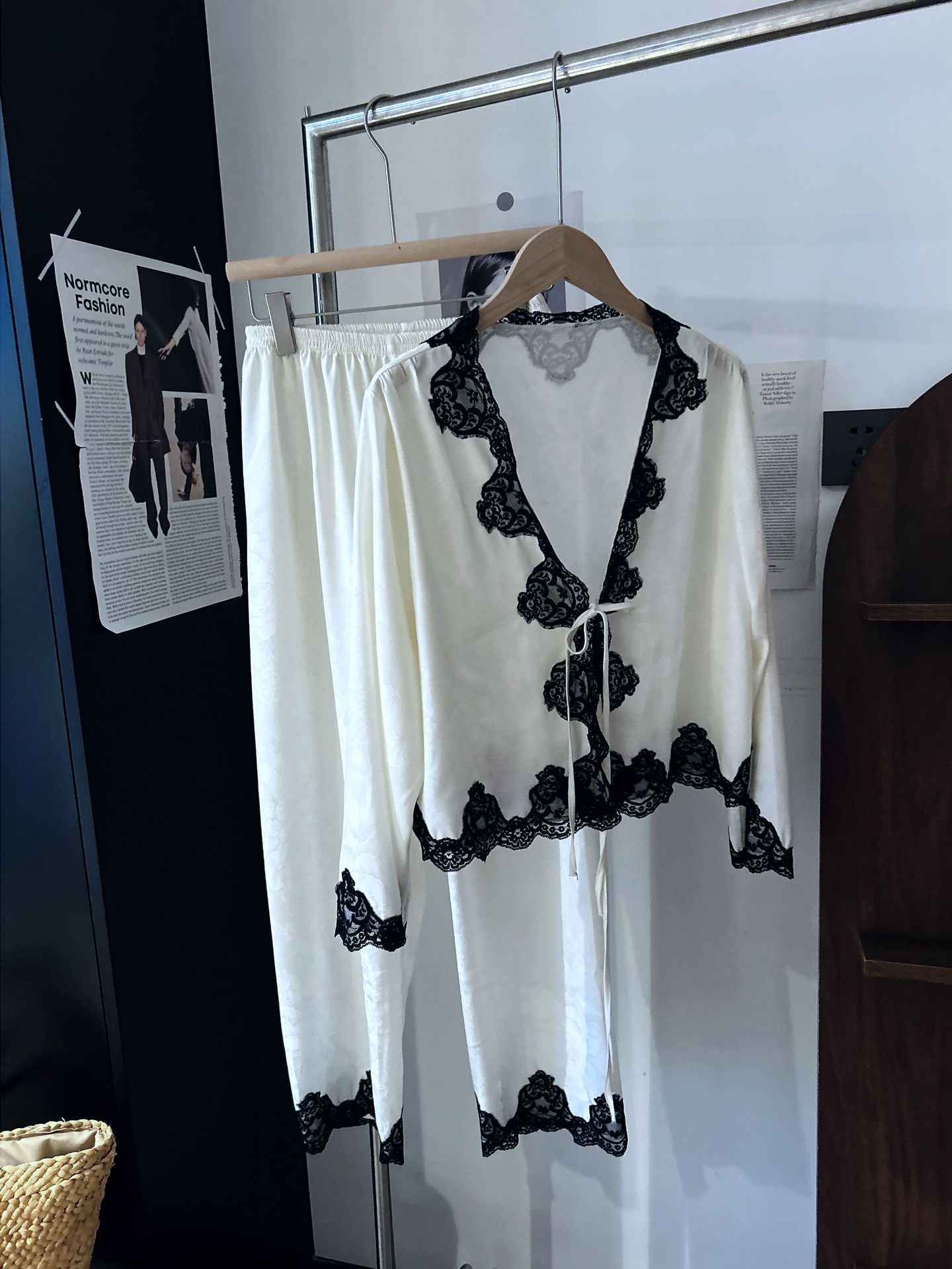 프랑스 스타일 섹시한 잠옷 여성 여름 2025 새로운 스타일 홈 의류 세트 얇은 작은 가슴 순수한 욕망 파자마 4 종 세트