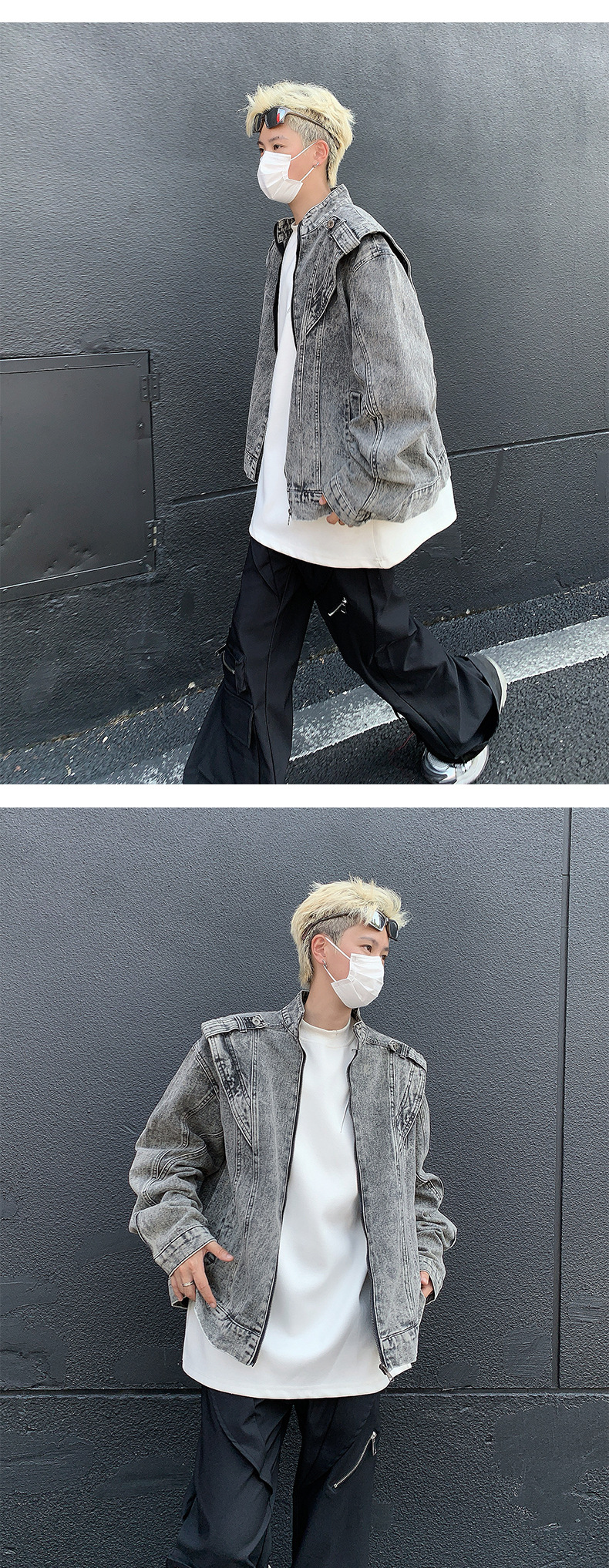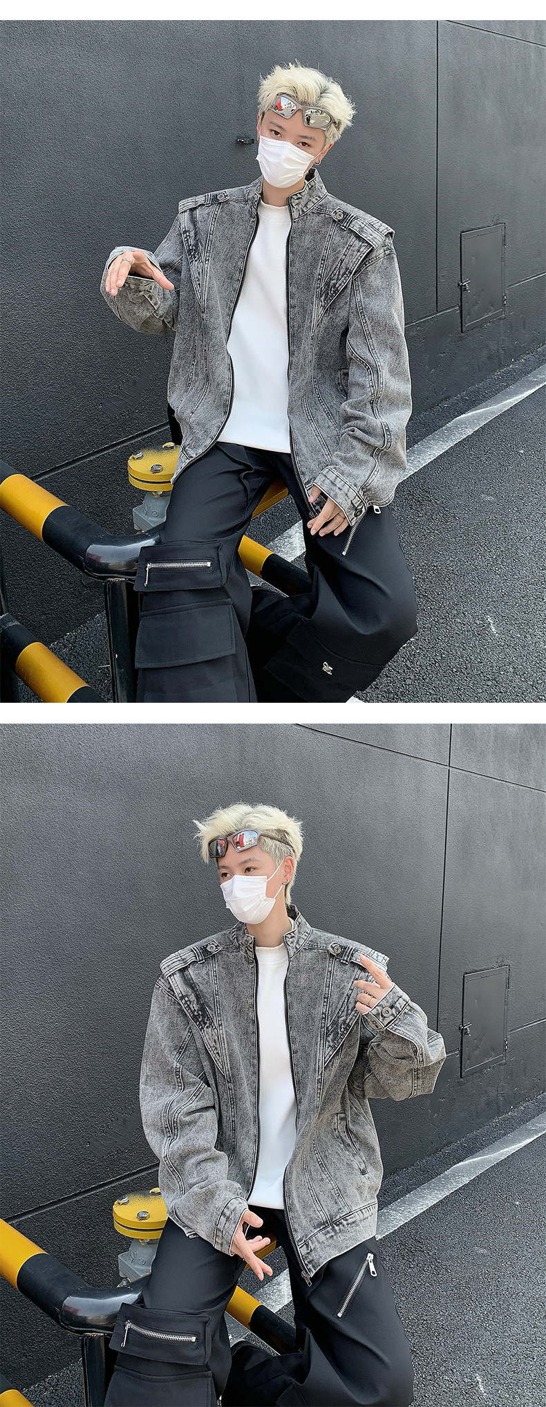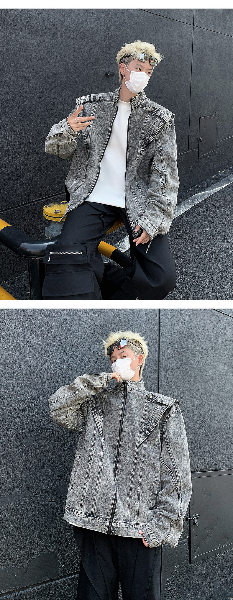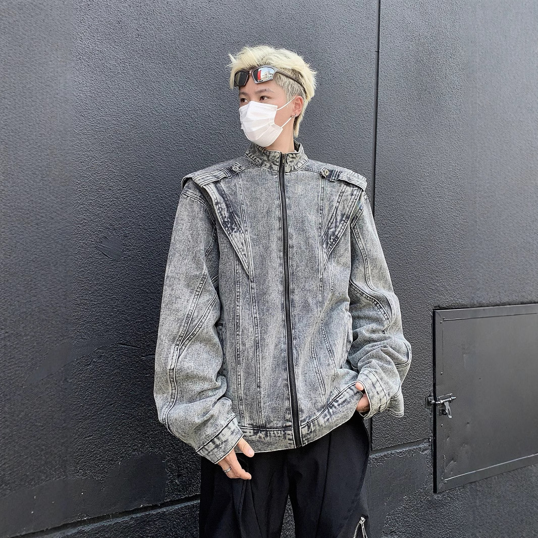 미국 복고풍 중공업 잘 생긴 스티칭 데님 재킷 트렌디 브랜드 유럽 및 미국 거리 청소용 바이커 재킷