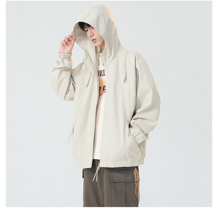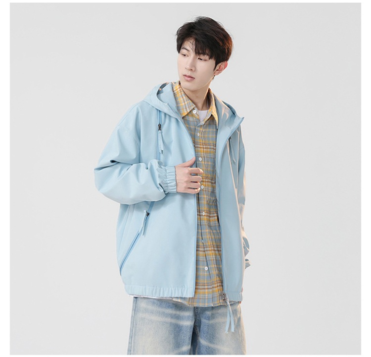 Jian Hengchun 가을 작업 옷 단색 재킷 남성 후드 캐주얼 야외 등산 의류 스포츠 재킷