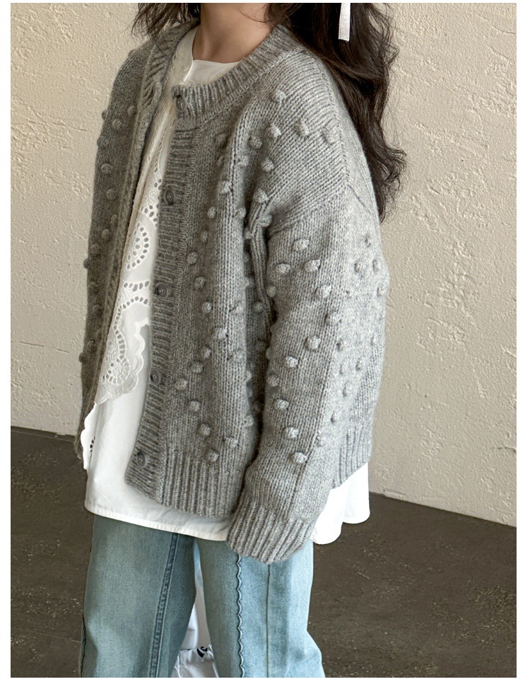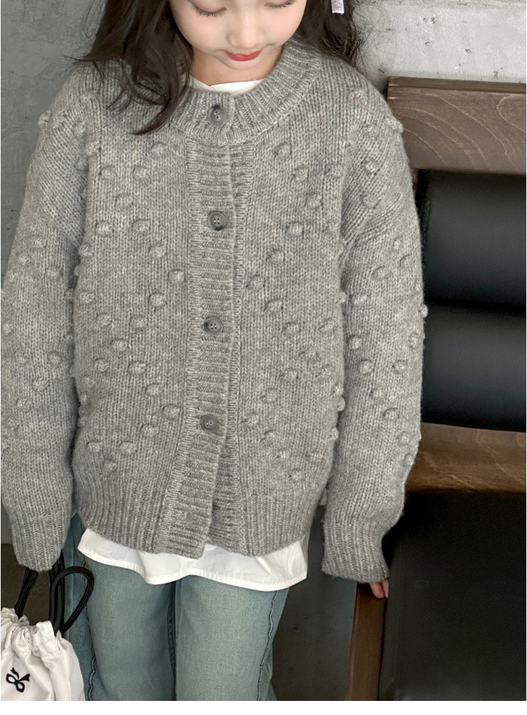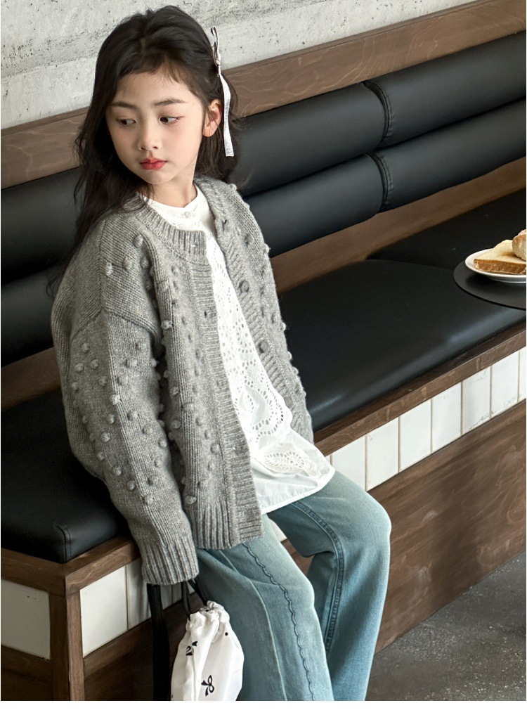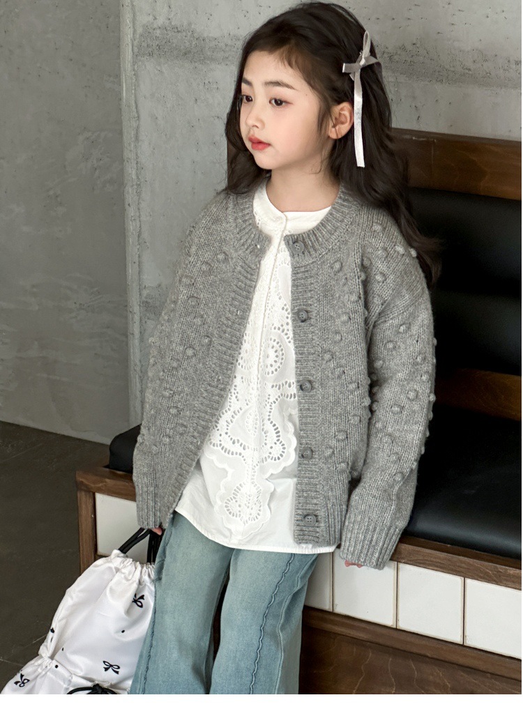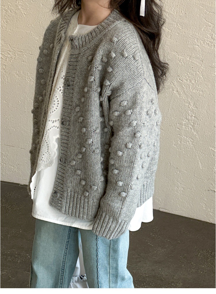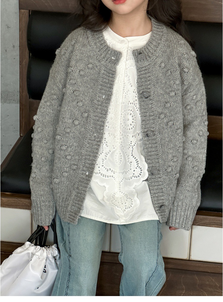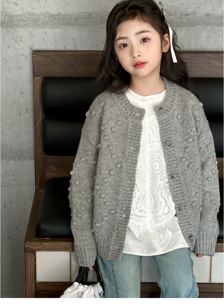 여자 스웨터 봄 2025 새로운 세련된 세련된 솔리드 컬러 니트 스웨터 코트 어린이 카디건 탑