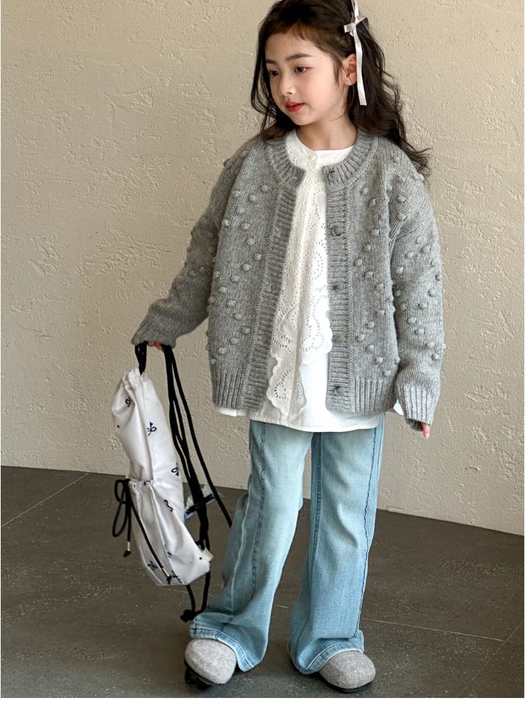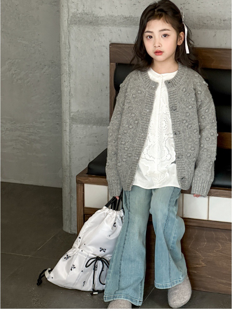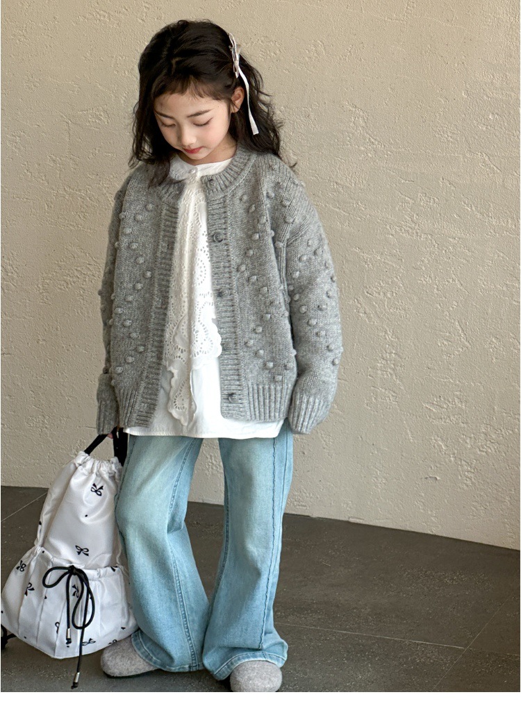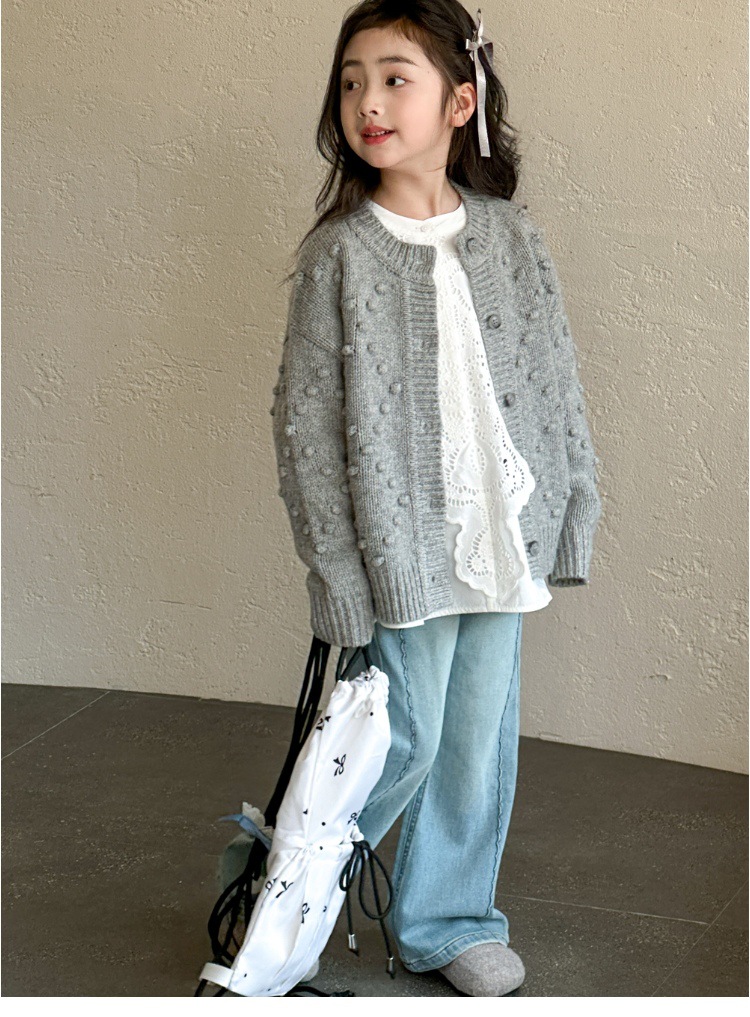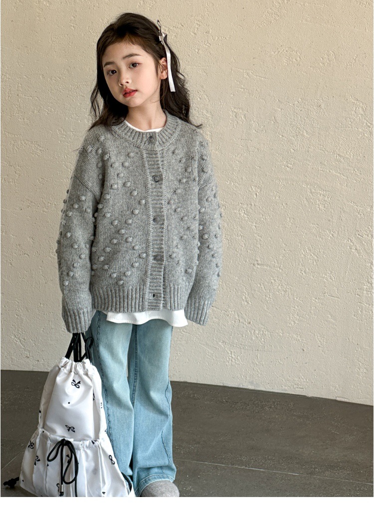 여자 스웨터 봄 2025 새로운 세련된 세련된 솔리드 컬러 니트 스웨터 코트 어린이 카디건 탑스토어 가기