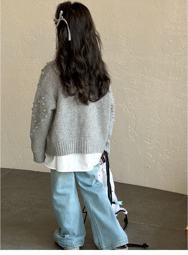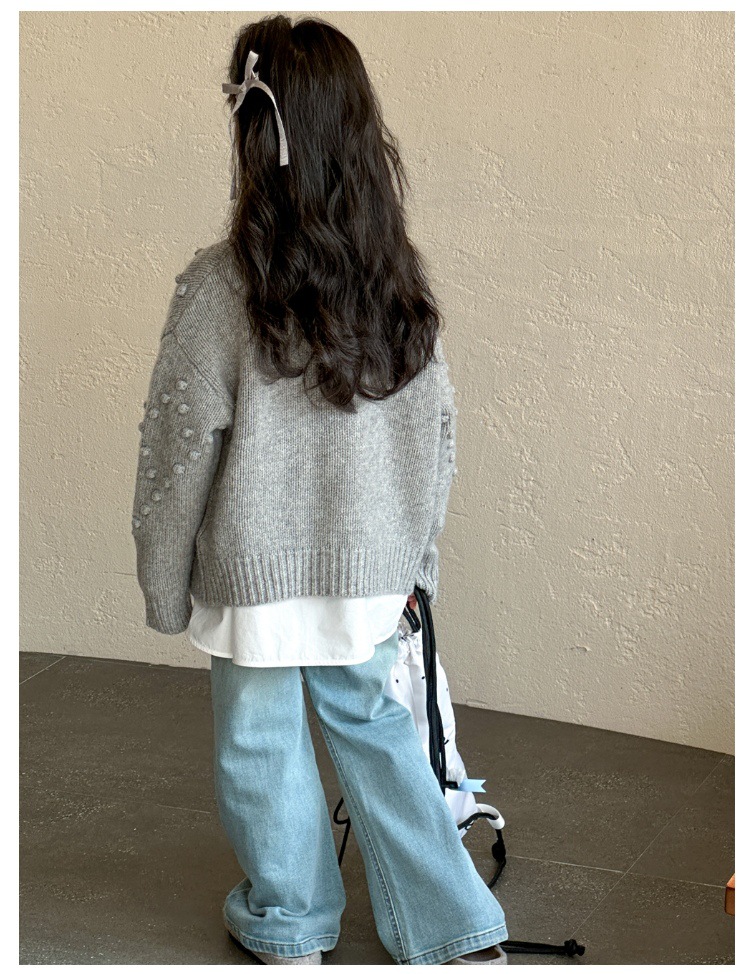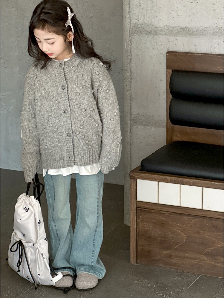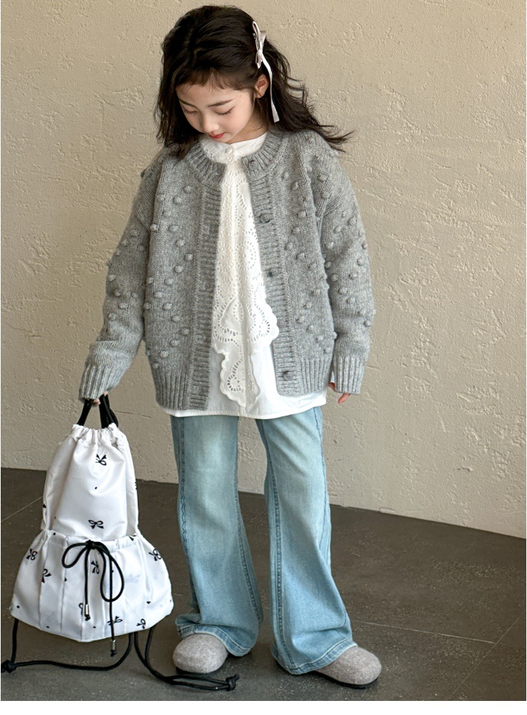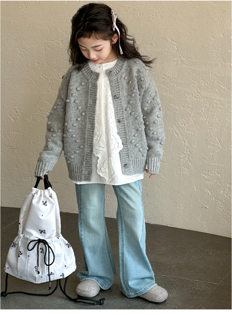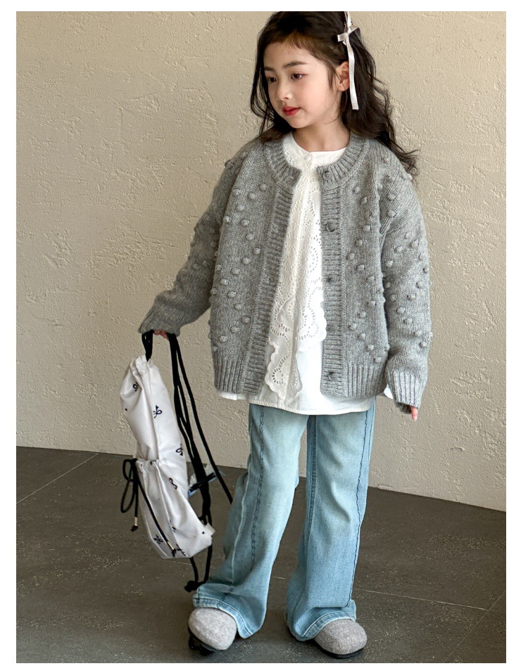 여자 스웨터 봄 2025 새로운 세련된 세련된 솔리드 컬러 니트 스웨터 코트 어린이 카디건 탑스토어 가기