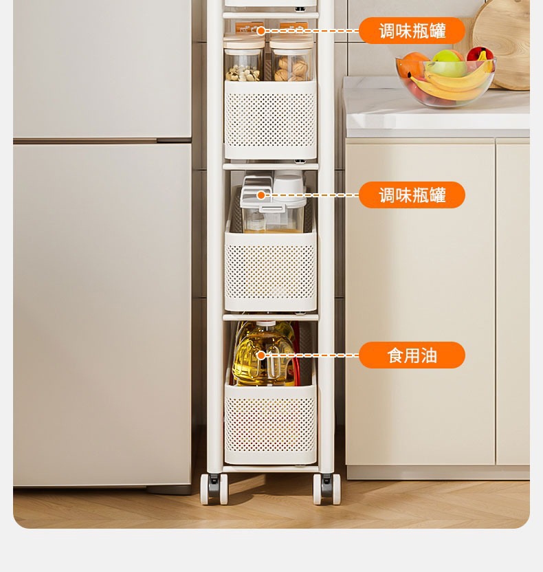 주방 갭 스토리지 랙 냉장고 사이드 드로백 캐비닛 화장실 트롤리 매우 좁은 갭 바구니 갭 스토리지 캐비닛