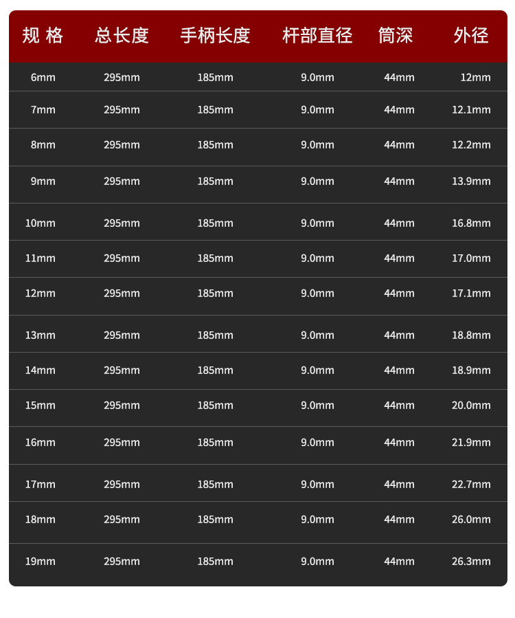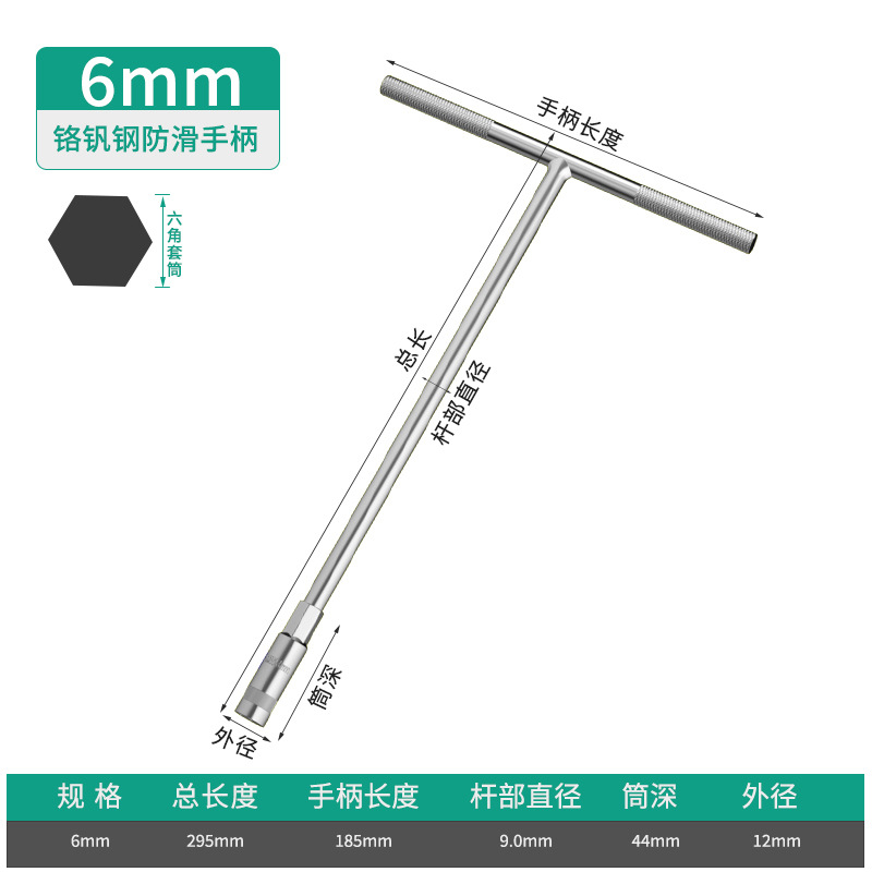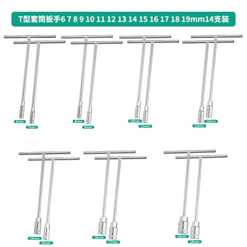 • T형 소켓 렌치 6개 세트(6+7+8+10+12+14)