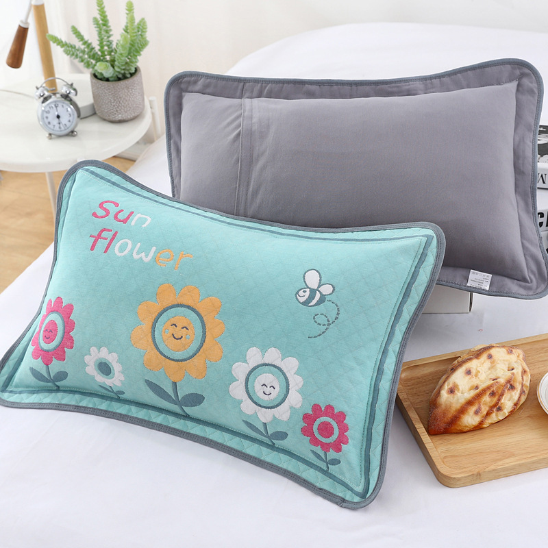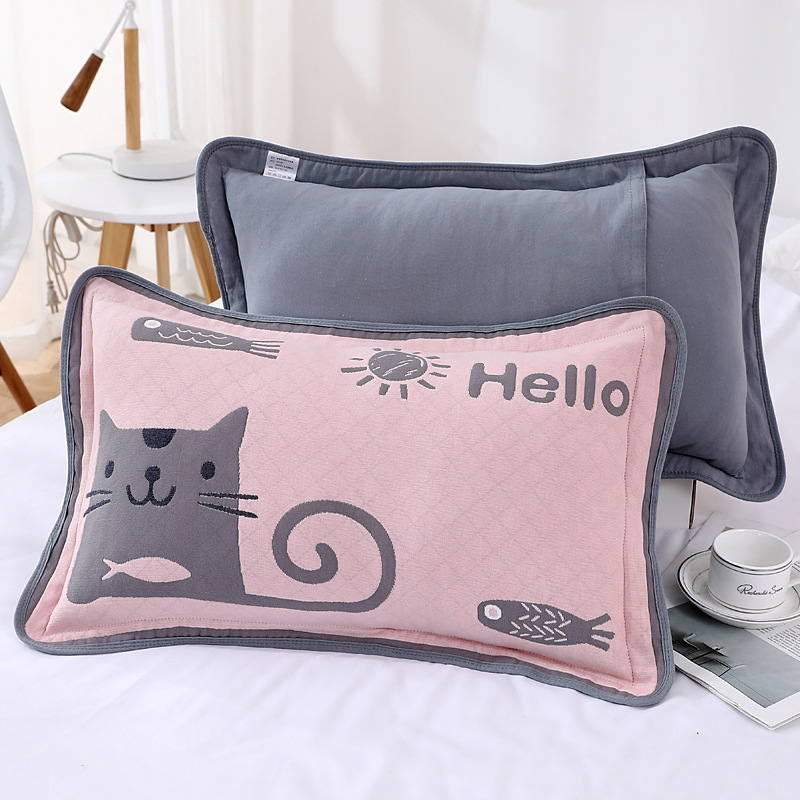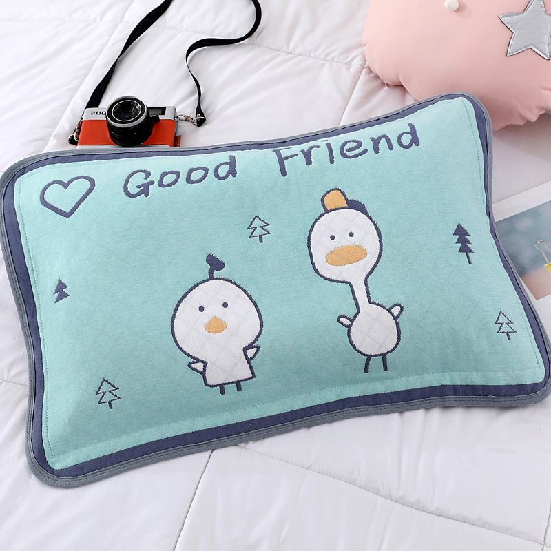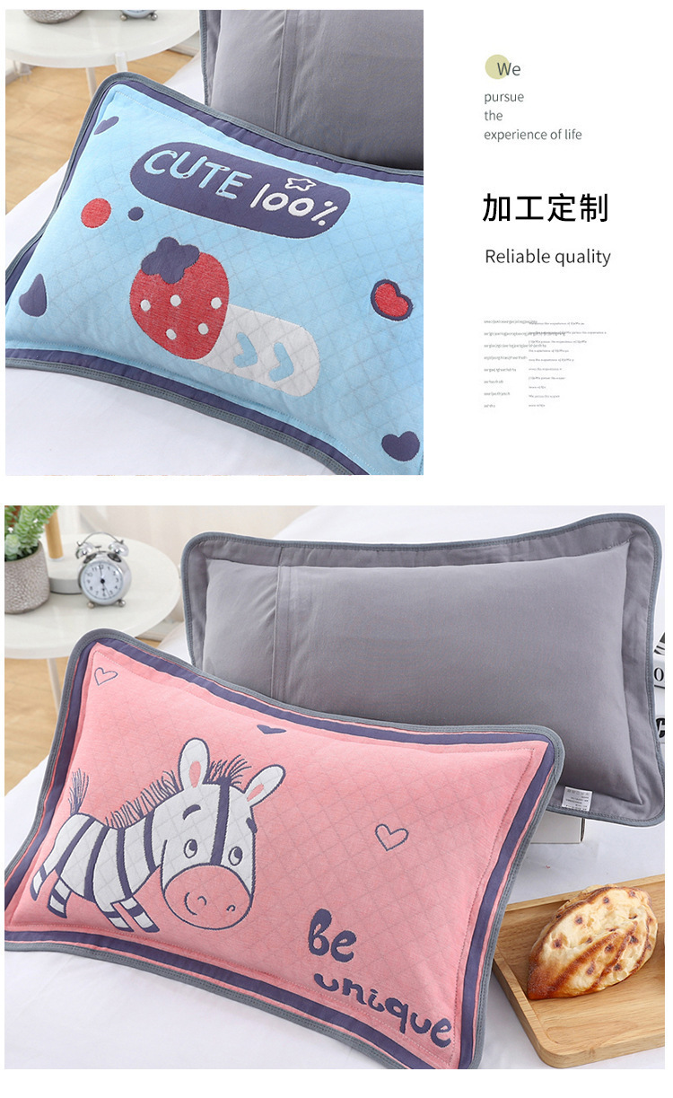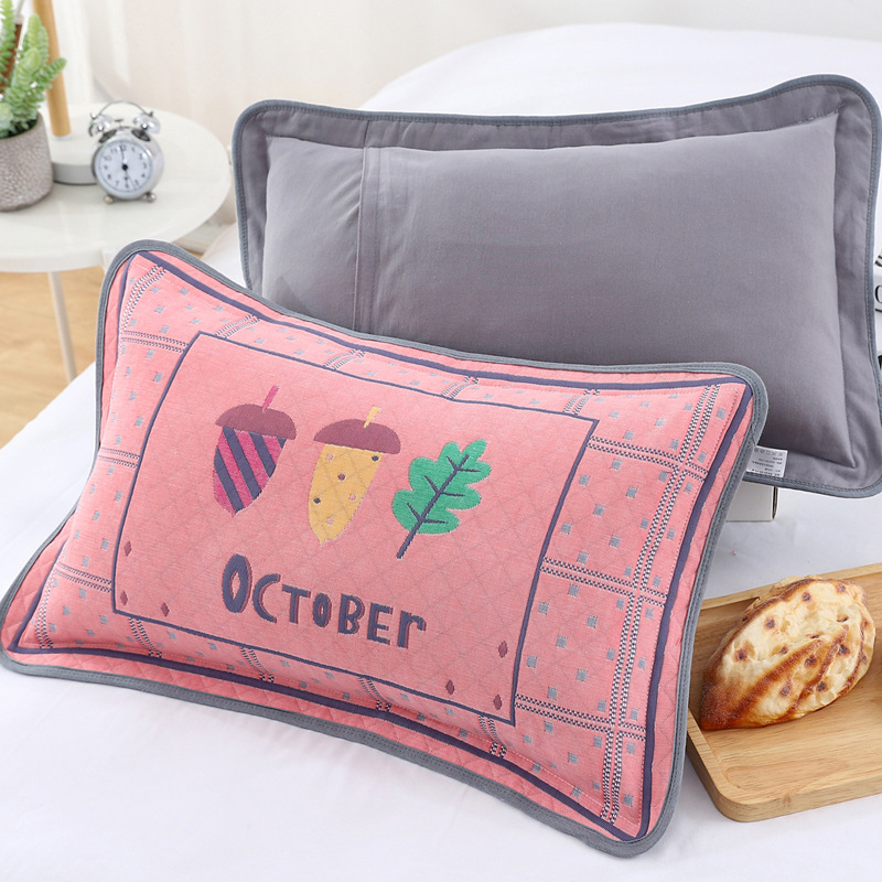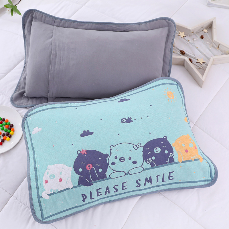 어린이 베개 케이스 중형 35*55 면 파인 거즈 6 층 베개 프리 아기 통기성 땀 위킹 엣지 베개 케이스
